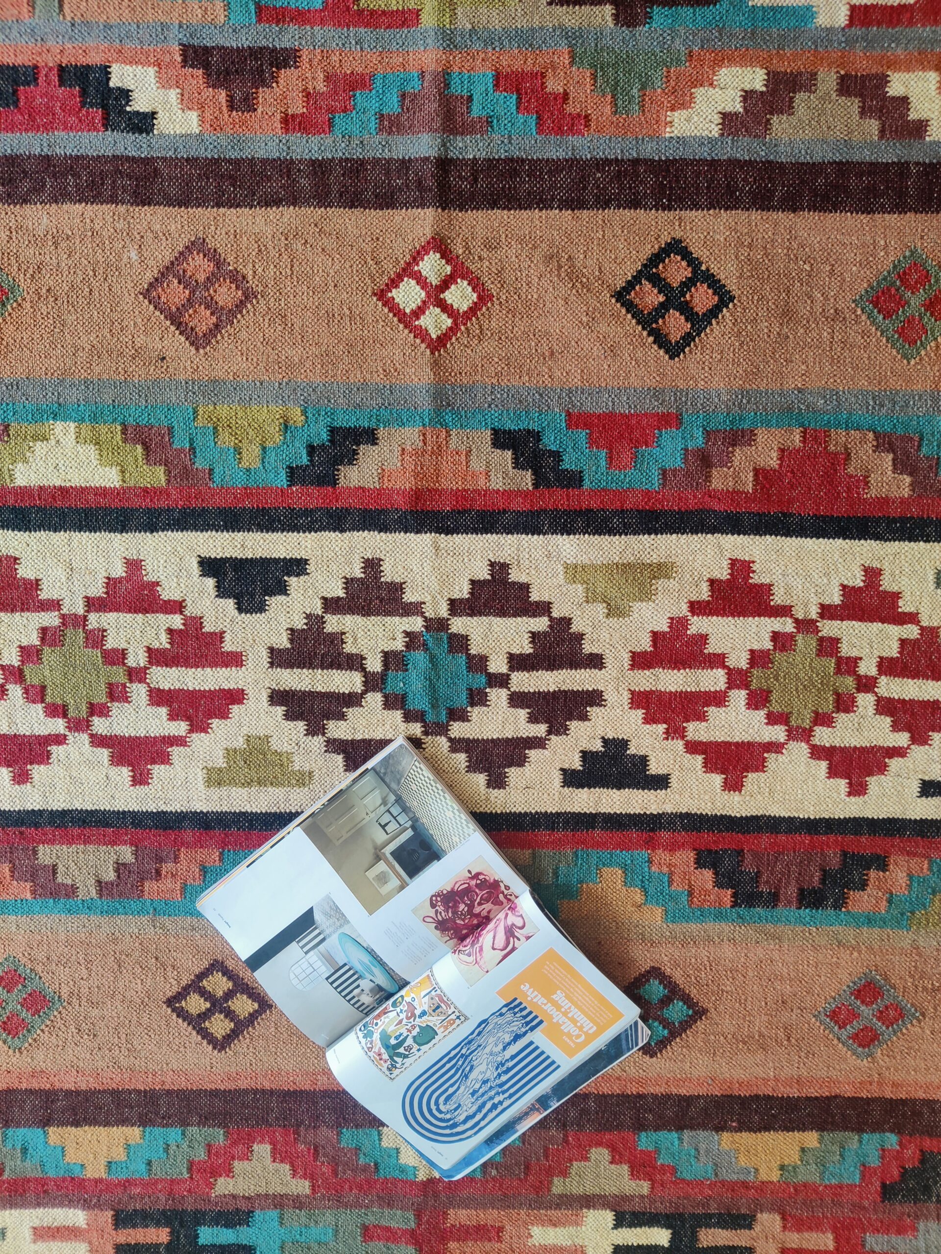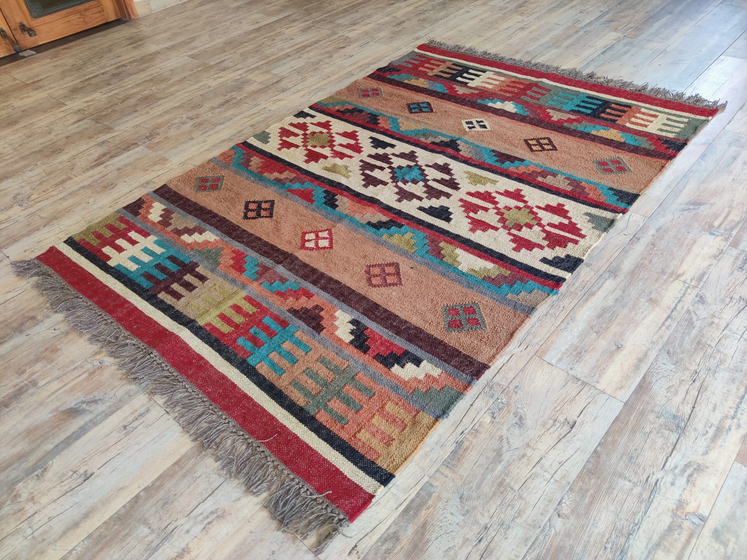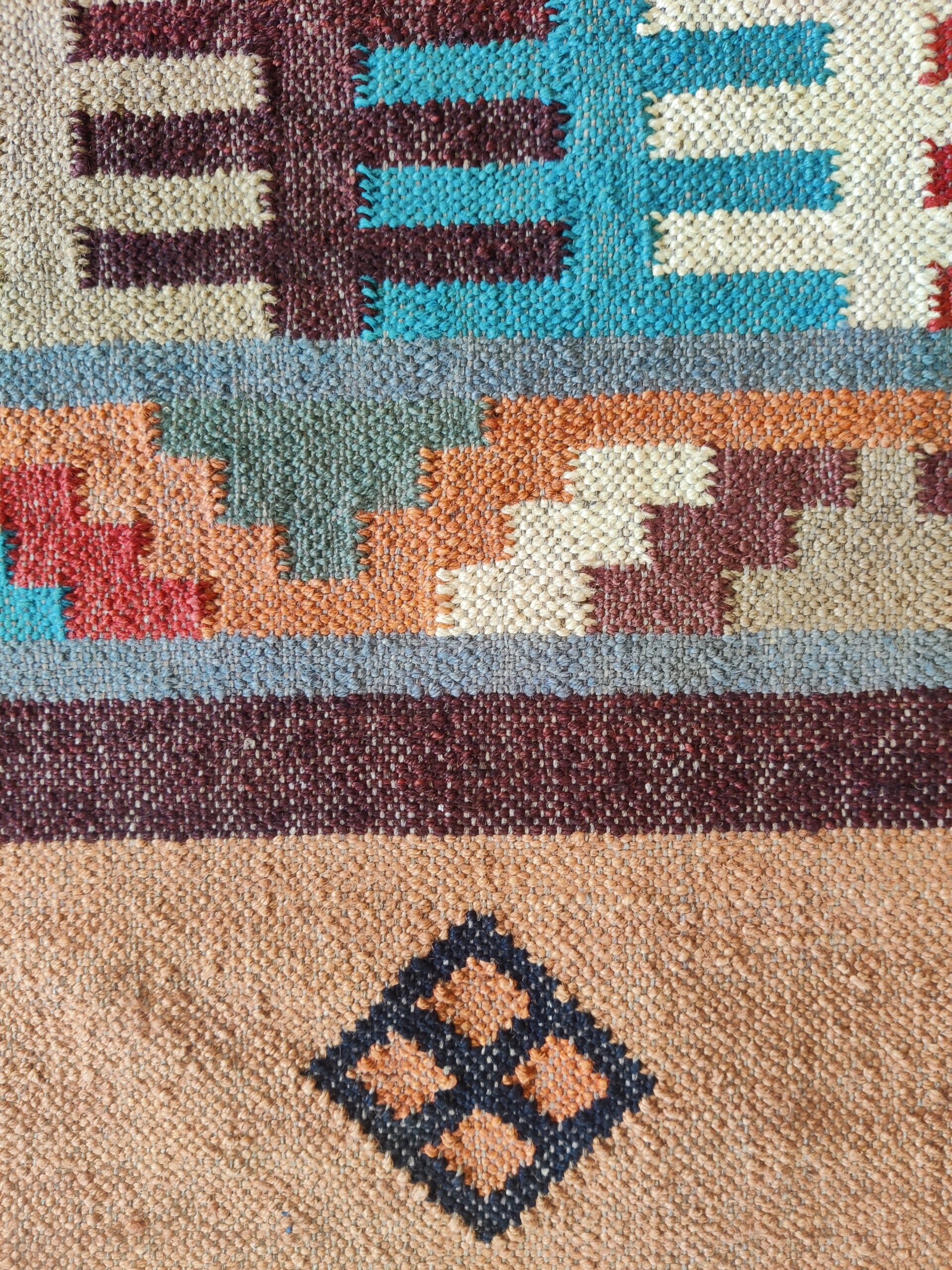 Crafted by experienced artisans, this natural handwoven jute rug is made with wool and jute. This rug is woven by hand on a traditional wooden loom. Made from hand-dyed, pure, sustainable jute and natural wool. This rug is reversible, with the same design on both sides. Wool: 30% Jute: 70%