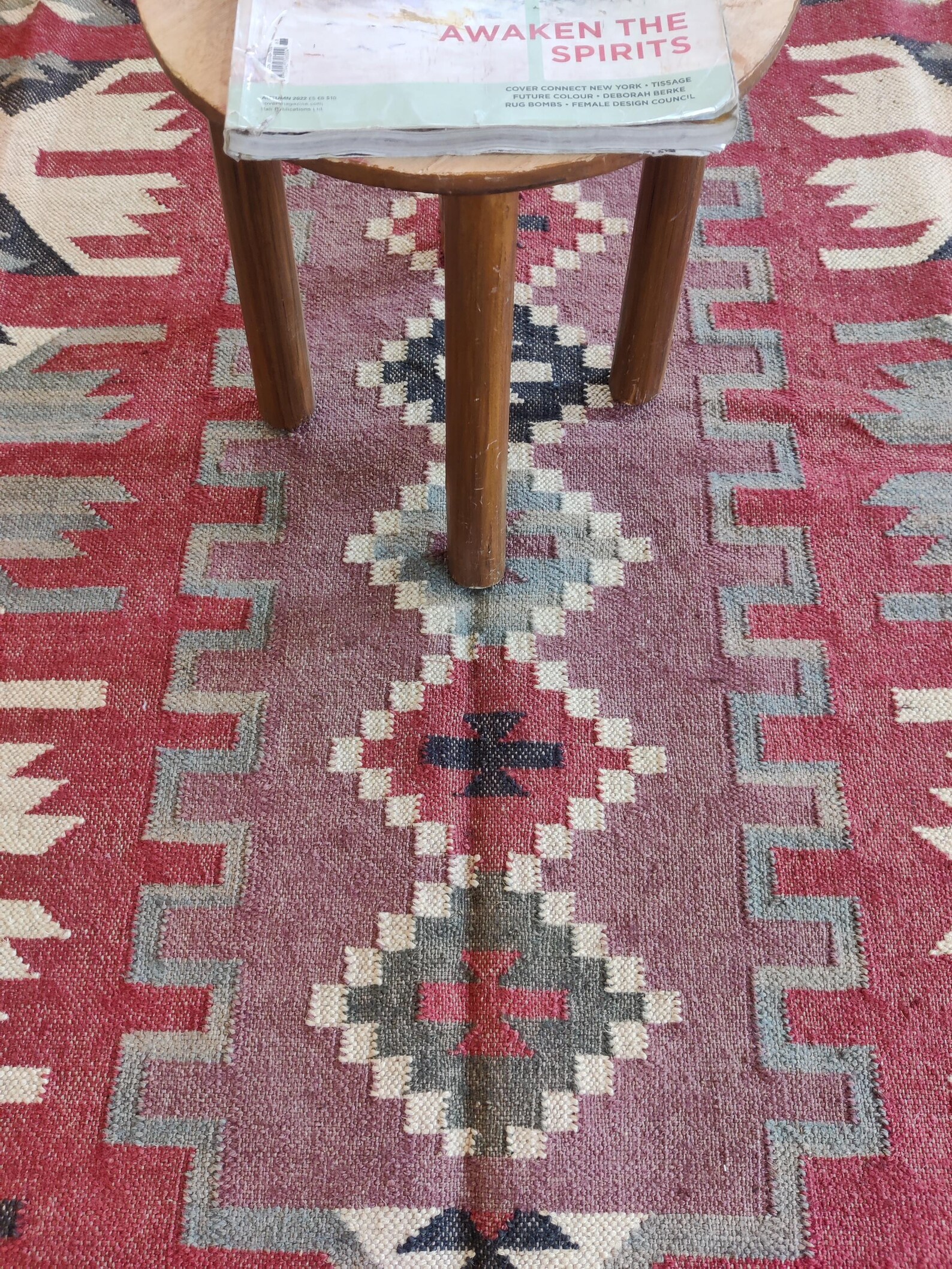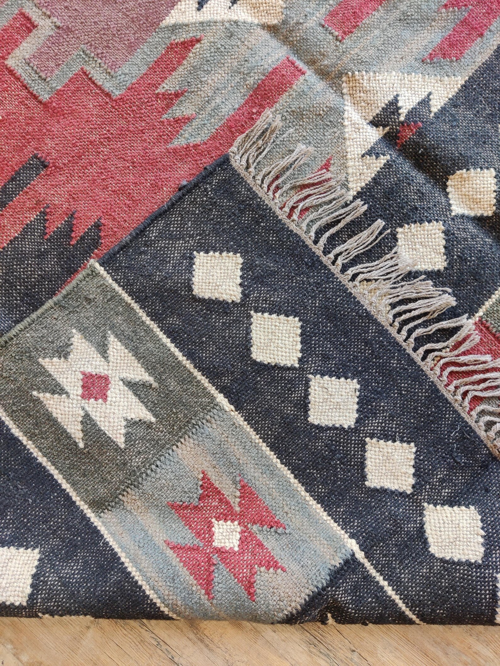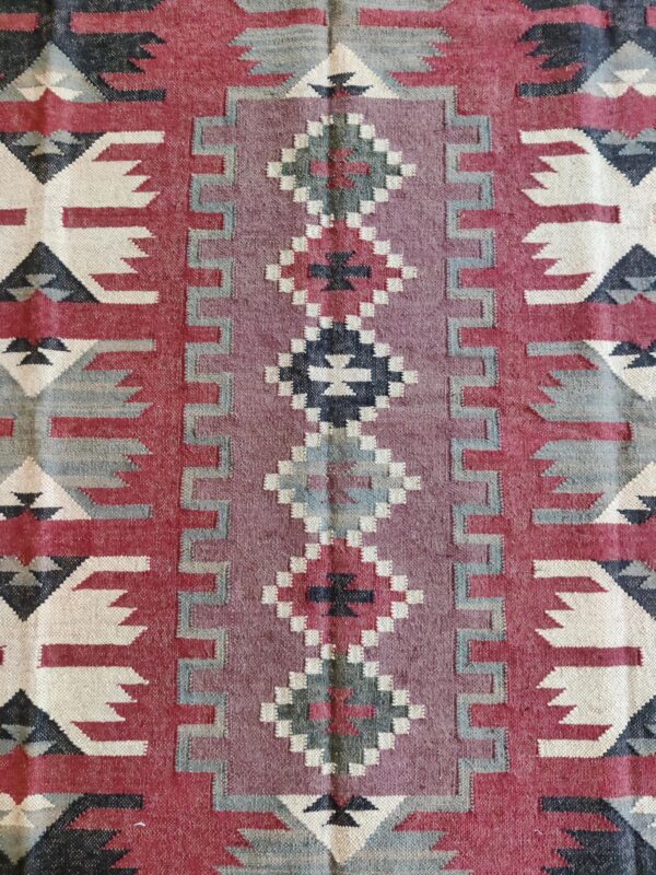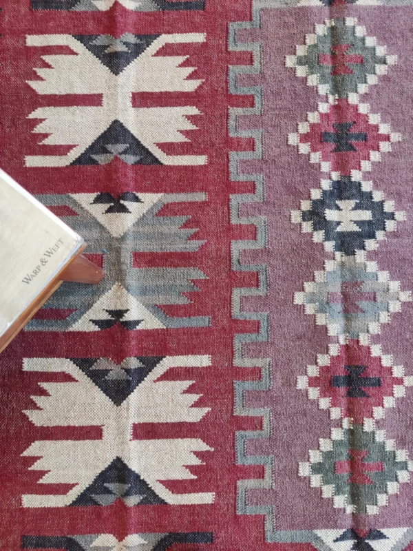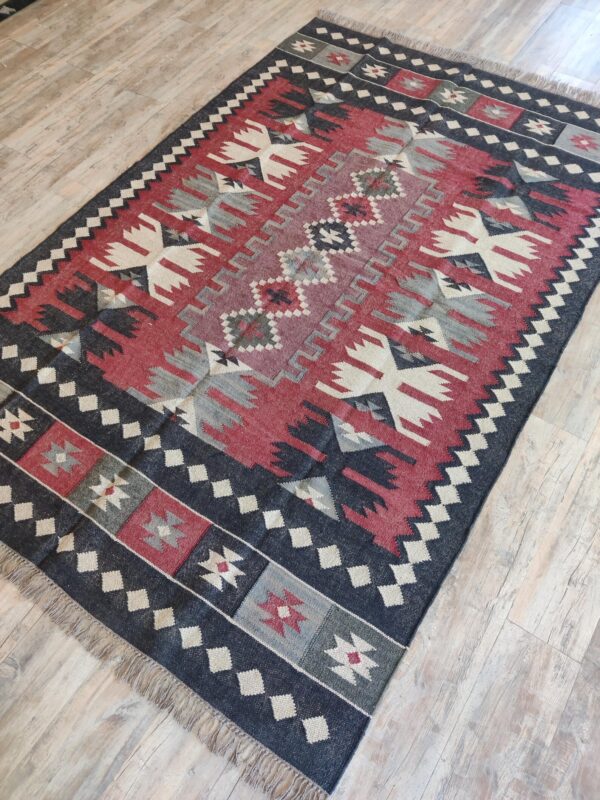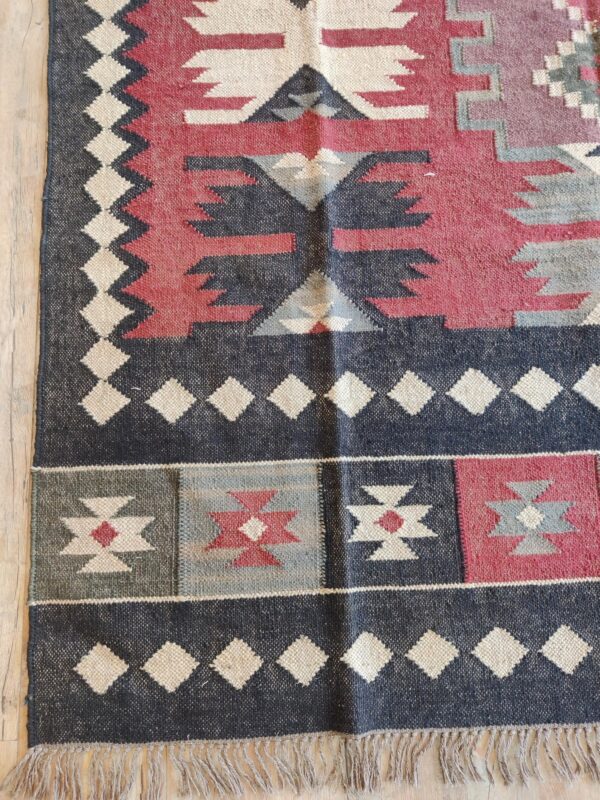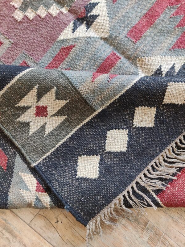 Handwoven Wool Jute Kilim Rug: Boho Geometric Tribal Area Rug