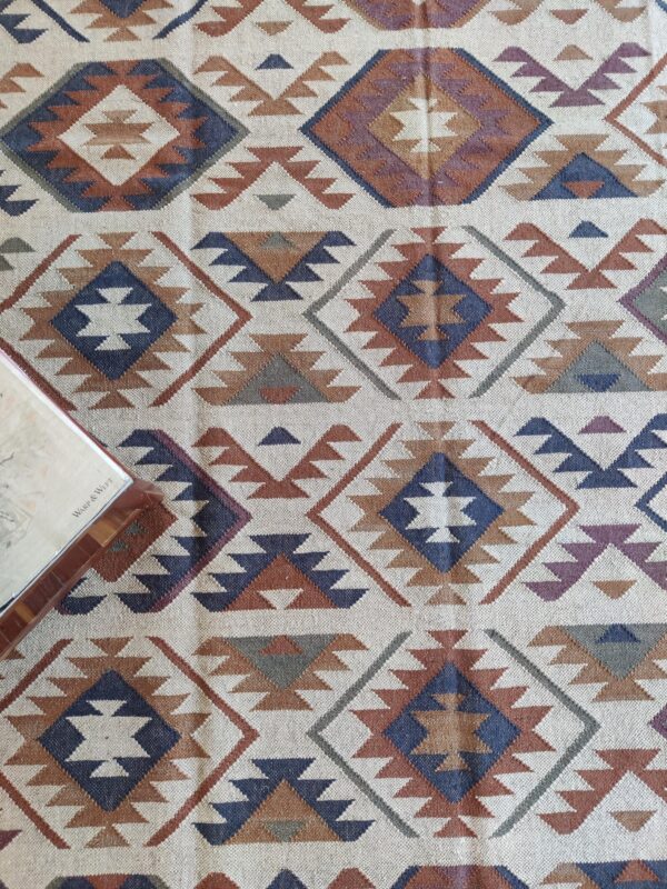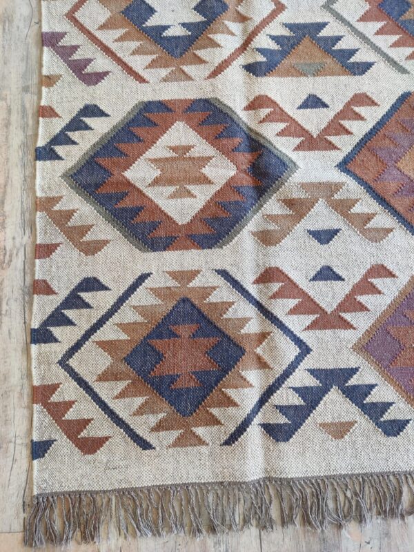 Handwoven Wool Jute Kilim Rug: Geometric Tribal Area Rug