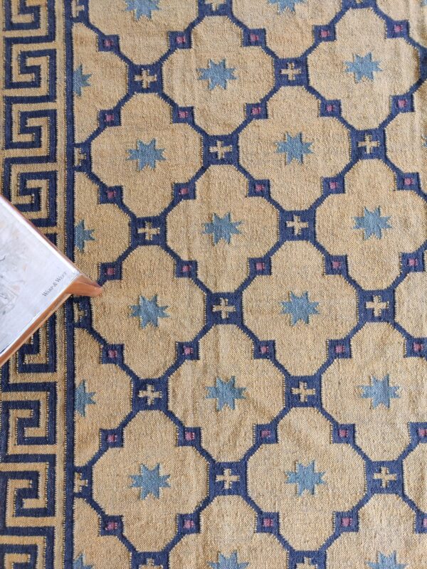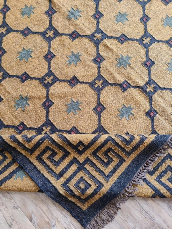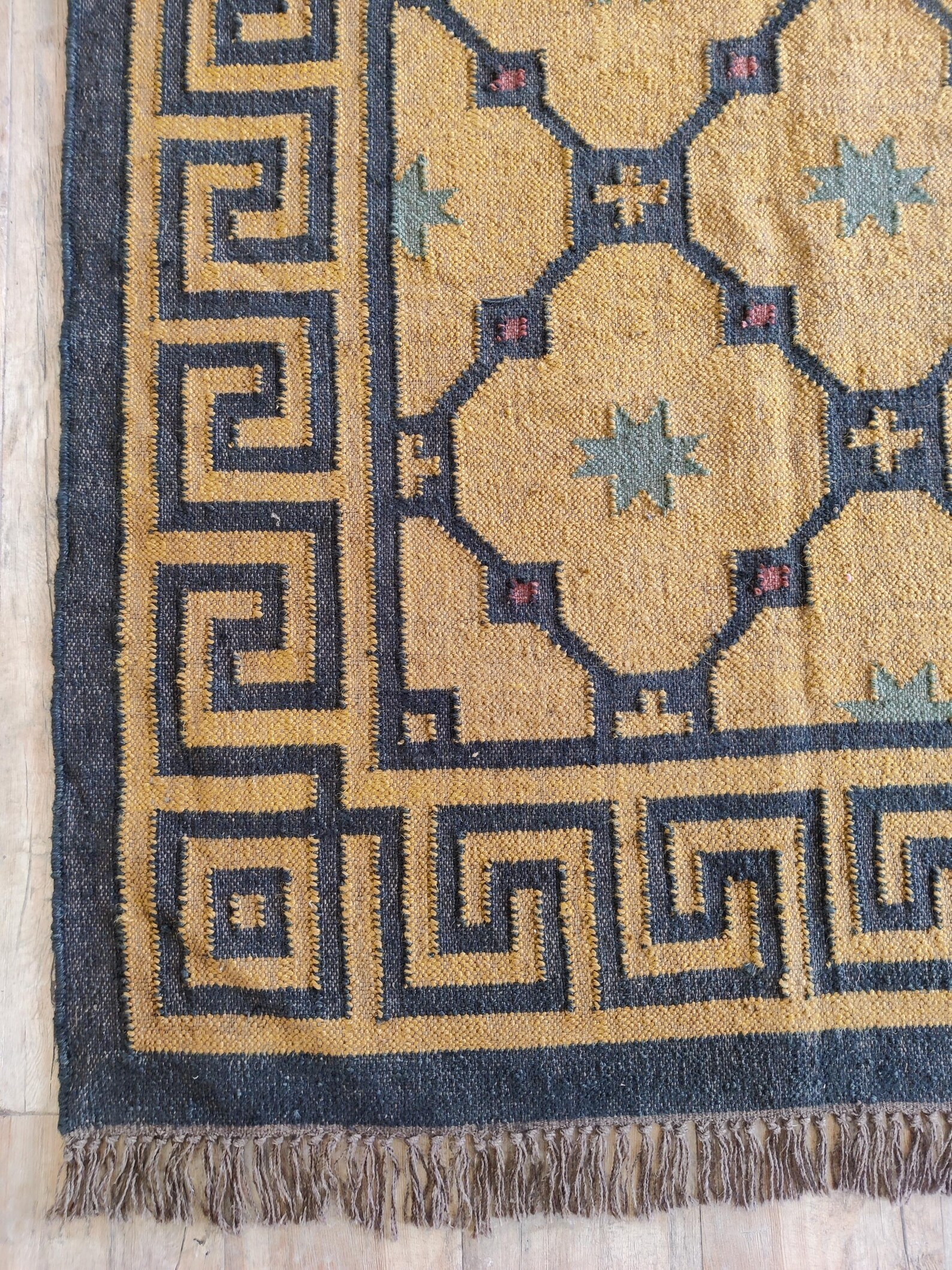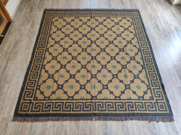 Handwoven Wool Jute Kilim Rug: Greek Key, Bohemian Area Carpe