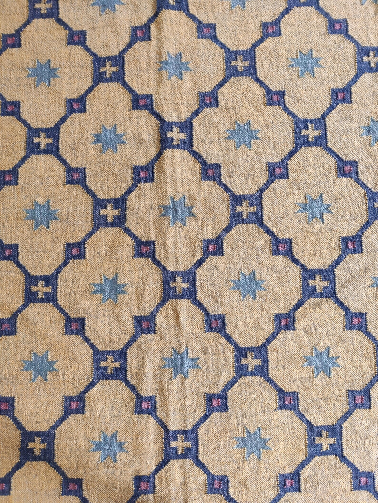 The Geometric design of a rust-color weaves its way seamlessly into any space from coastal dining to urban sleeping. Jute kilim dhurrie construction.