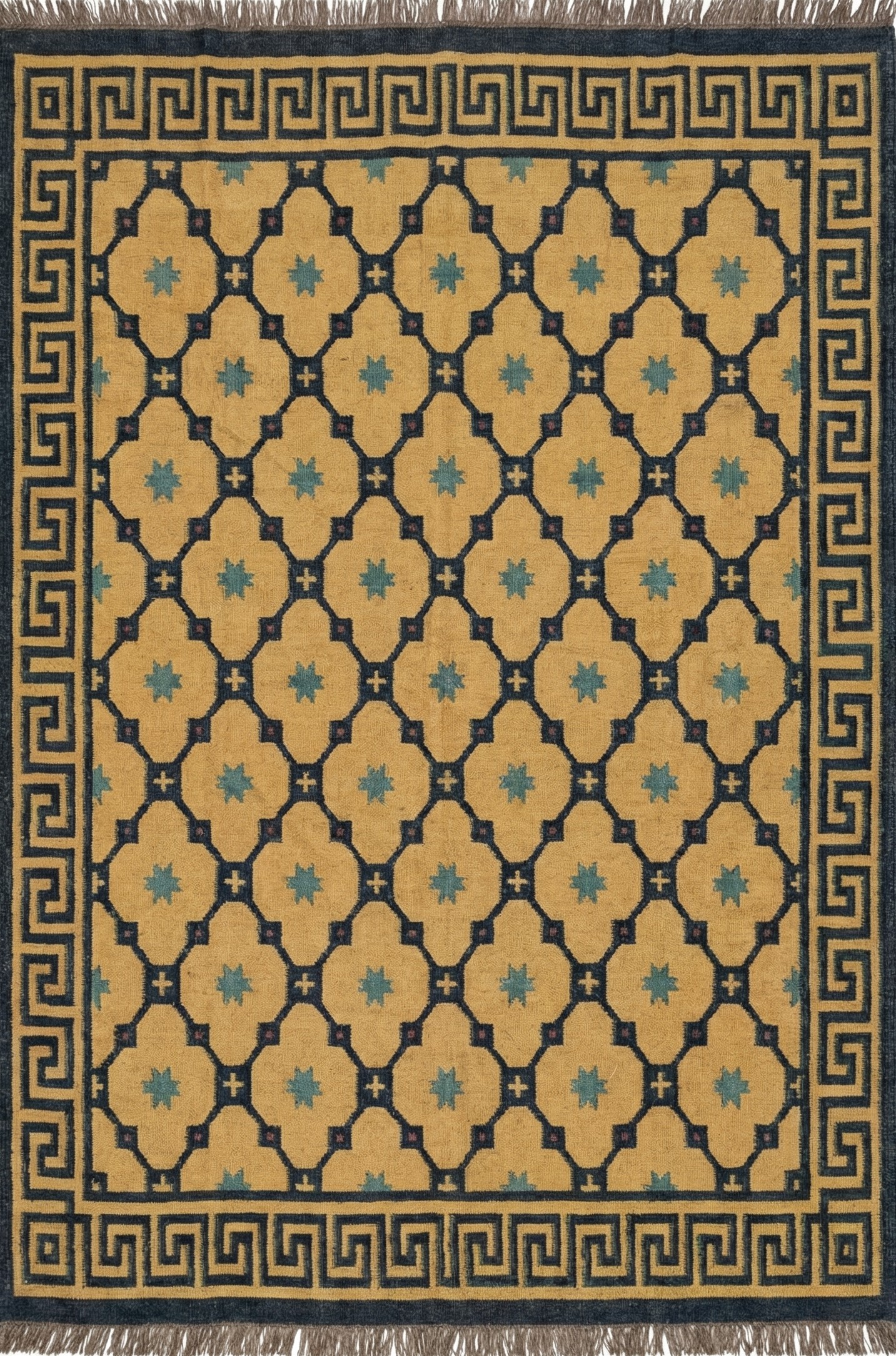 Handwoven Wool Jute Kilim Rug, Greek Key Bohemian Area Carpet