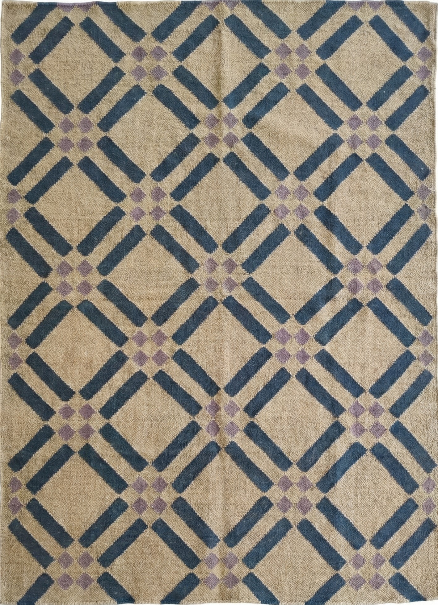 Handwoven Wool Jute Rug: Blue Checkered Geometric Kilim