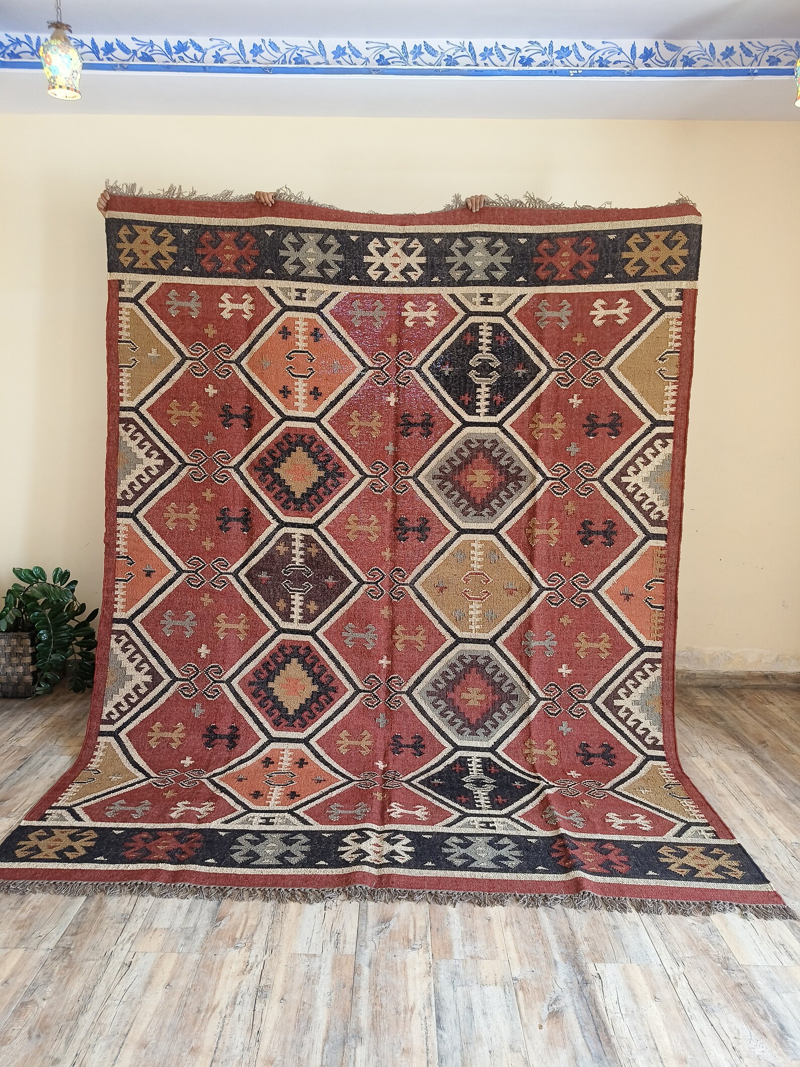 Handwoven Wool Jute Rug, Jute Kilim Rug, Turkish Flatweave Rug, Boho Decor Rug, Jute Rug, Custom Rug