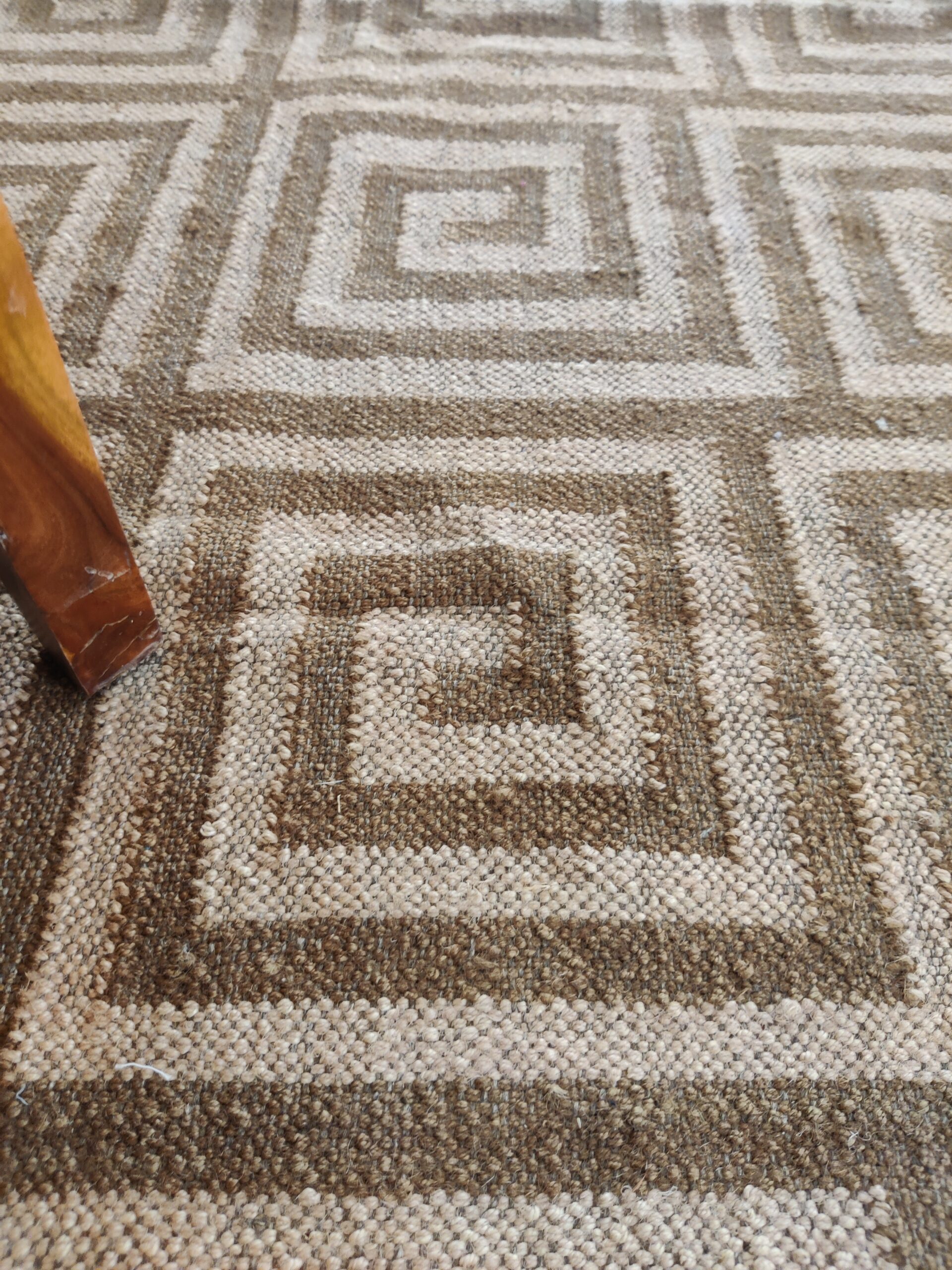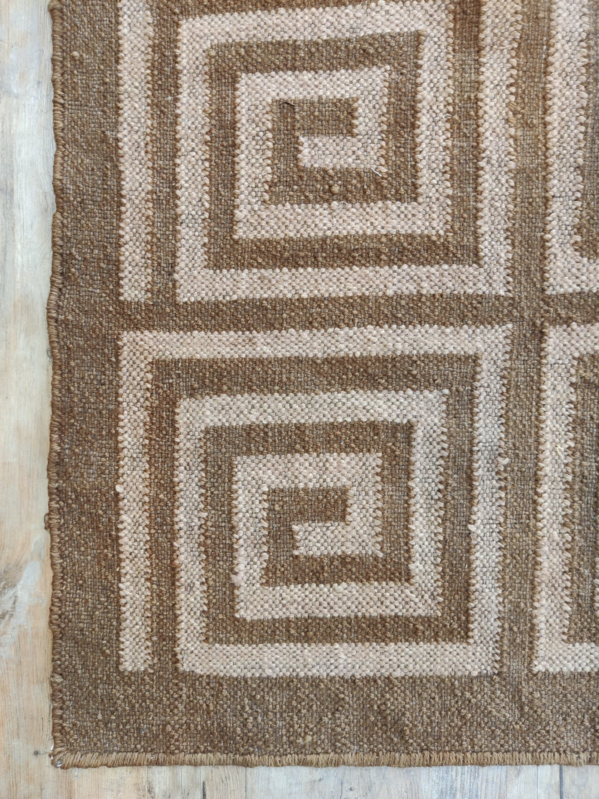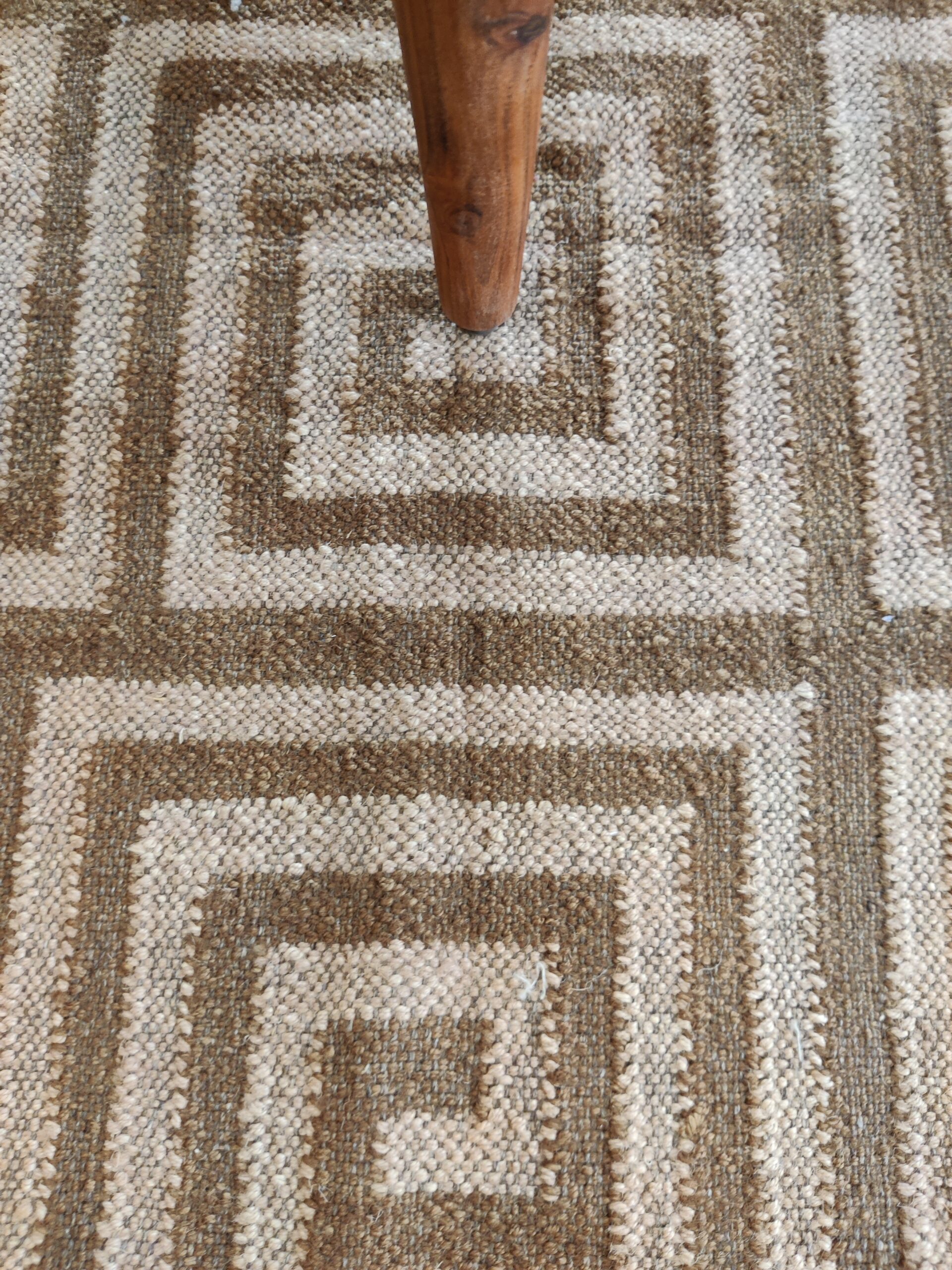 Crafted by experienced artisans, this natural handwoven jute rug is made with wool and jute. This rug is woven by hand on a traditional wooden loom. Made from hand-dyed, pure, sustainable jute and natural wool. This rug is reversible, with the same design on both sides. Wool: 30% Jute: 70%