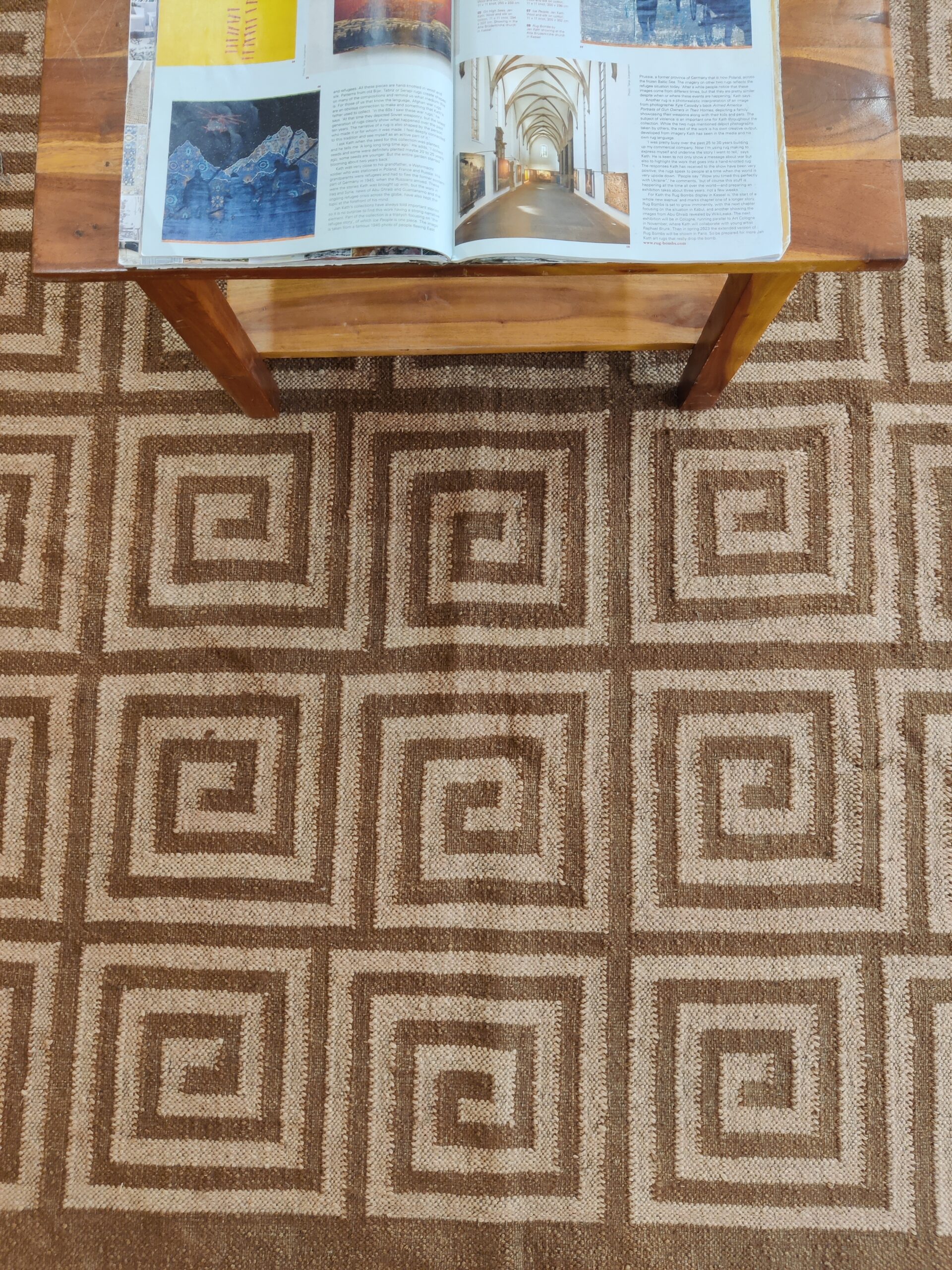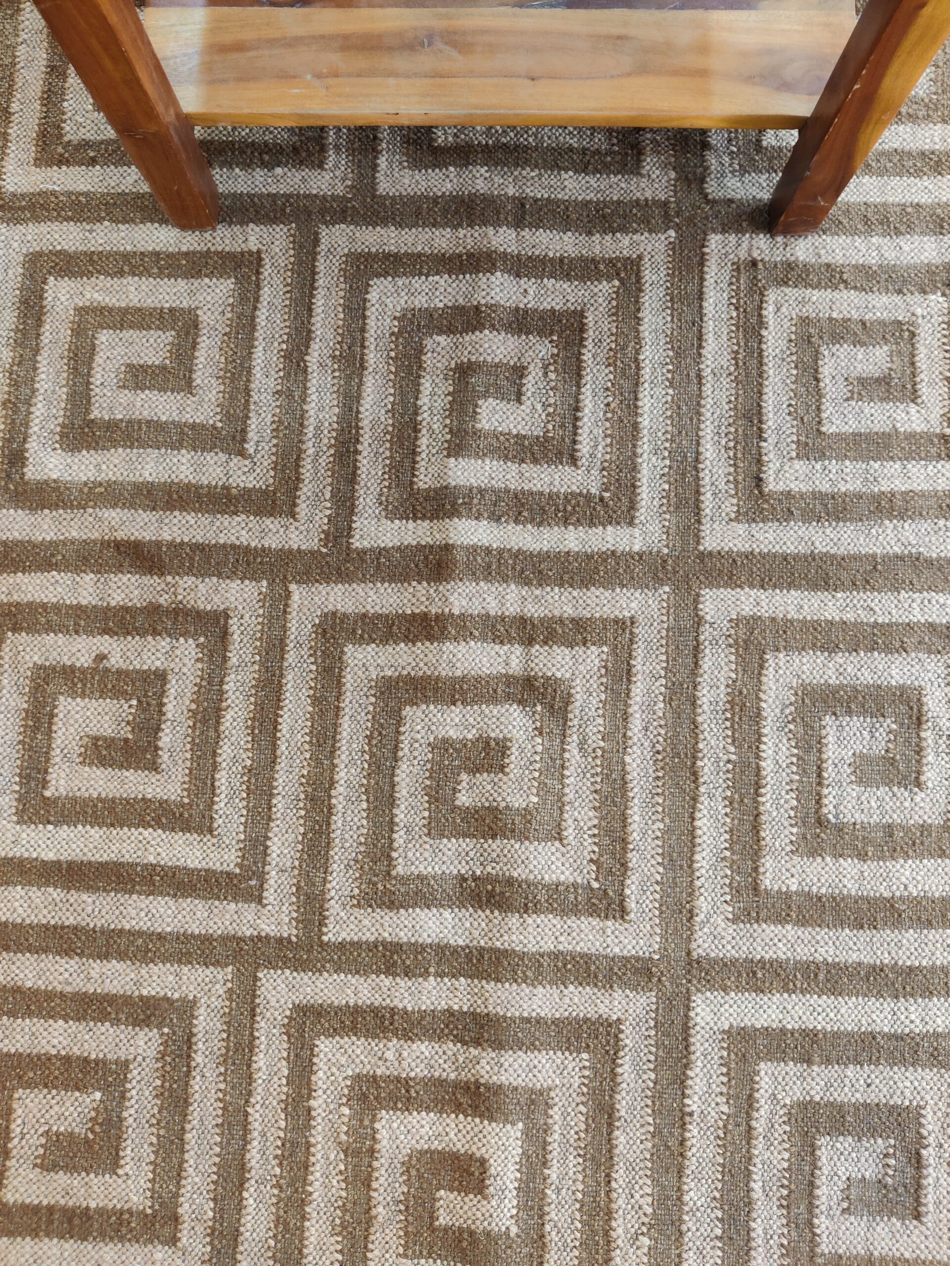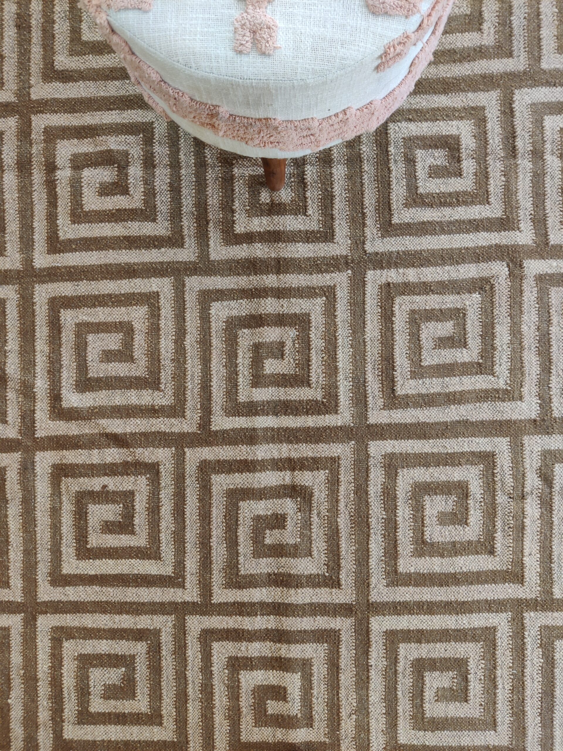Crafted by experienced artisans, this natural handwoven jute rug is made with wool and jute. This rug is woven by hand on a traditional wooden loom. Made from hand-dyed, pure, sustainable jute and natural wool. This rug is reversible, with the same design on both sides. Wool: 30% Jute: 70%