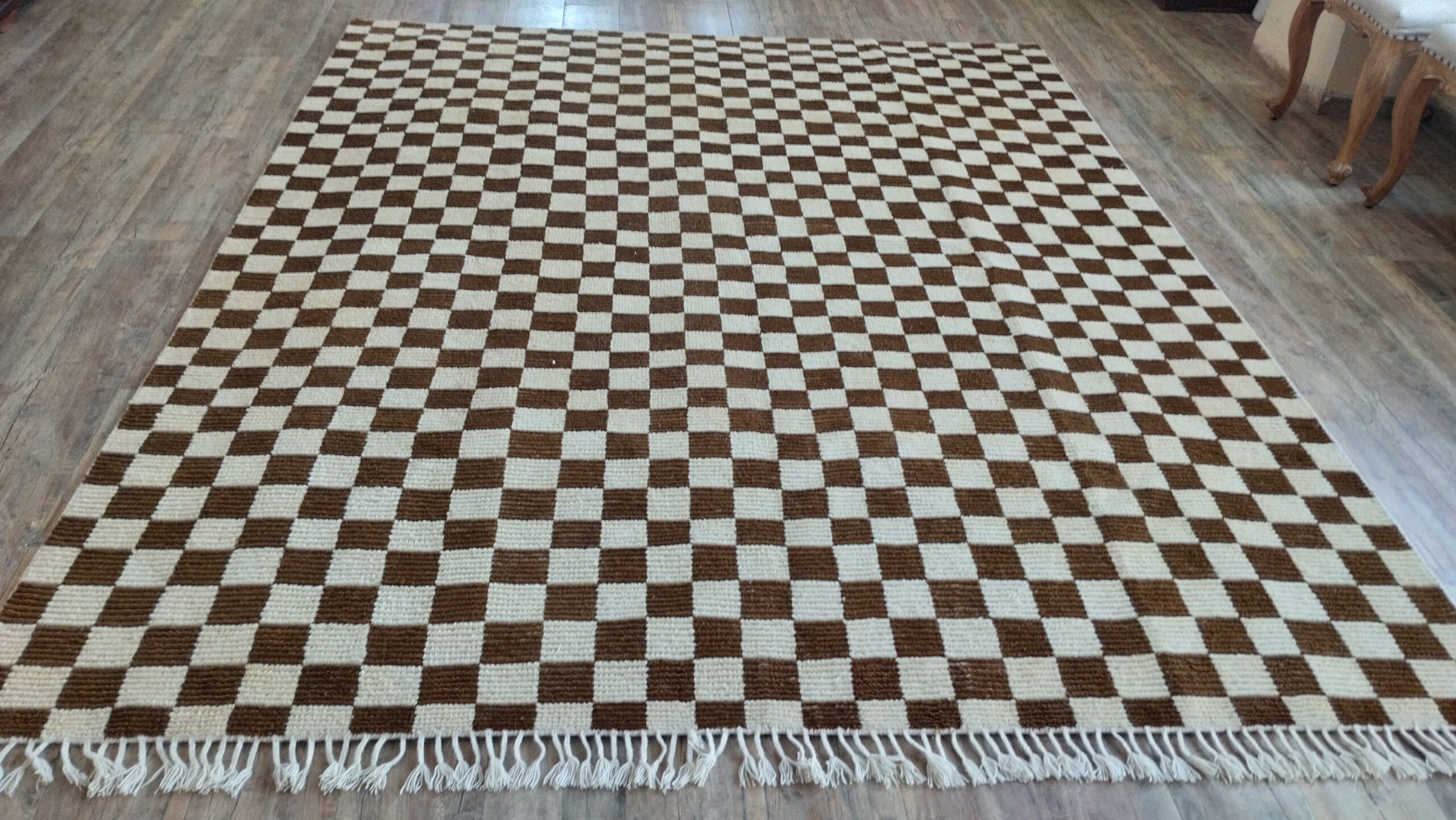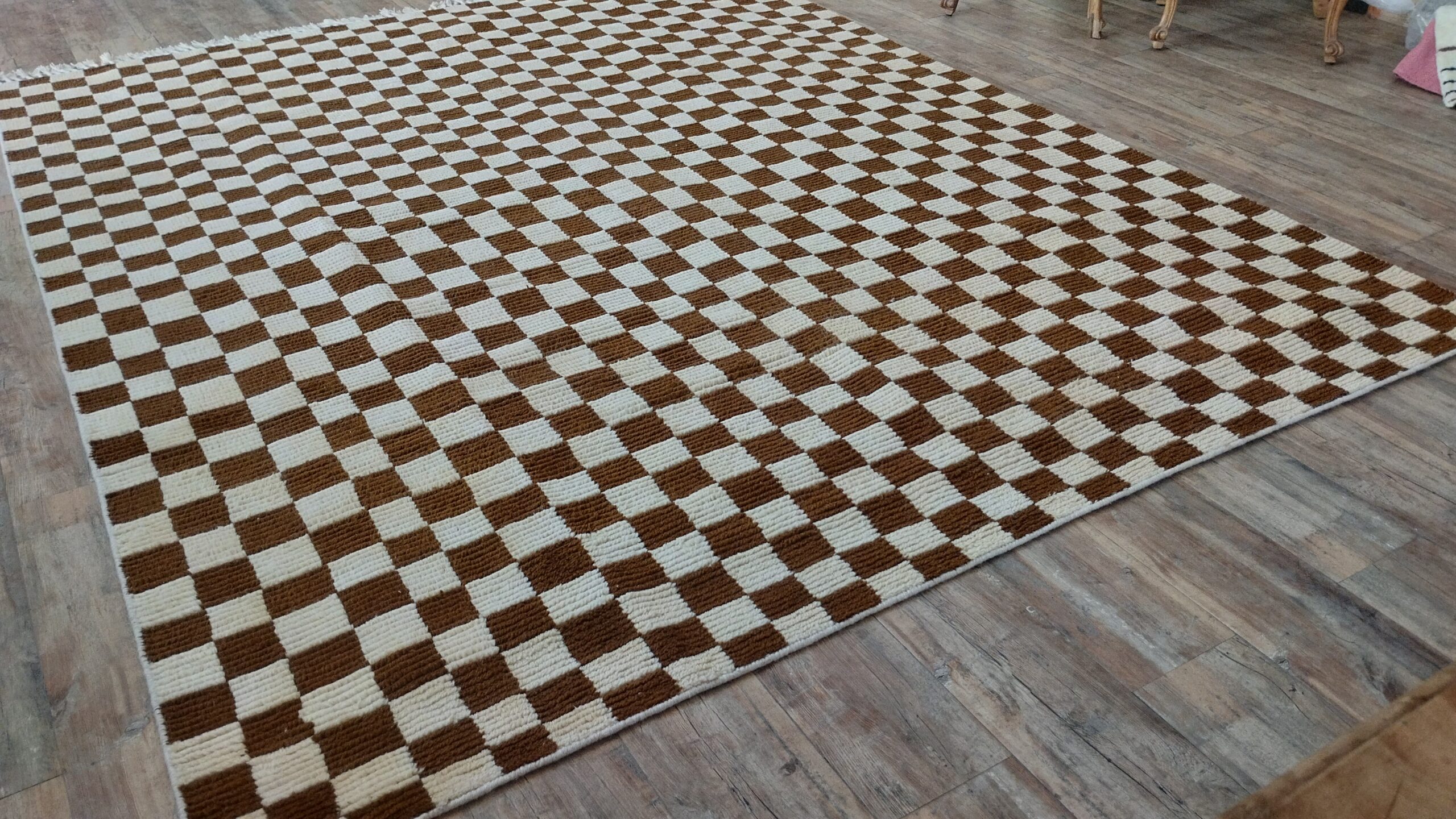 Handwoven Wool Moroccan Home And Living Room Checkered Rug