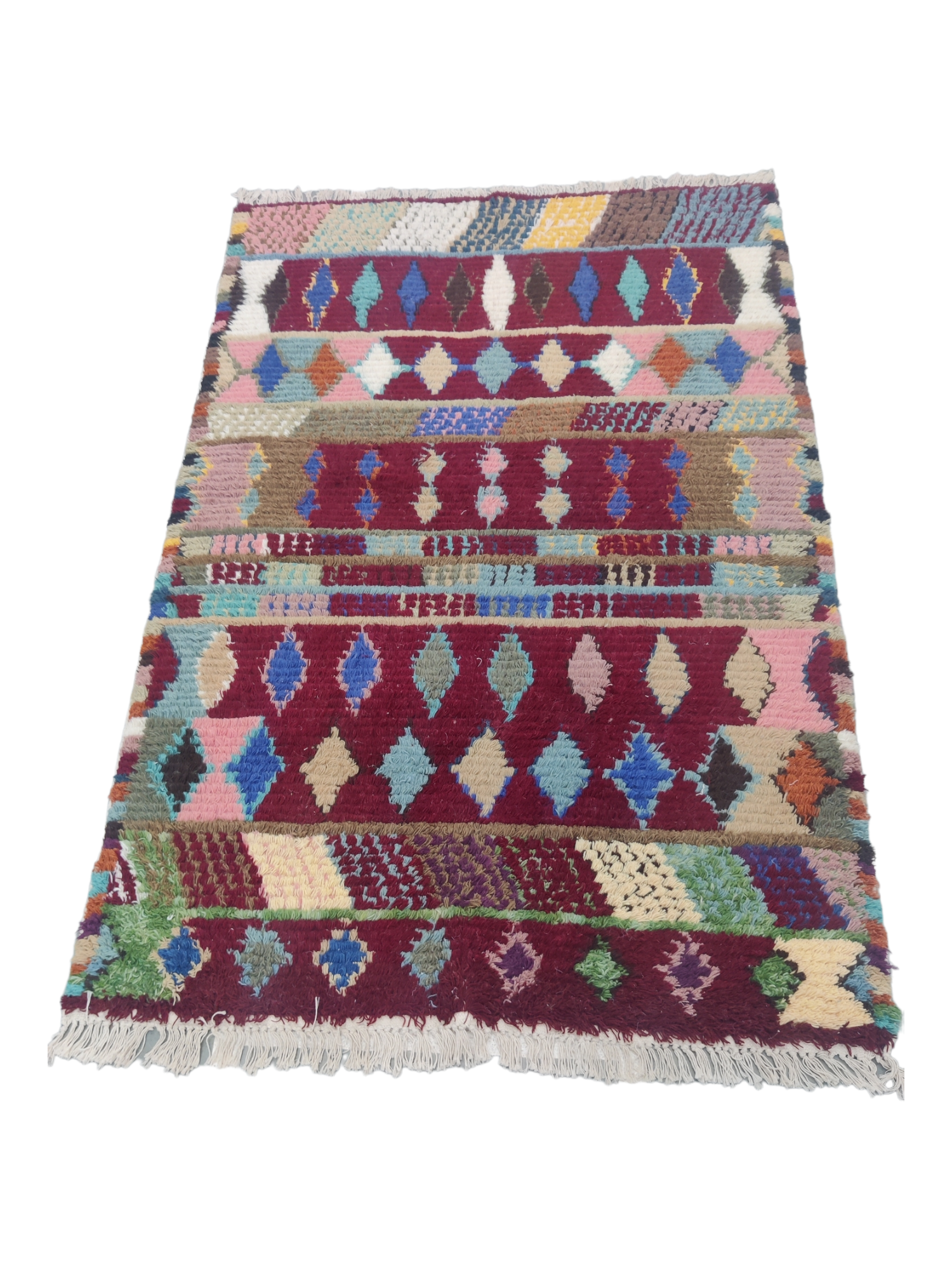 Handwoven Wool Moroccan Home And Living Room Rug, Diamond Pattern Area Rug