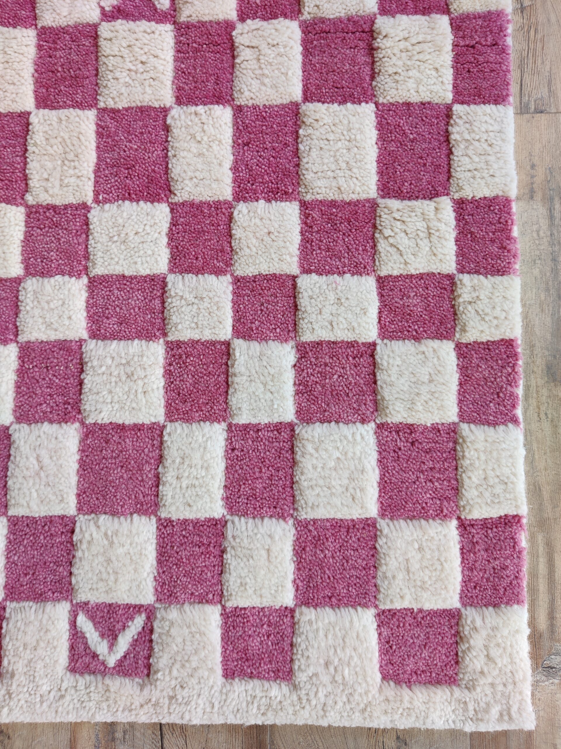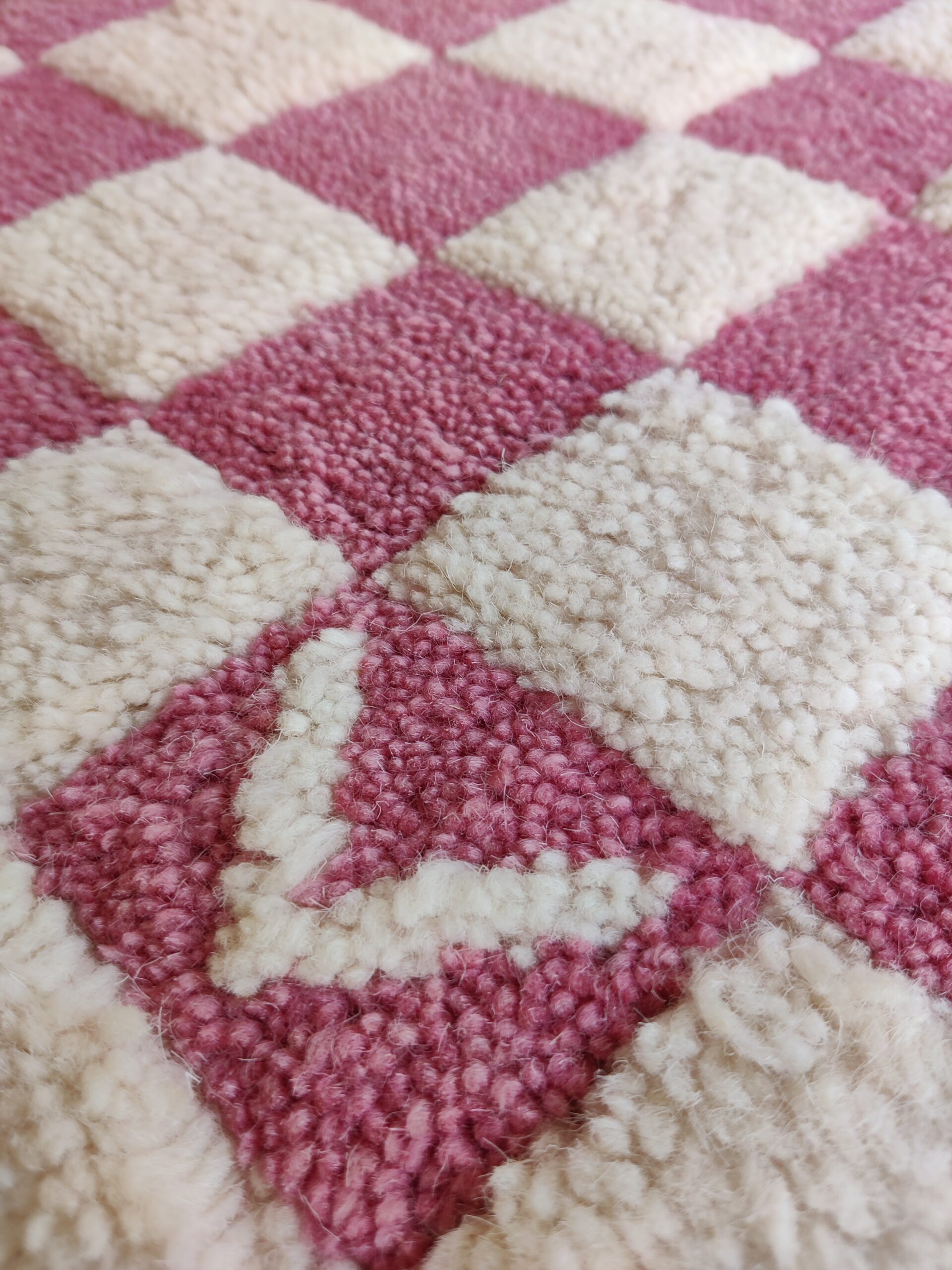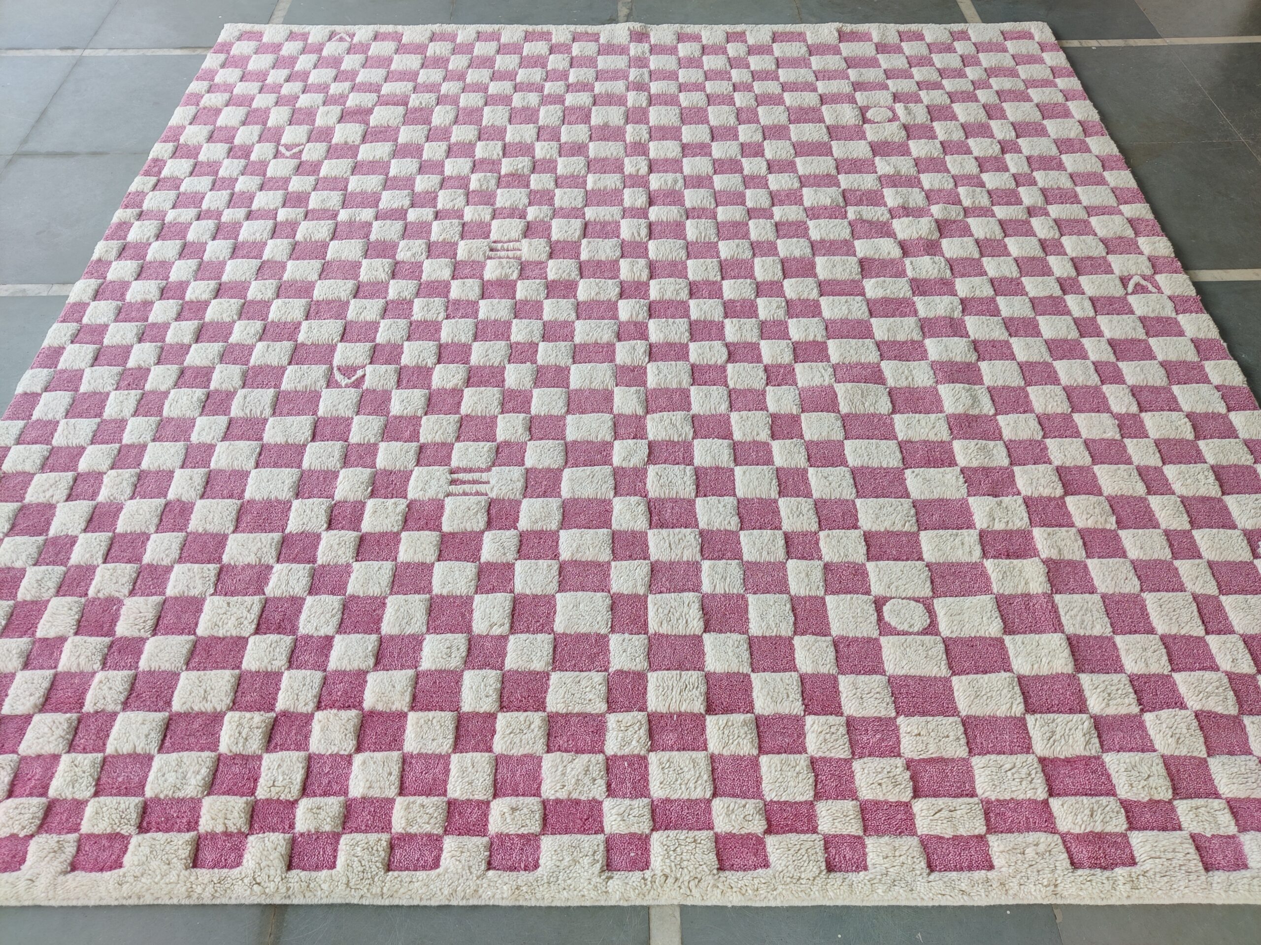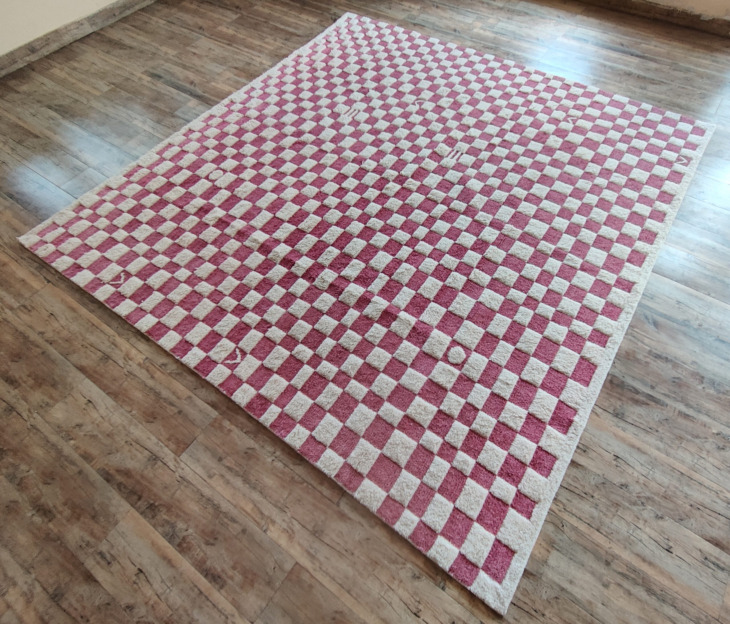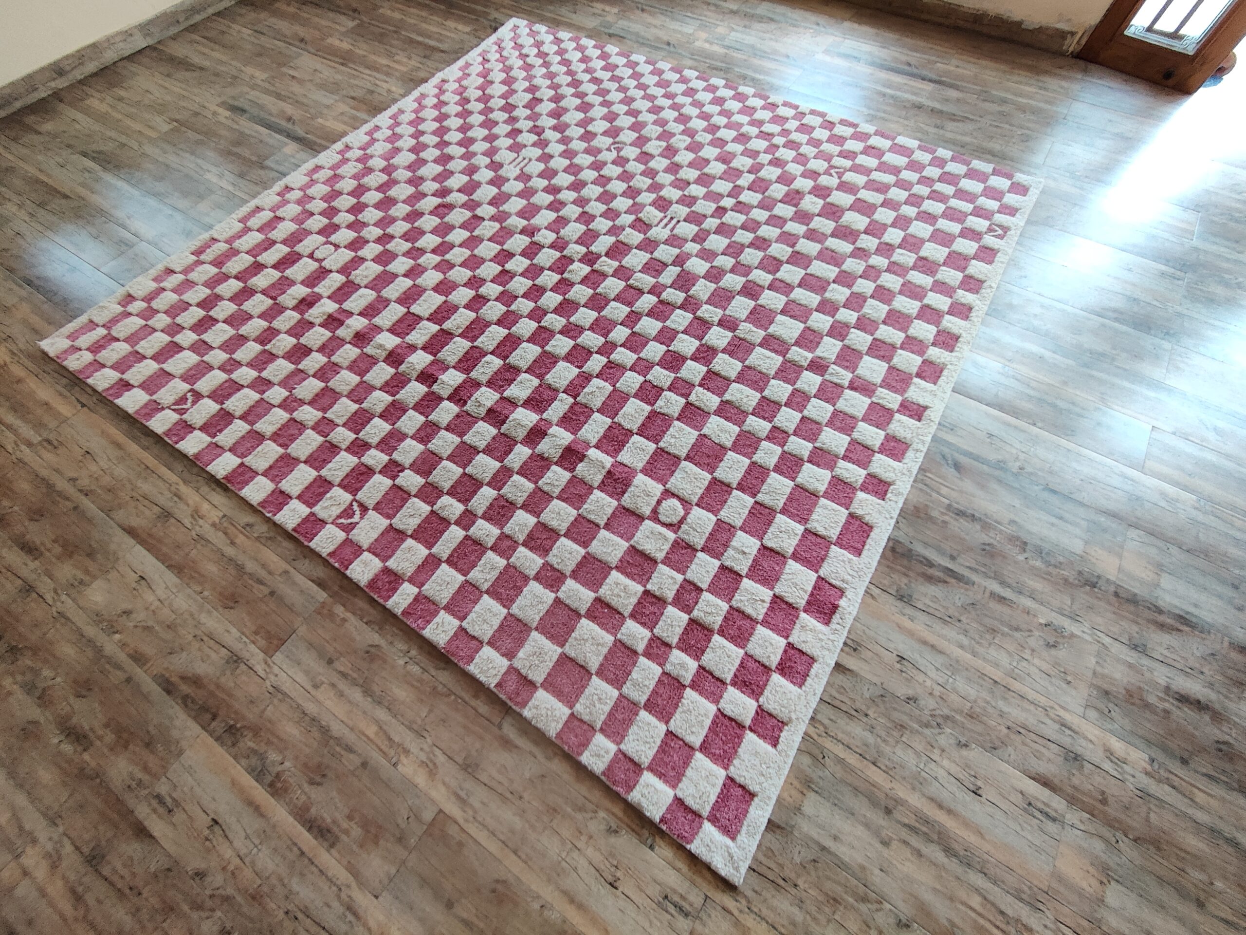 Handwoven Wool Moroccan Purple White Home And Living Room Checkered Rug