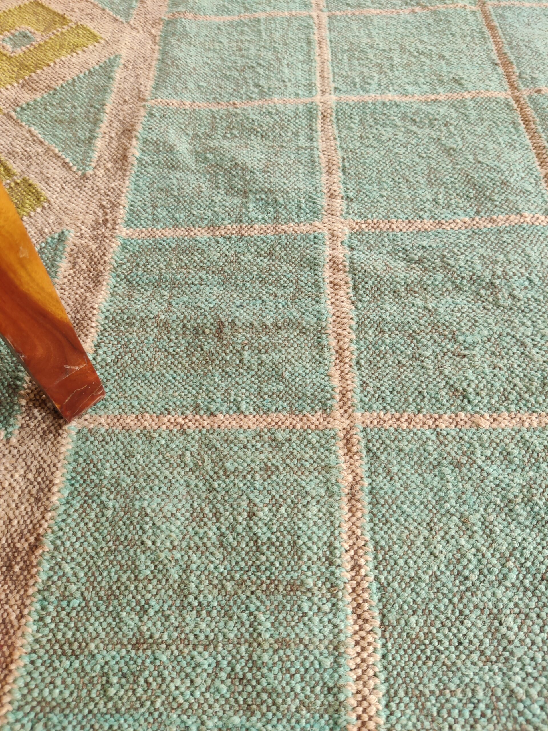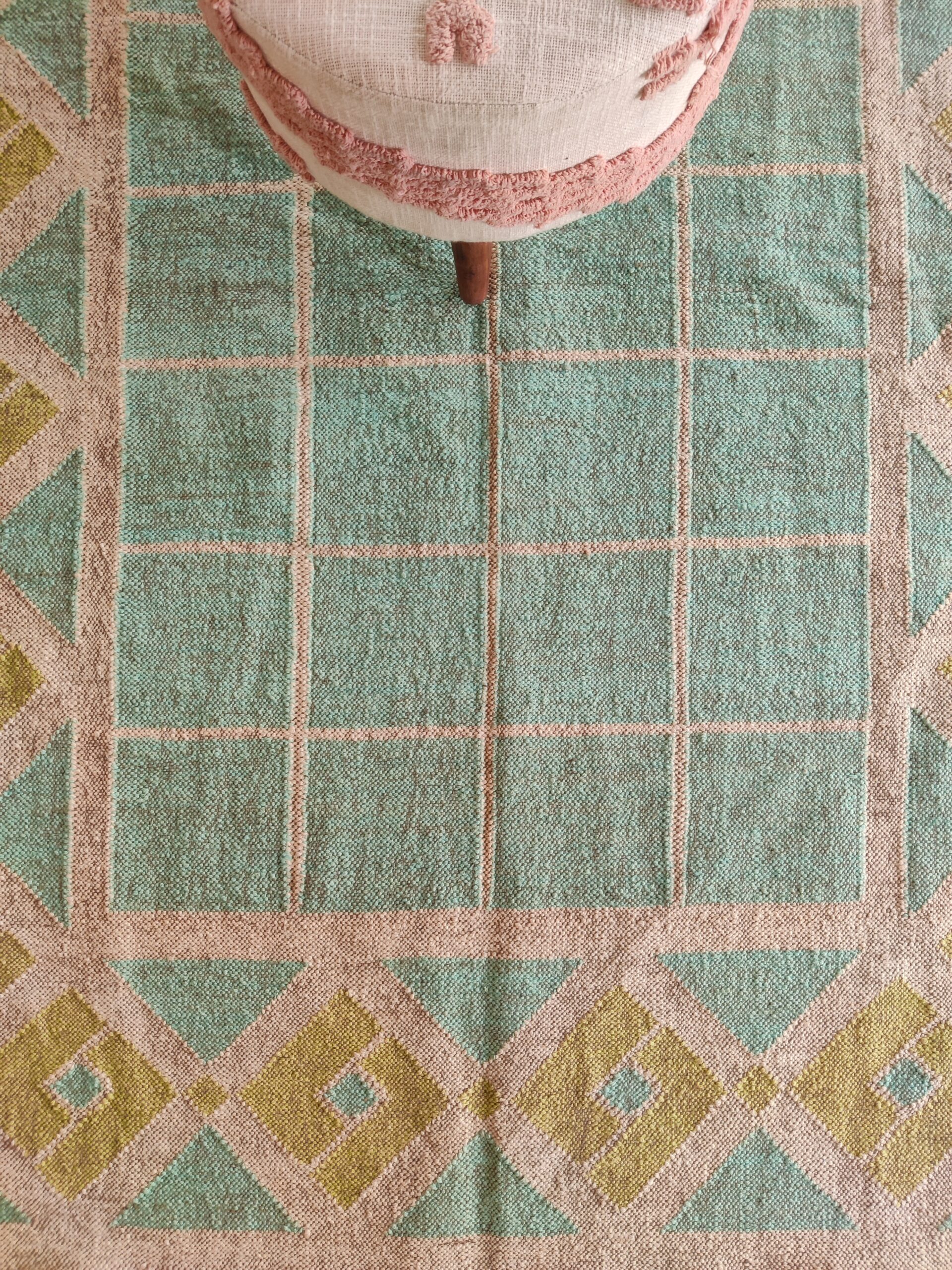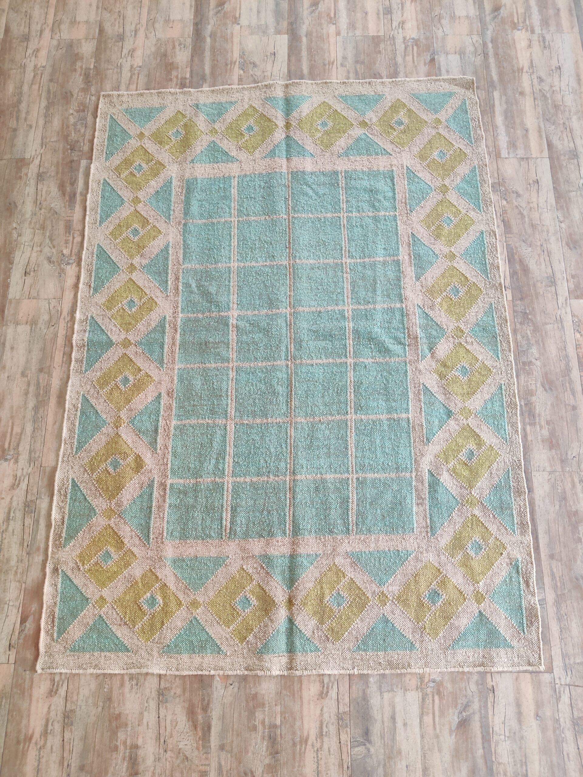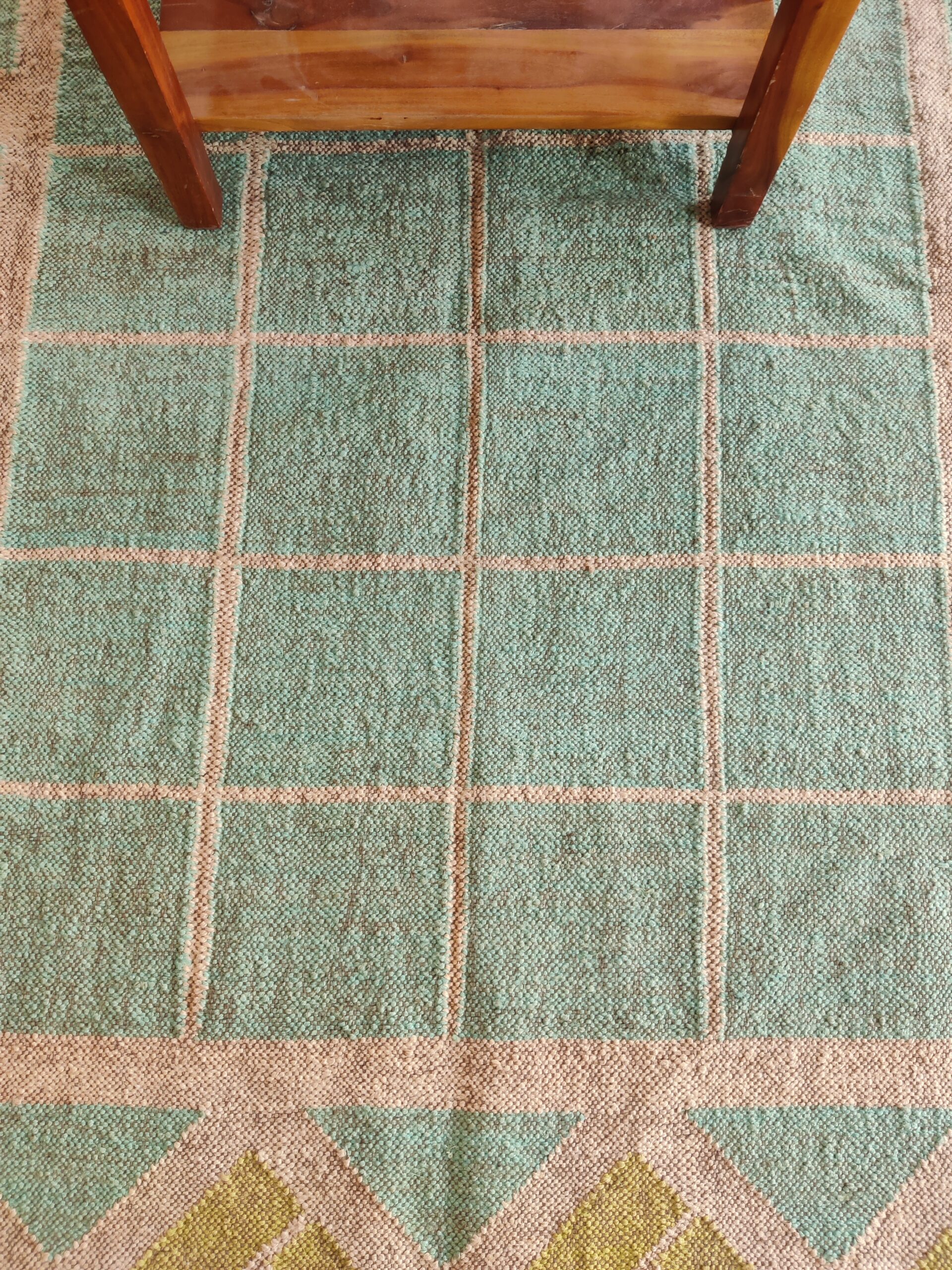 Crafted by experienced artisans, this natural handwoven jute rug is made with wool and jute. This rug is woven by hand on a traditional wooden loom. Made from hand-dyed, pure, sustainable jute and natural wool. This rug is reversible, with the same design on both sides. Wool: 30% Jute: 70%