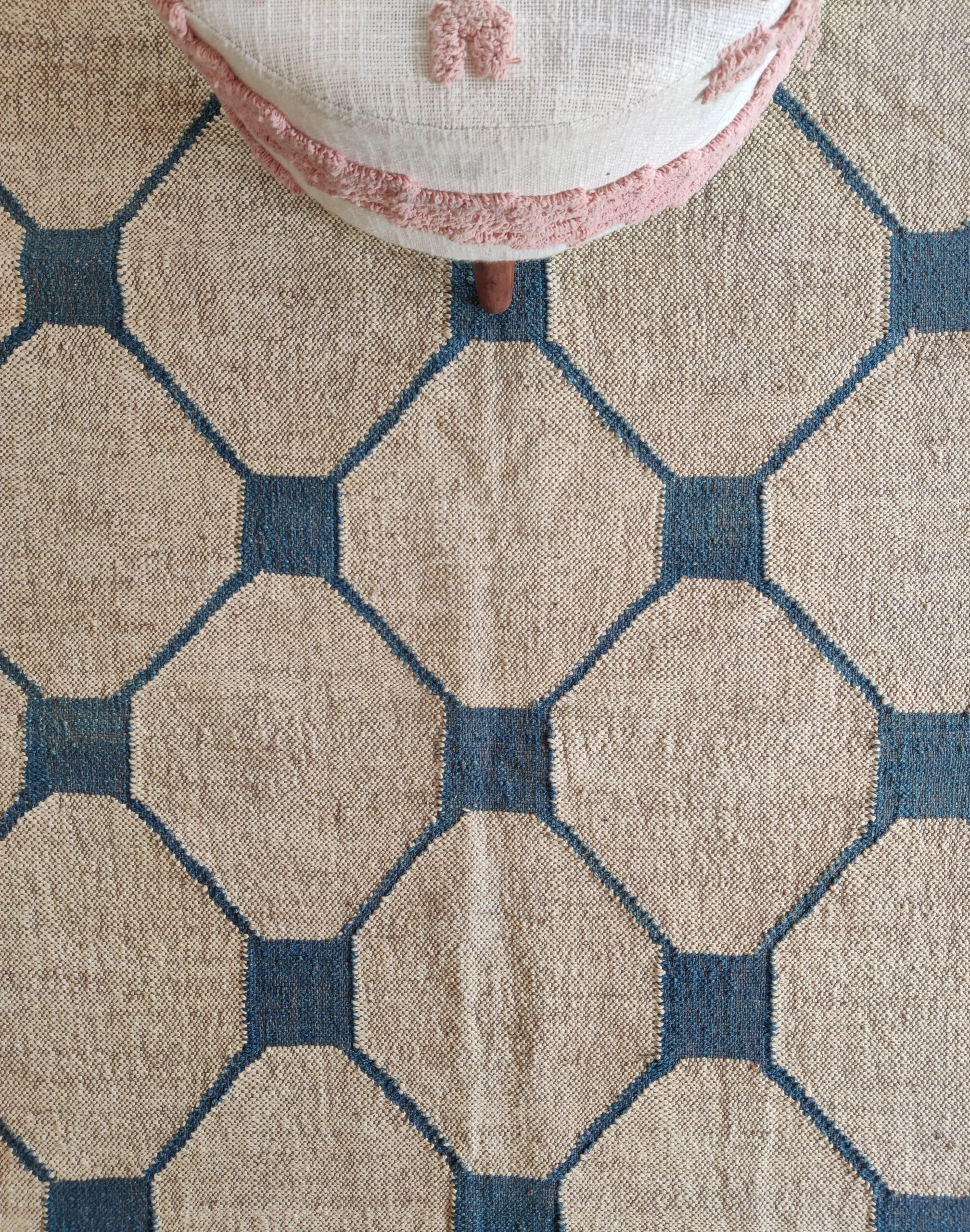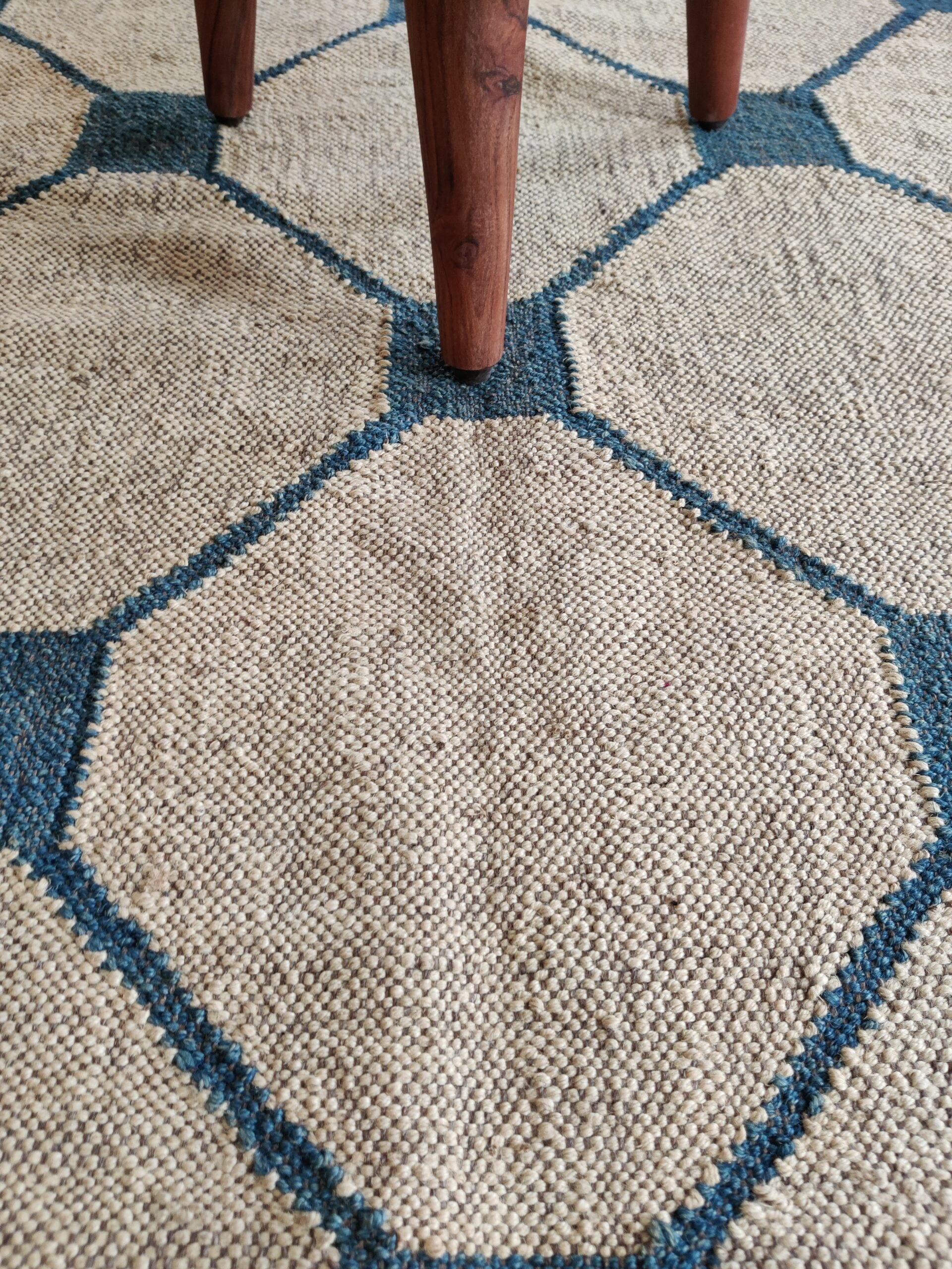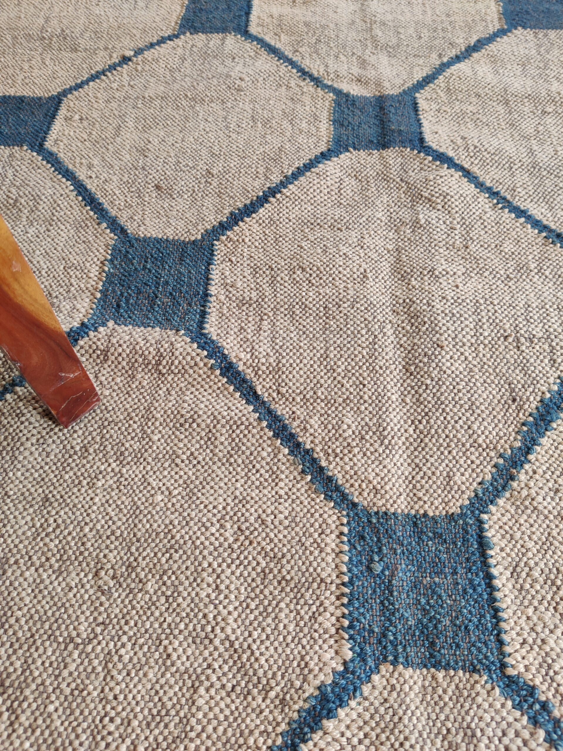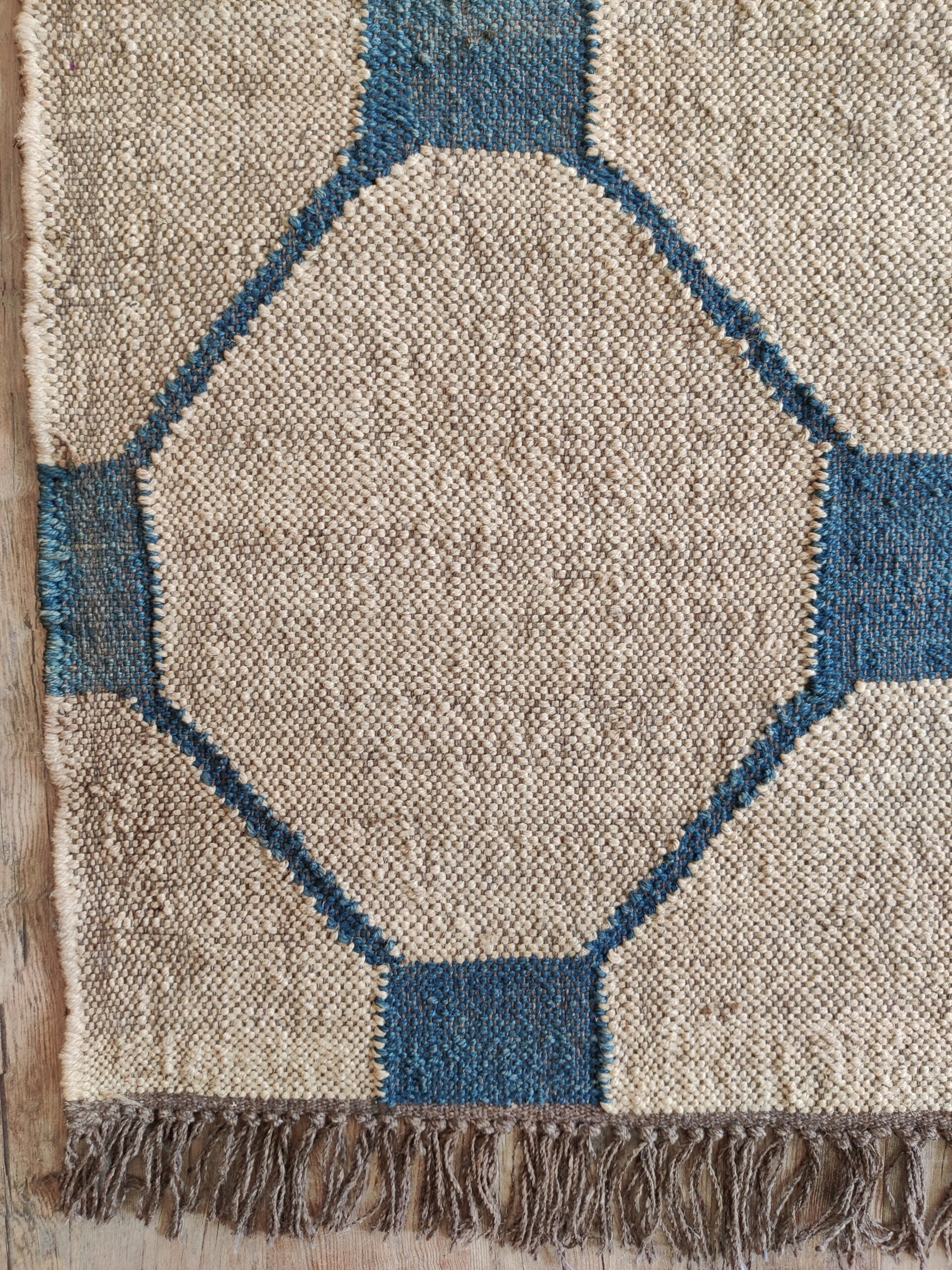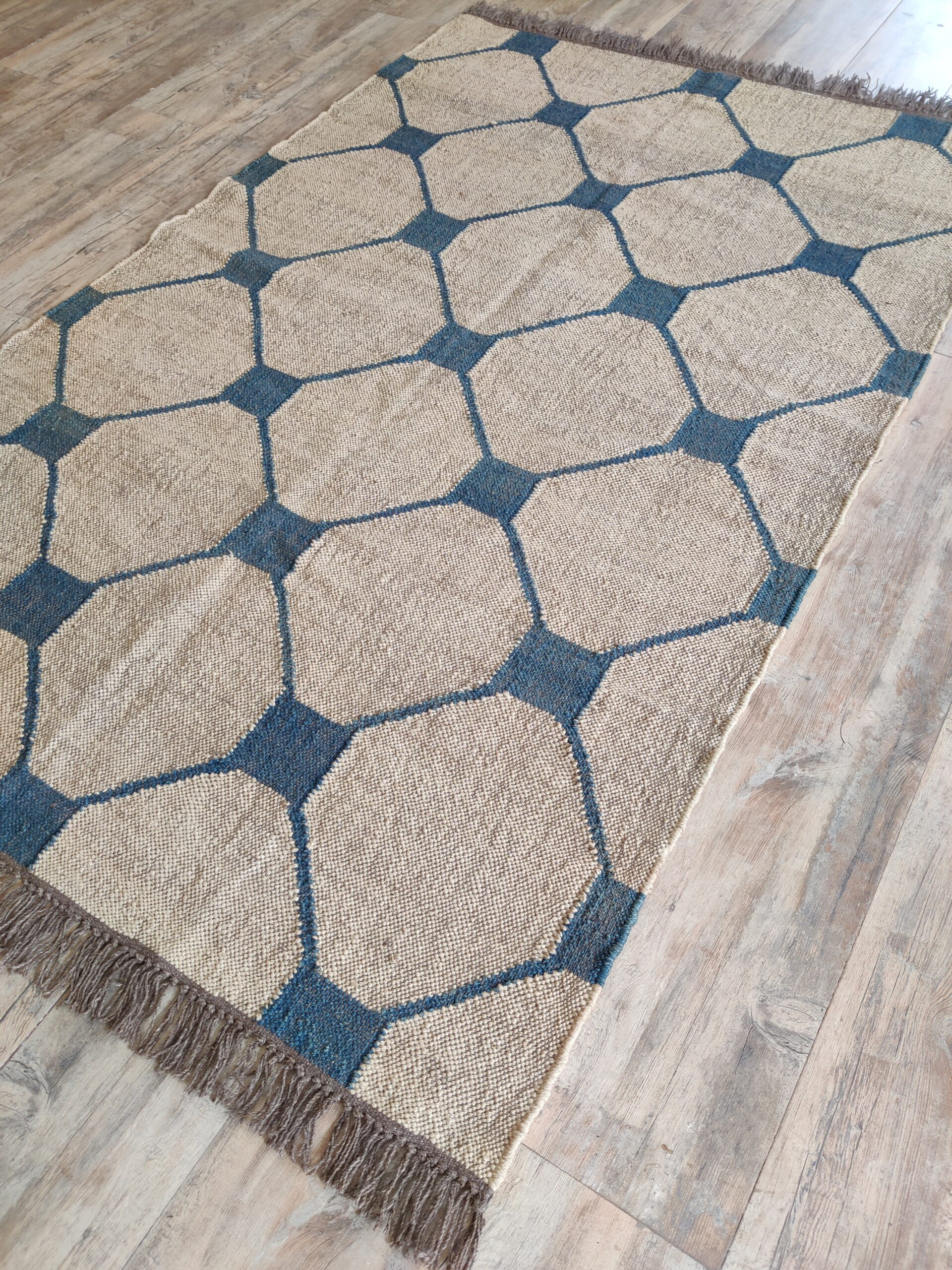 Crafted by experienced artisans, this natural handwoven jute rug is made with wool and jute. This rug is woven by hand on a traditional wooden loom. Made from hand-dyed, pure, sustainable jute and natural wool. This rug is reversible, with the same design on both sides. Wool: 30% Jute: 70%