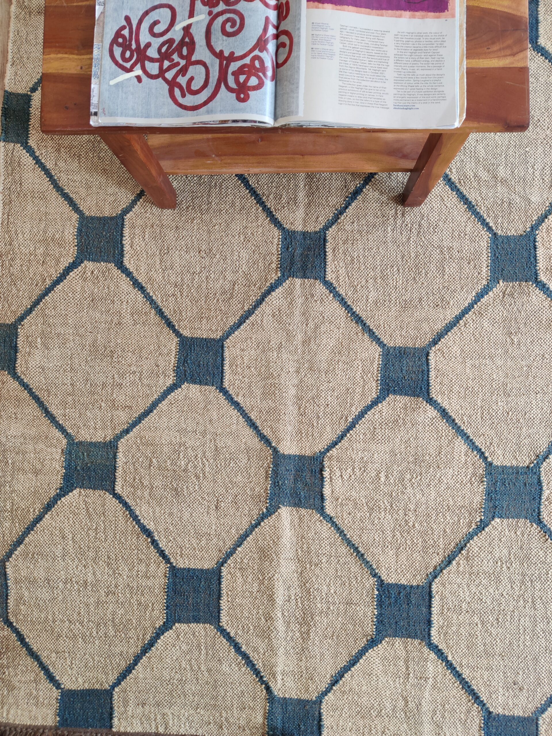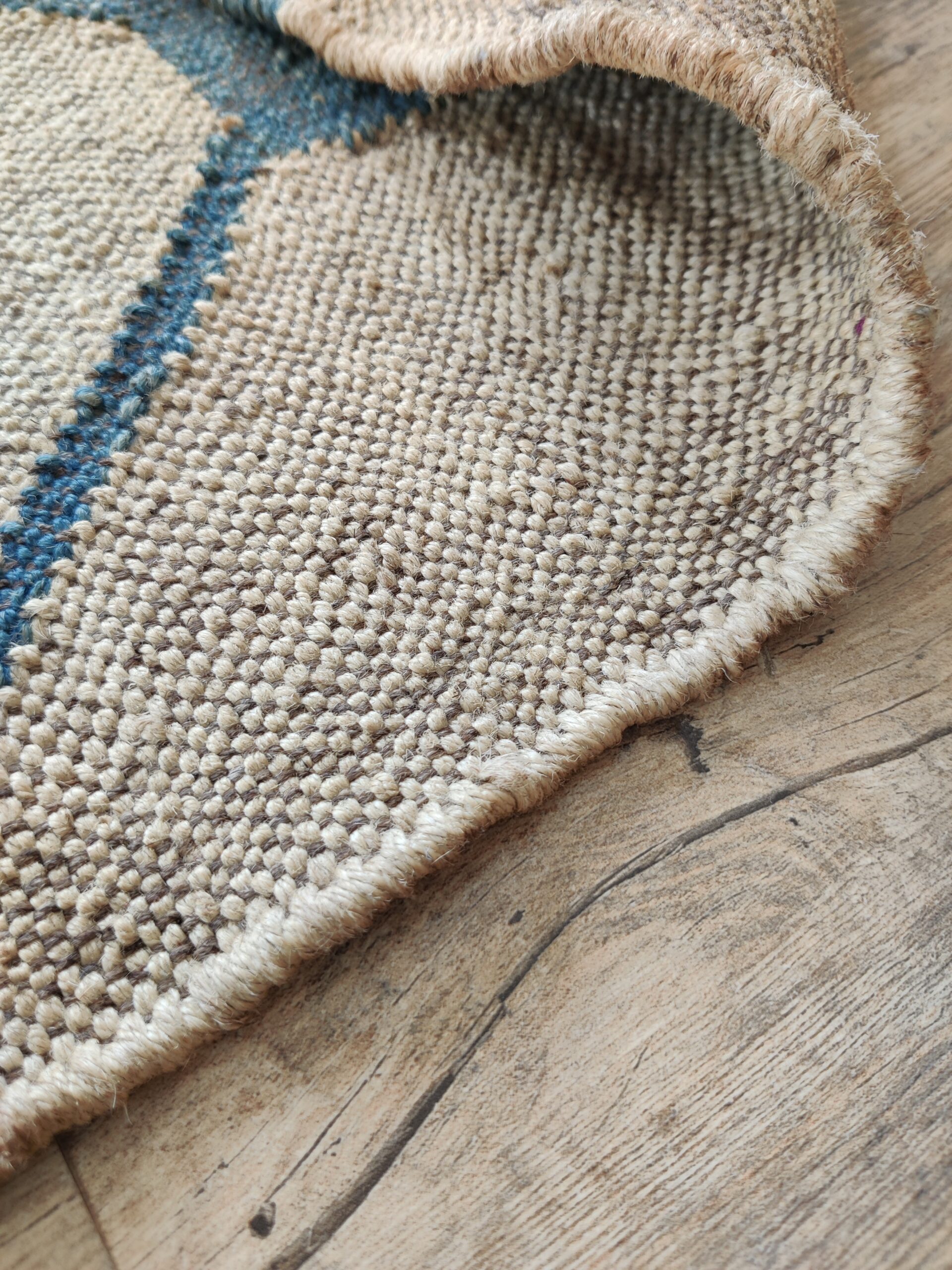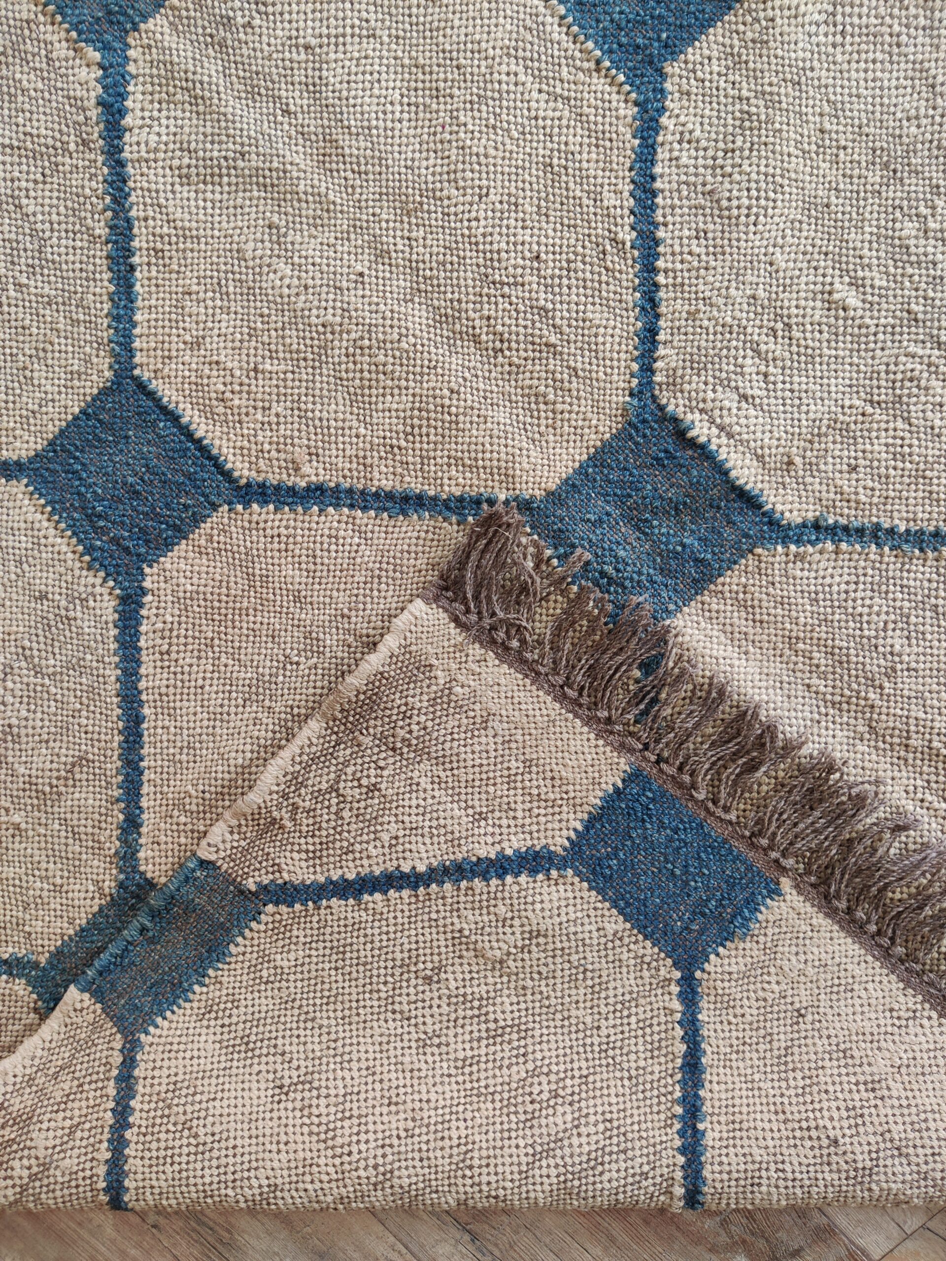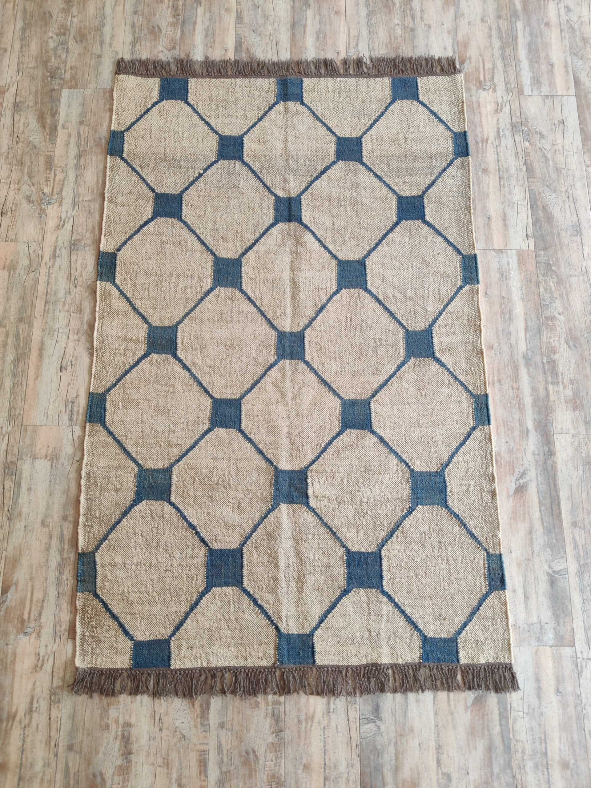 Crafted by experienced artisans, this natural handwoven jute rug is made with wool and jute. This rug is woven by hand on a traditional wooden loom. Made from hand-dyed, pure, sustainable jute and natural wool. This rug is reversible, with the same design on both sides. Wool: 30% Jute: 70%