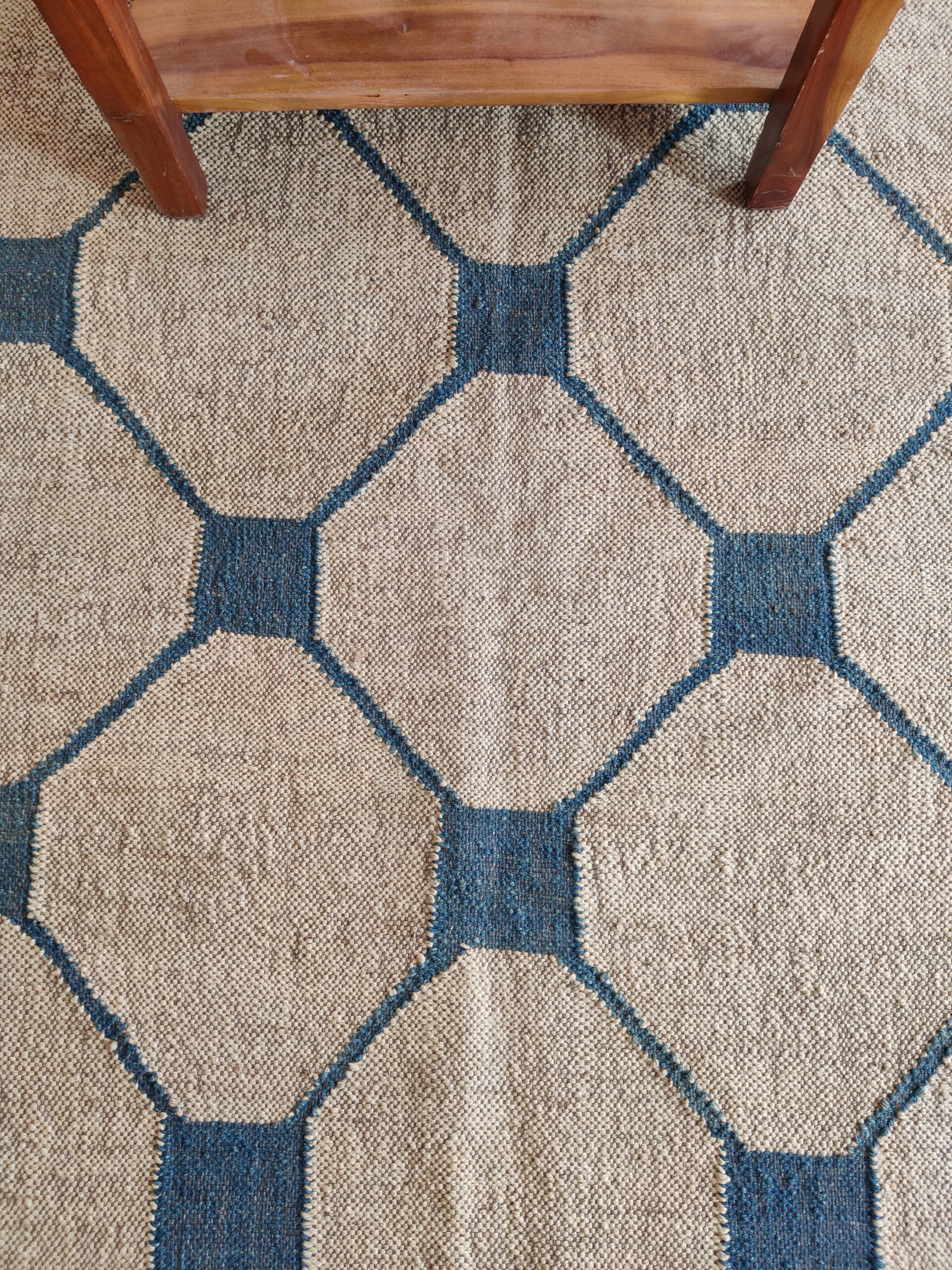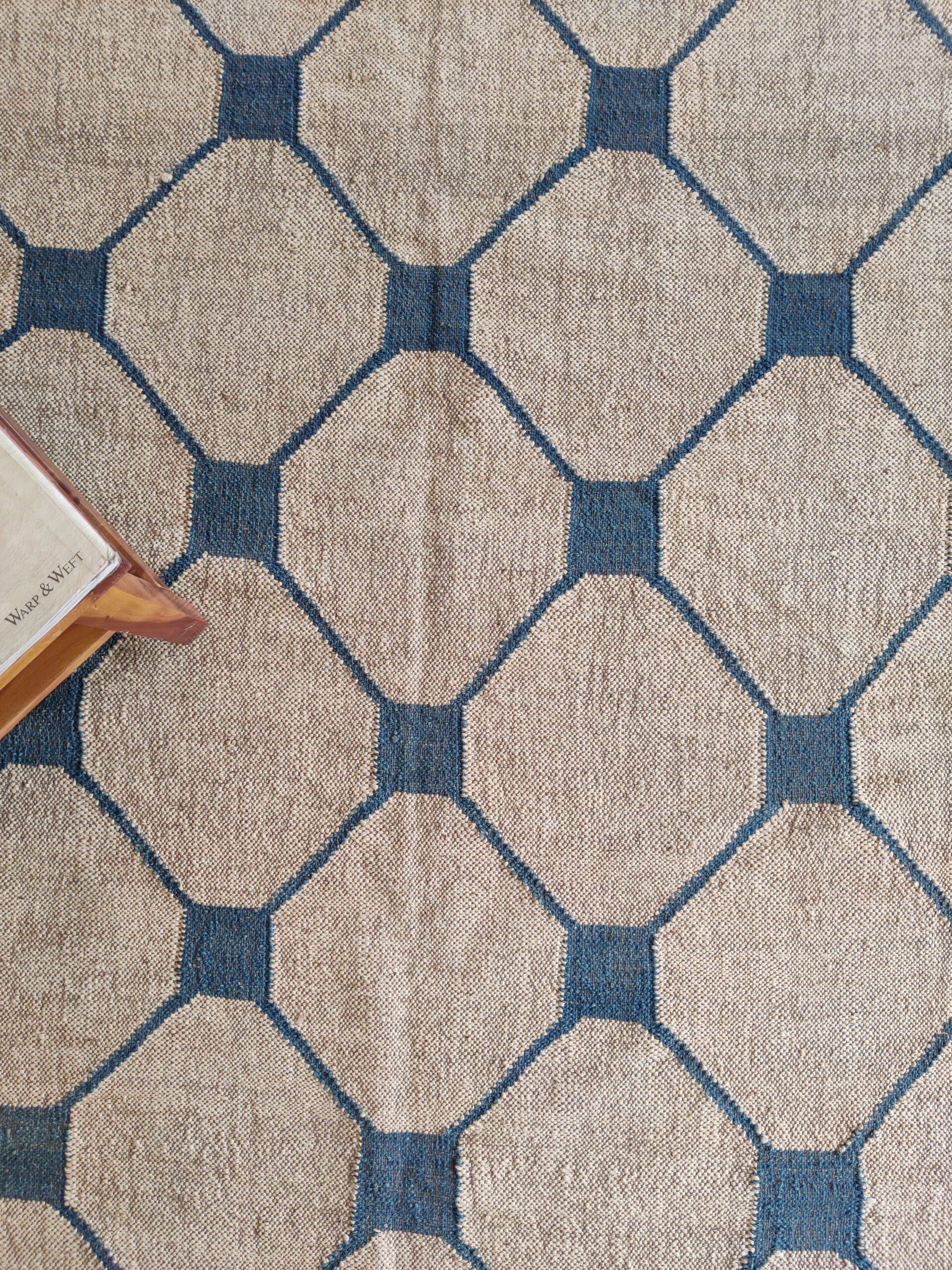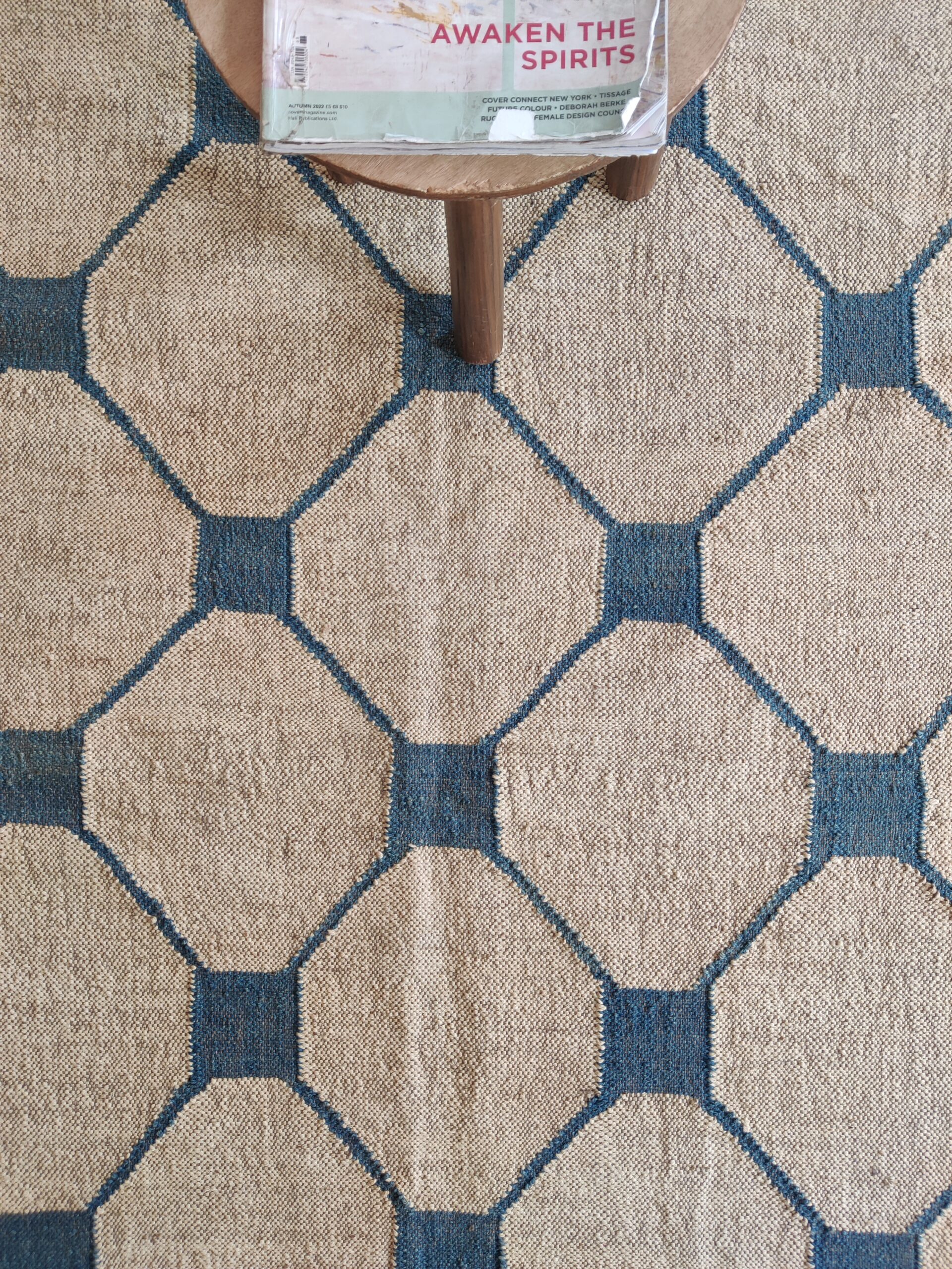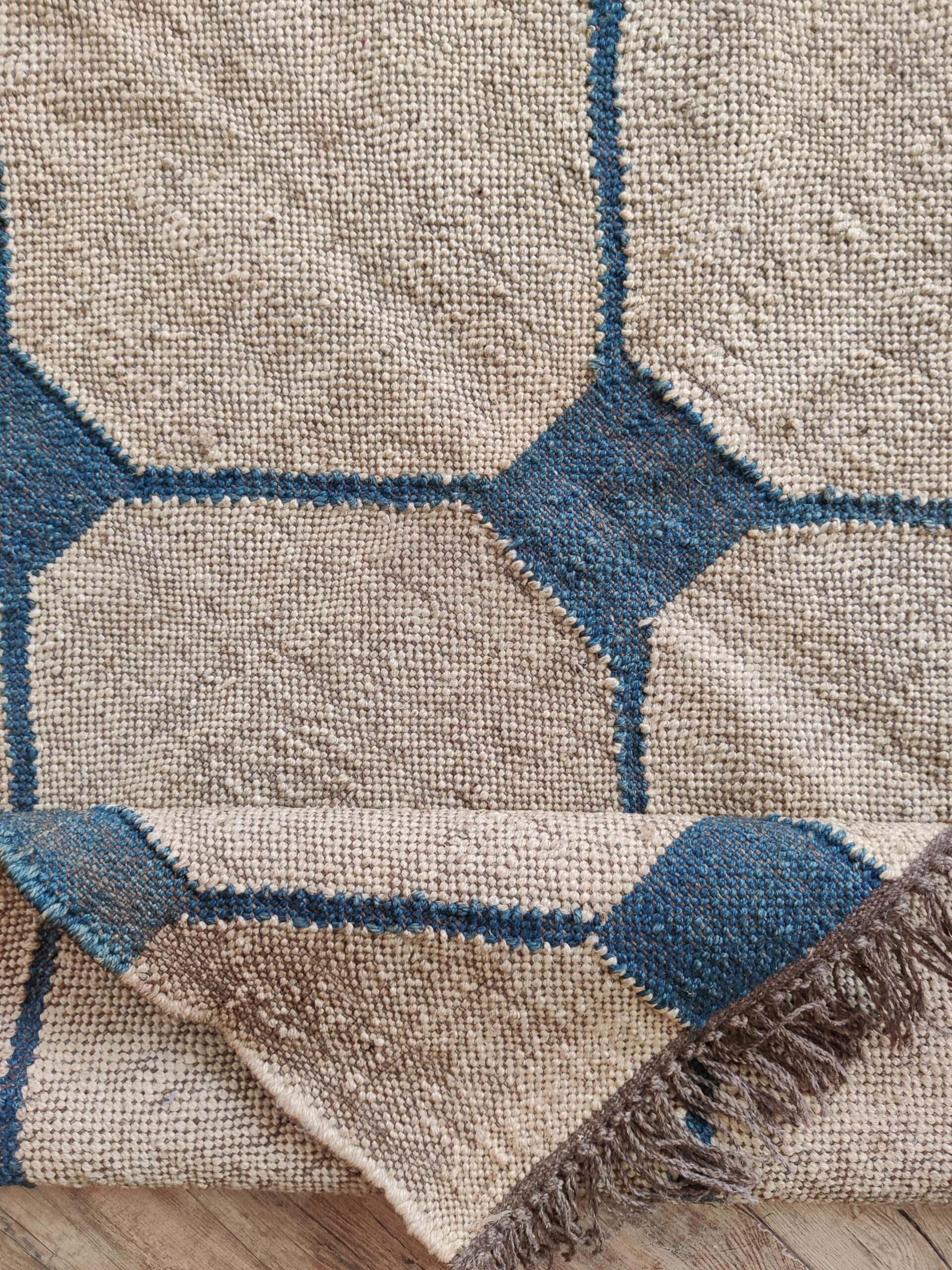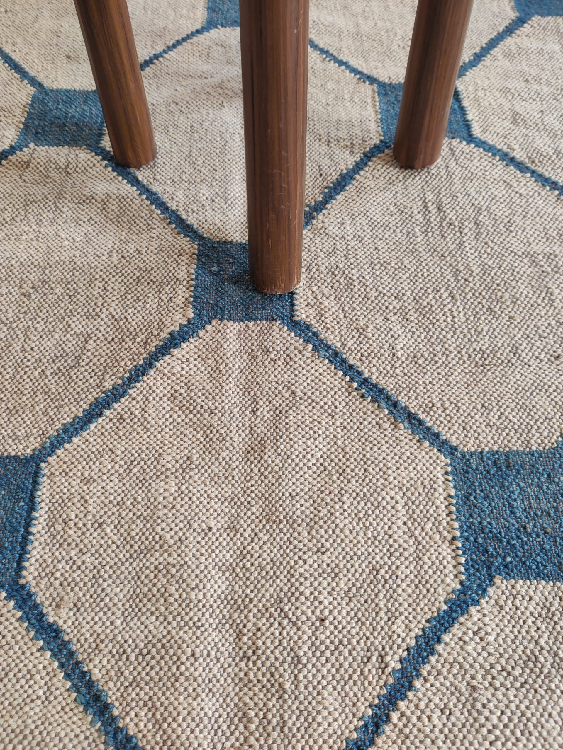 Crafted by experienced artisans, this natural handwoven jute rug is made with wool and jute. This rug is woven by hand on a traditional wooden loom. Made from hand-dyed, pure, sustainable jute and natural wool. This rug is reversible, with the same design on both sides. Wool: 30% Jute: 70%