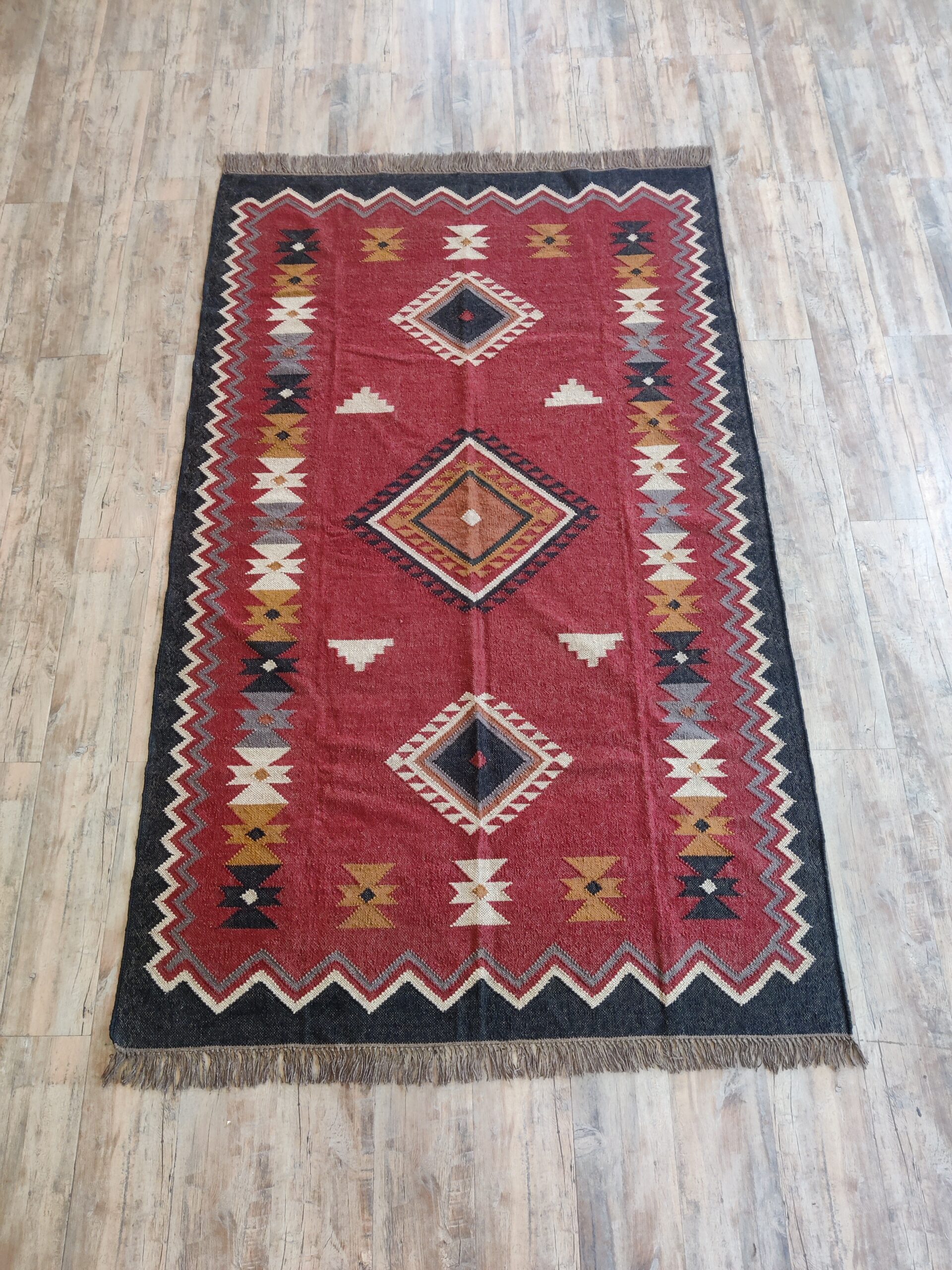 Home And Living Room Wool Jute Rug, Modern Geometric Jute Kilim Rug
