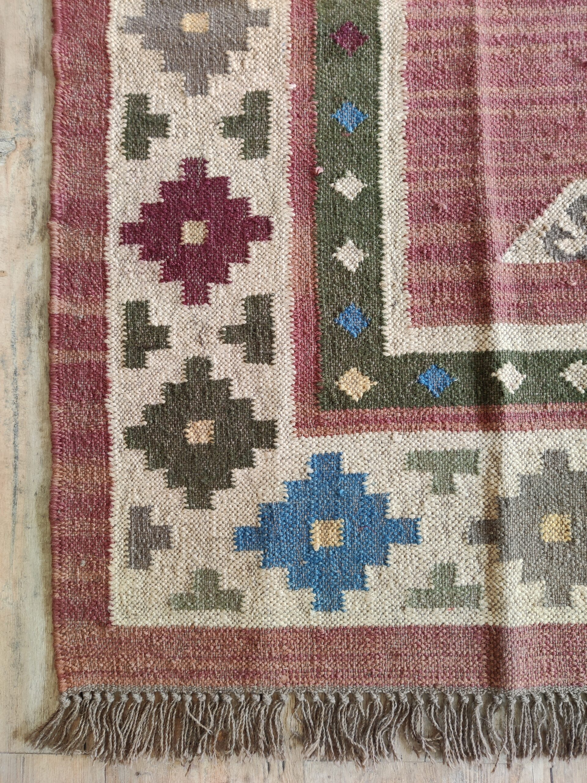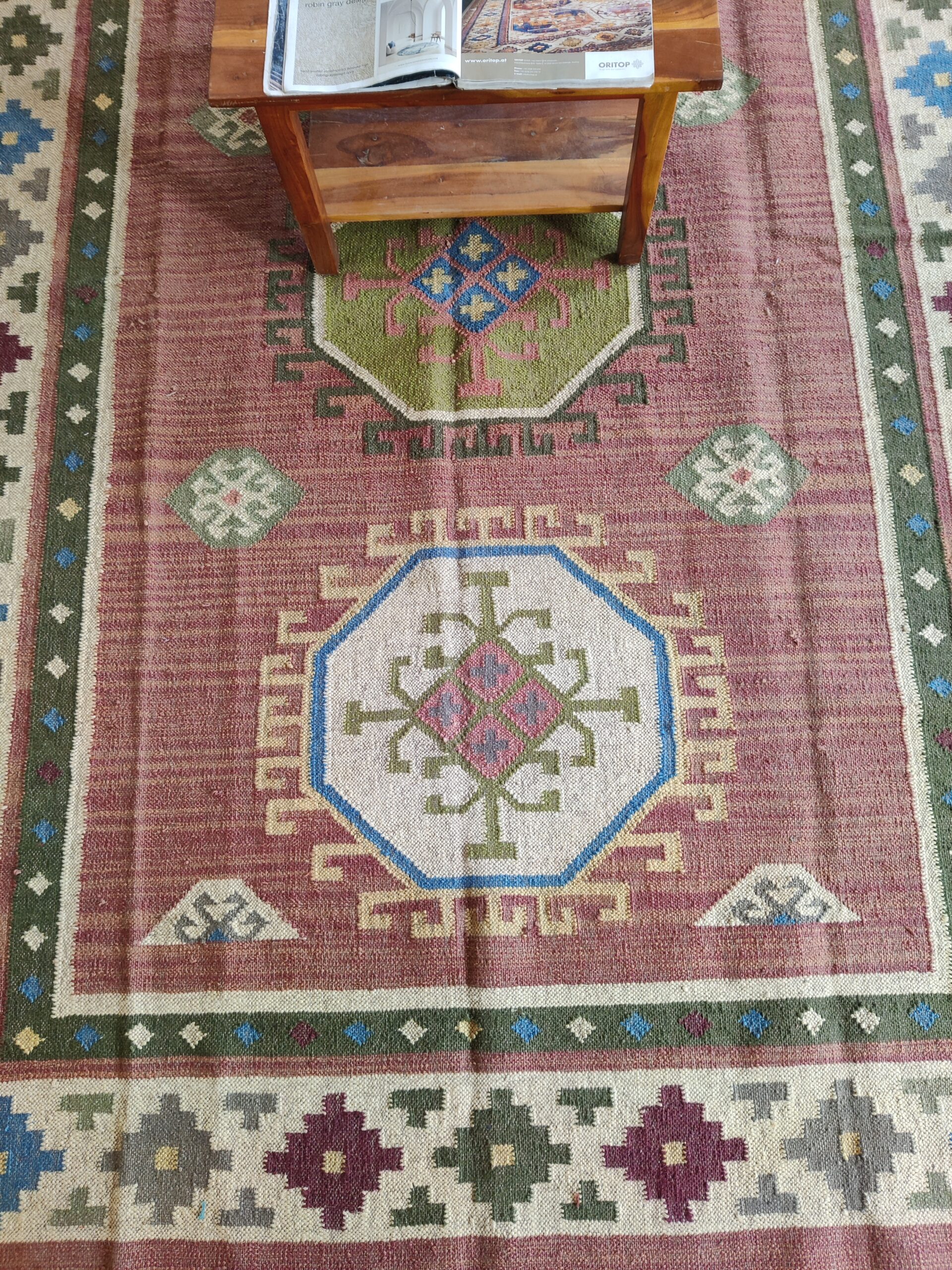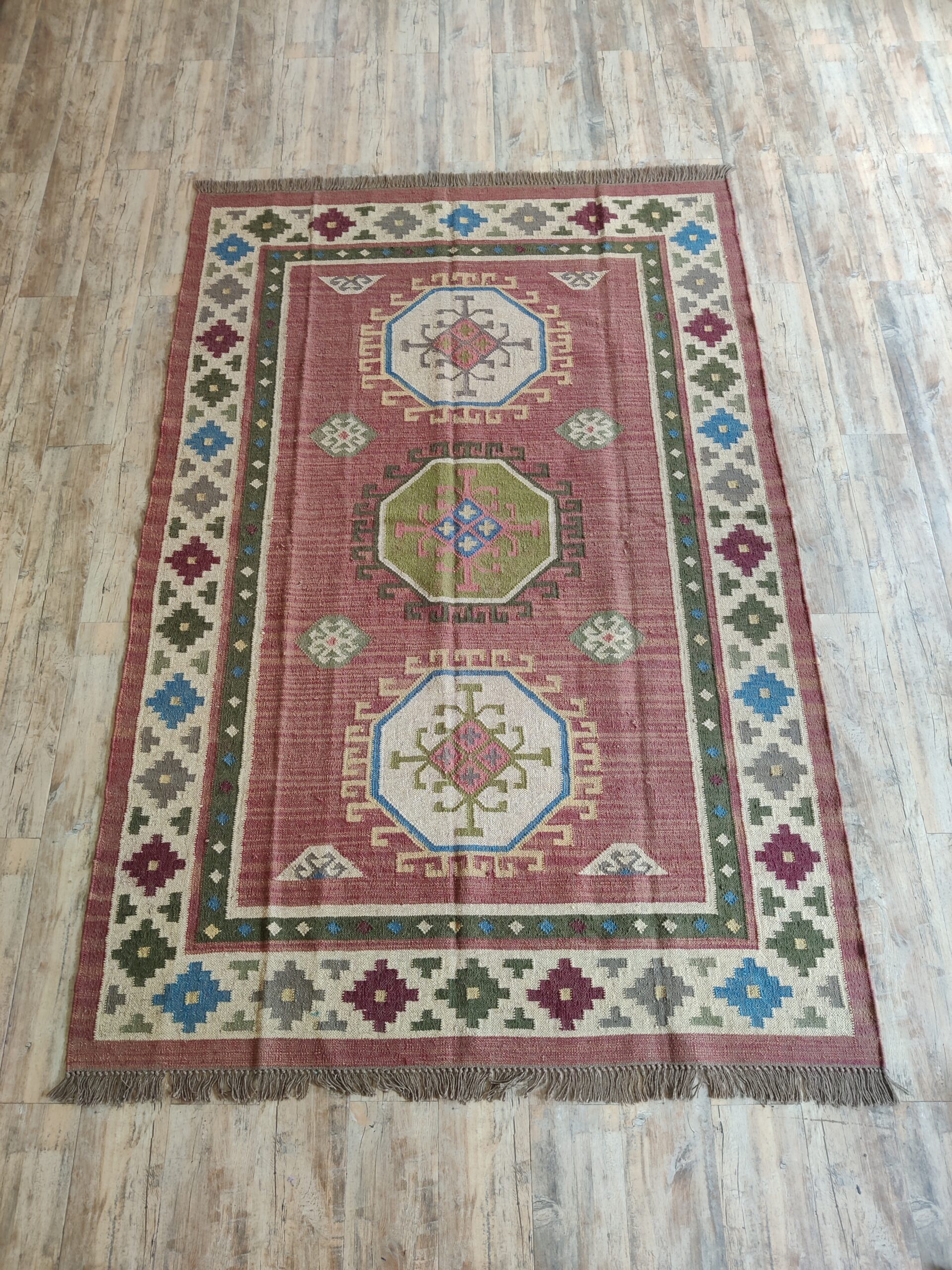Home And Living Room Wool Jute Rug, Modern Geometric Multicolor Jute Kilim Rug