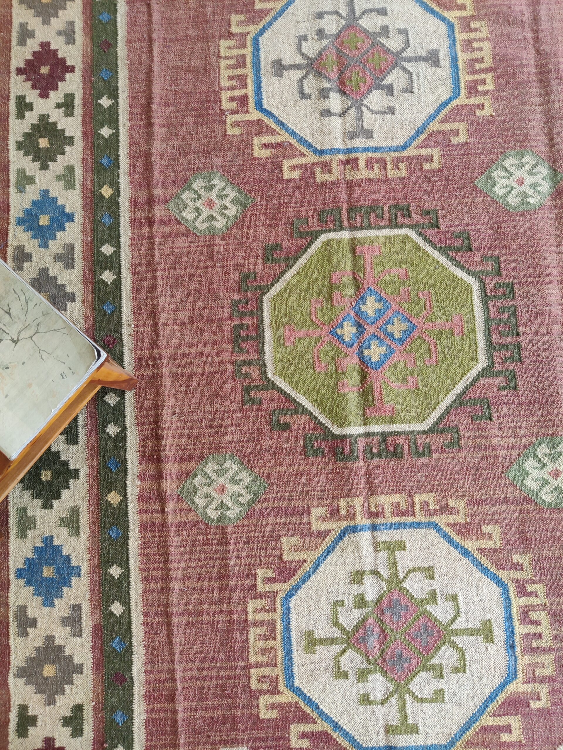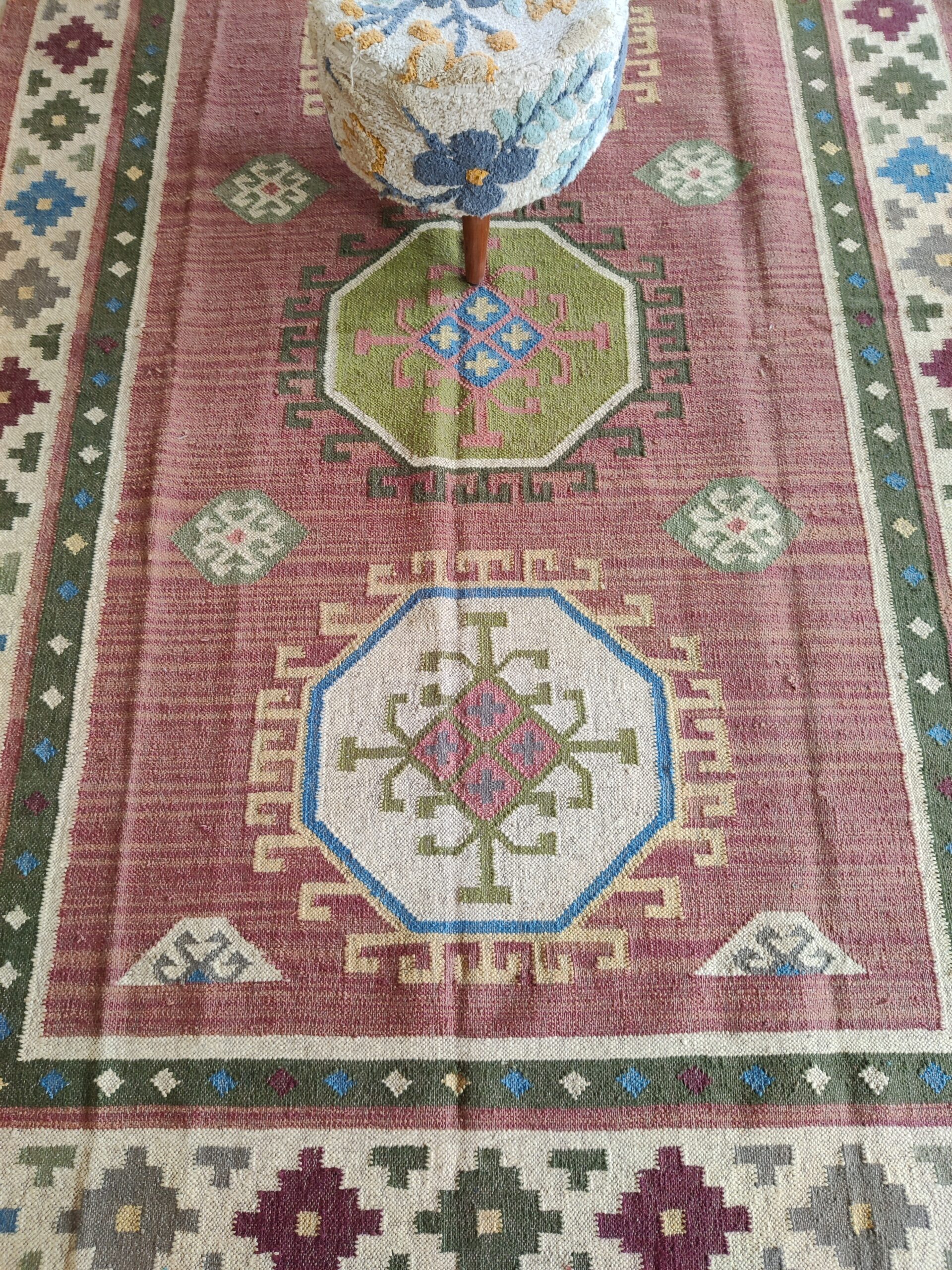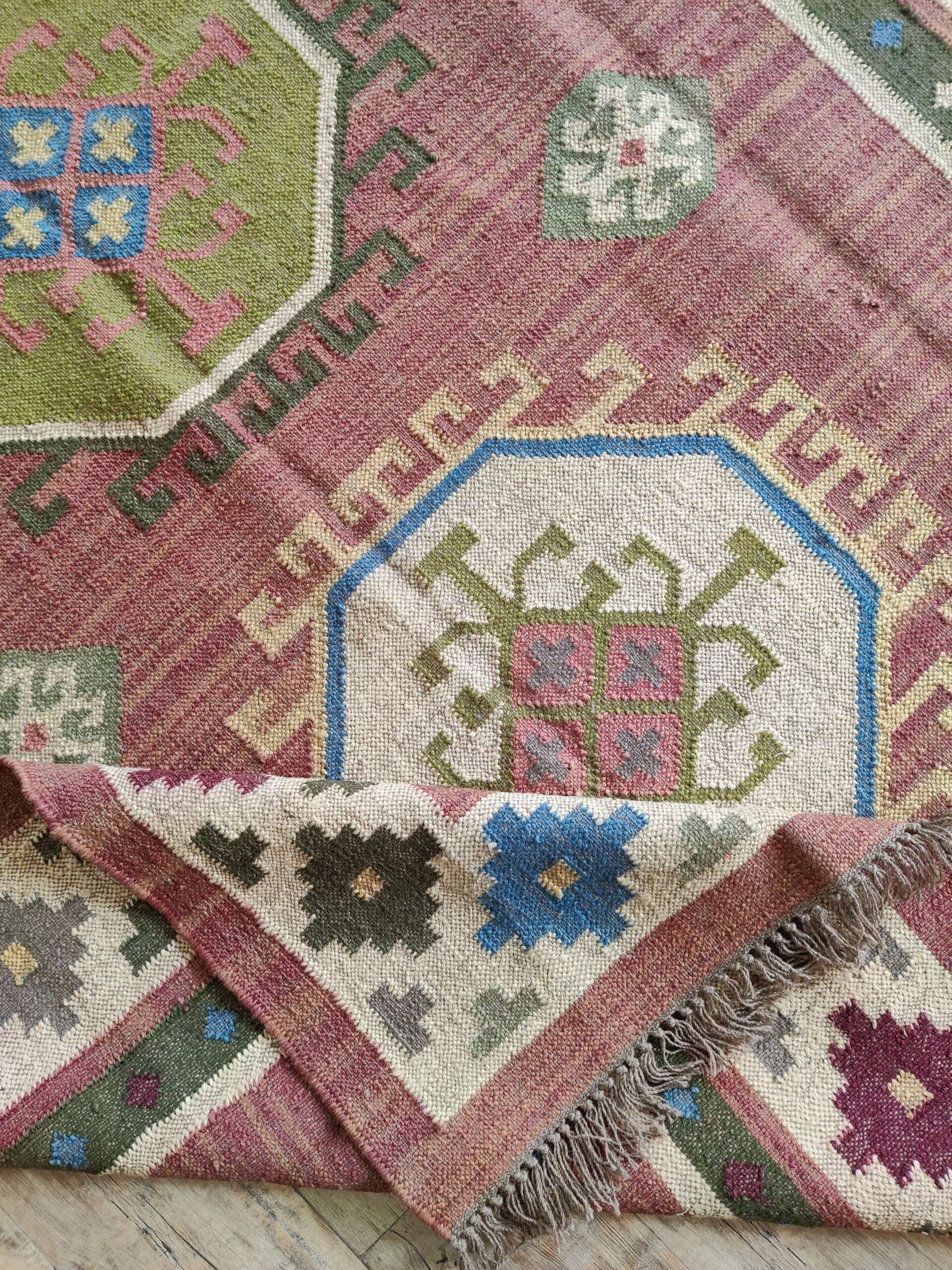 Home And Living Room Wool Jute Rug, Modern Geometric Multicolor Jute Kilim Rug