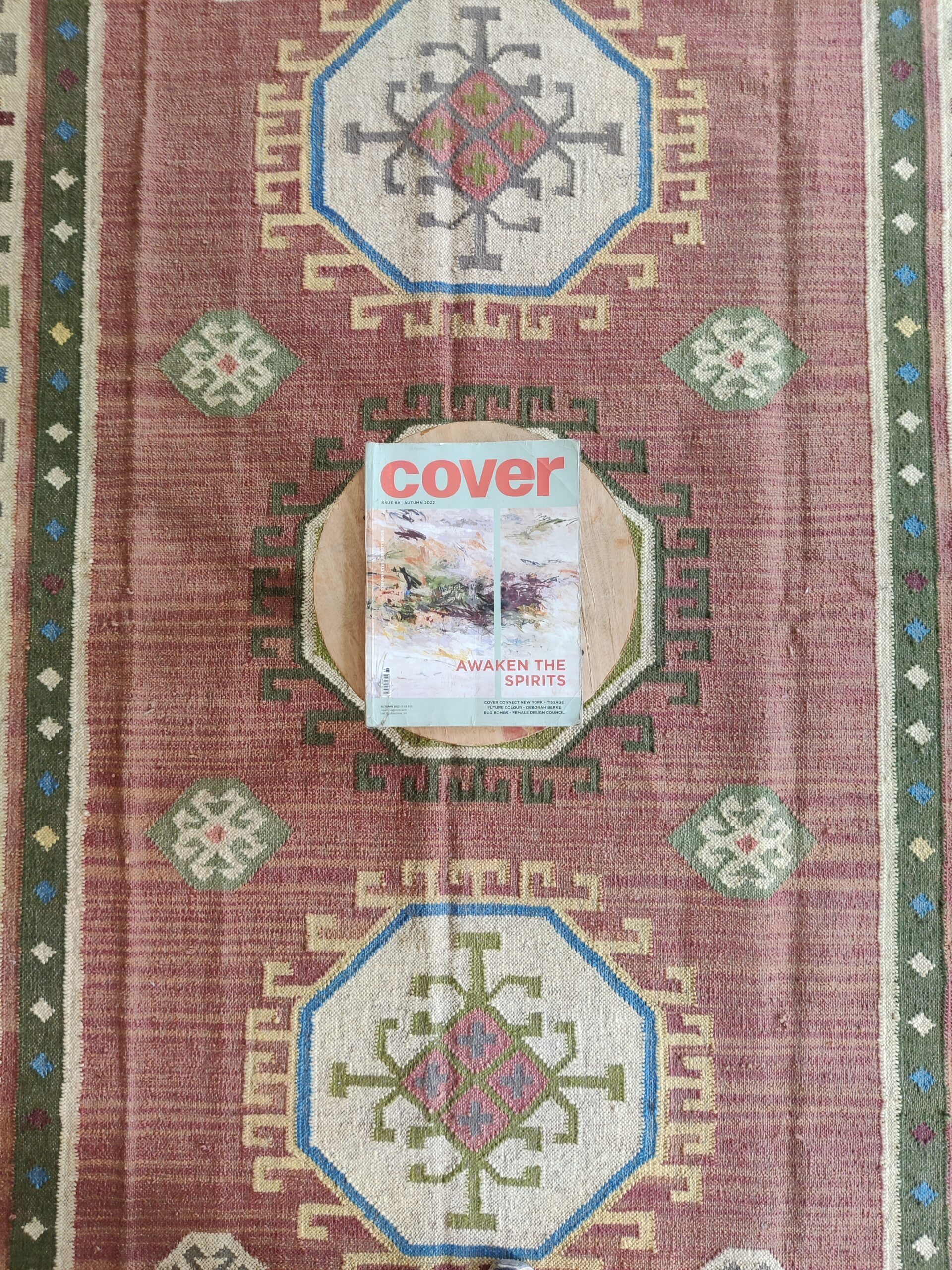 The Geometric design of a rust-color weaves its way seamlessly into any space from coastal dining to urban sleeping. Jute kilim dhurrie construction.