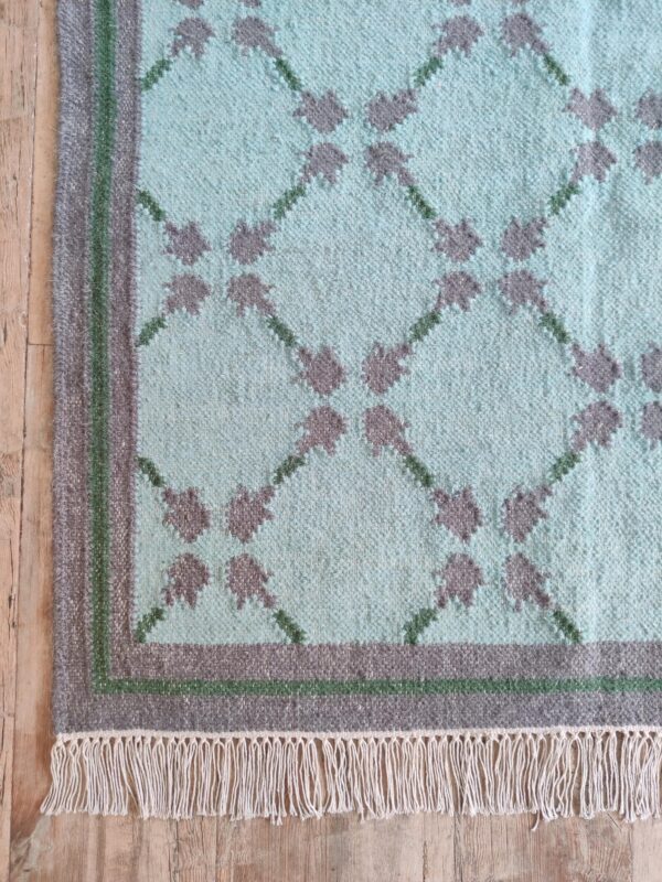 Mint Green Cotton Wool Flatweave Rug | Handwoven Geometric Area Carpet | Modern Living Room Decor