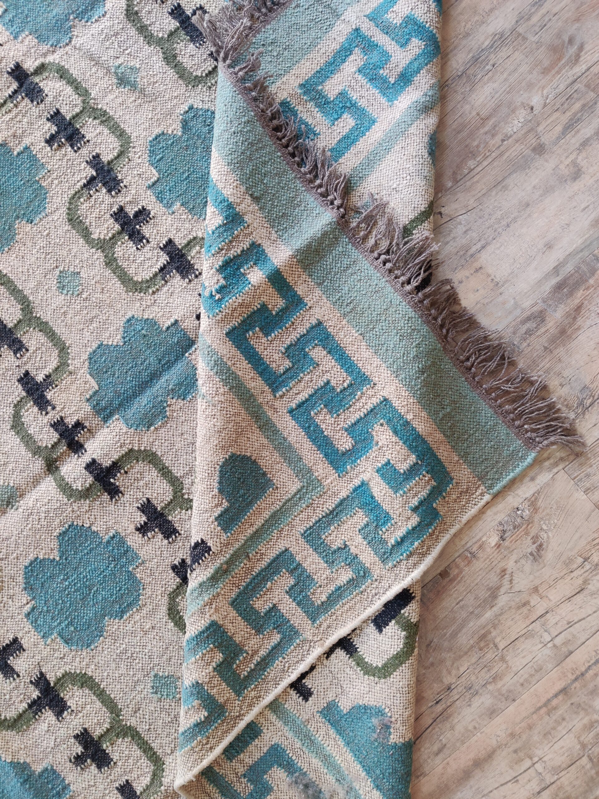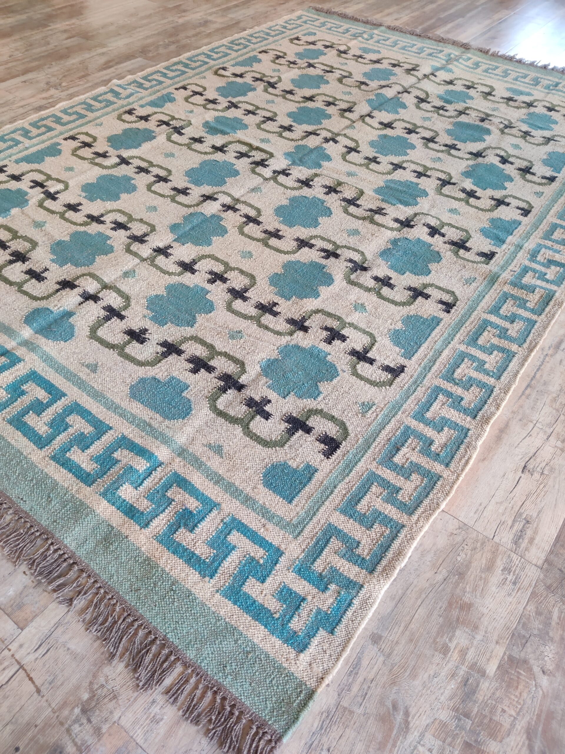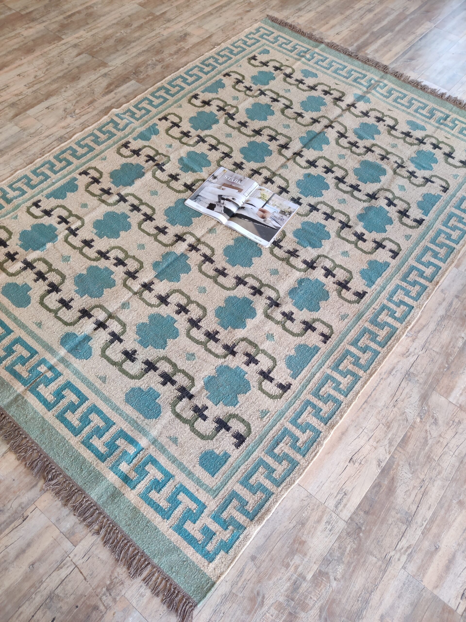 Modern Design Pattern Wool Jute Rug, Home Decor Traditional Jute Kilim Rug, Reversible Custom Size Rug
