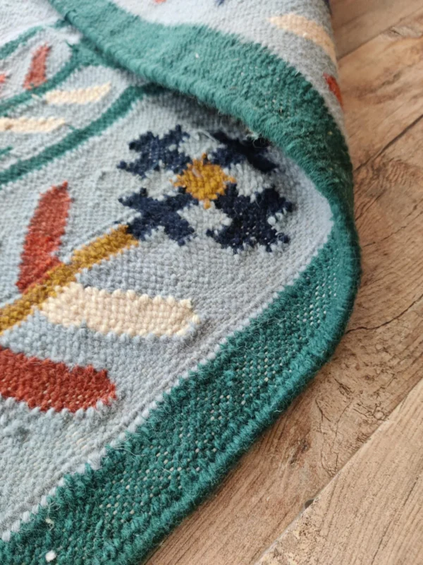 Modern Floral Flat-Weave Wool Rug: Blue Geometric Design Rug, Traditional Rug, Bespoke Size Rug
