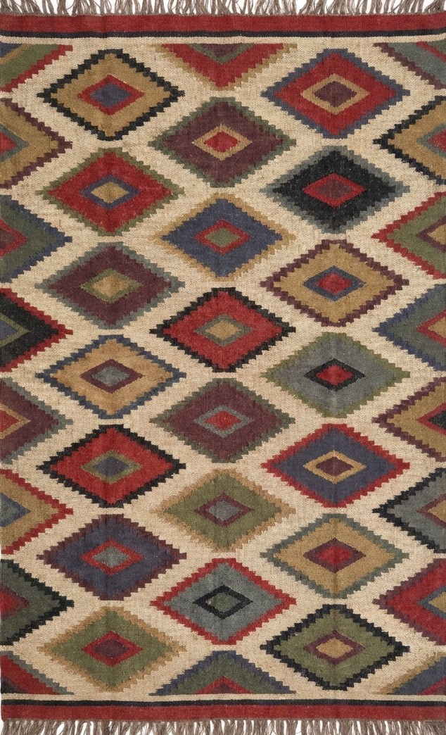 Modern Geometric Wool Jute Rug, Home And Living Room Rug Traditional Colorful Wool Jute Rug
