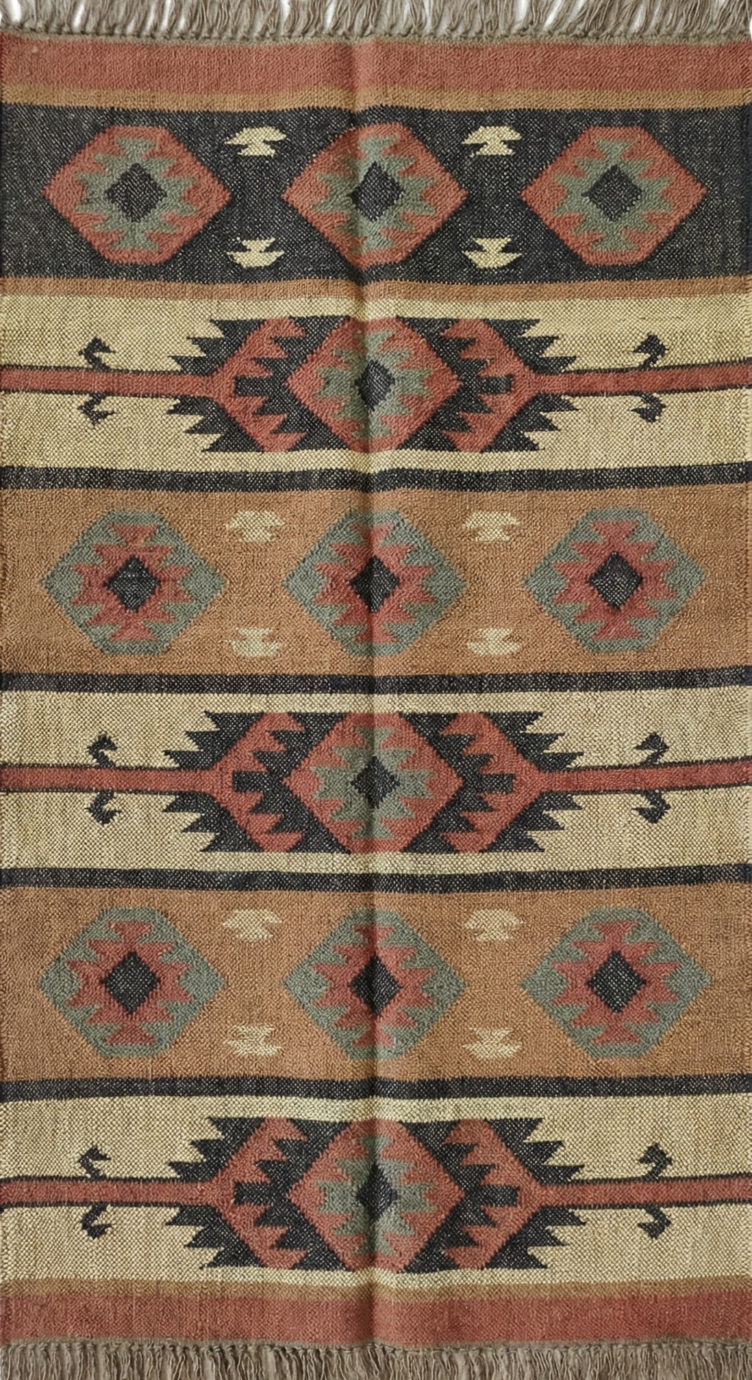 The Navajo carpets from Vimla International are designed to be versatile, making them suitable for various settings. Whether you’re looking to bring warmth to your living room, create a snug ambiance in your bedroom, or infuse elegance into your hallway, this rug is the perfect choice. fits seamlessly into any decor style. Its natural jute fibers and earthy tones allow it to complement rustic, bohemian, or contemporary interiors effortlessly.