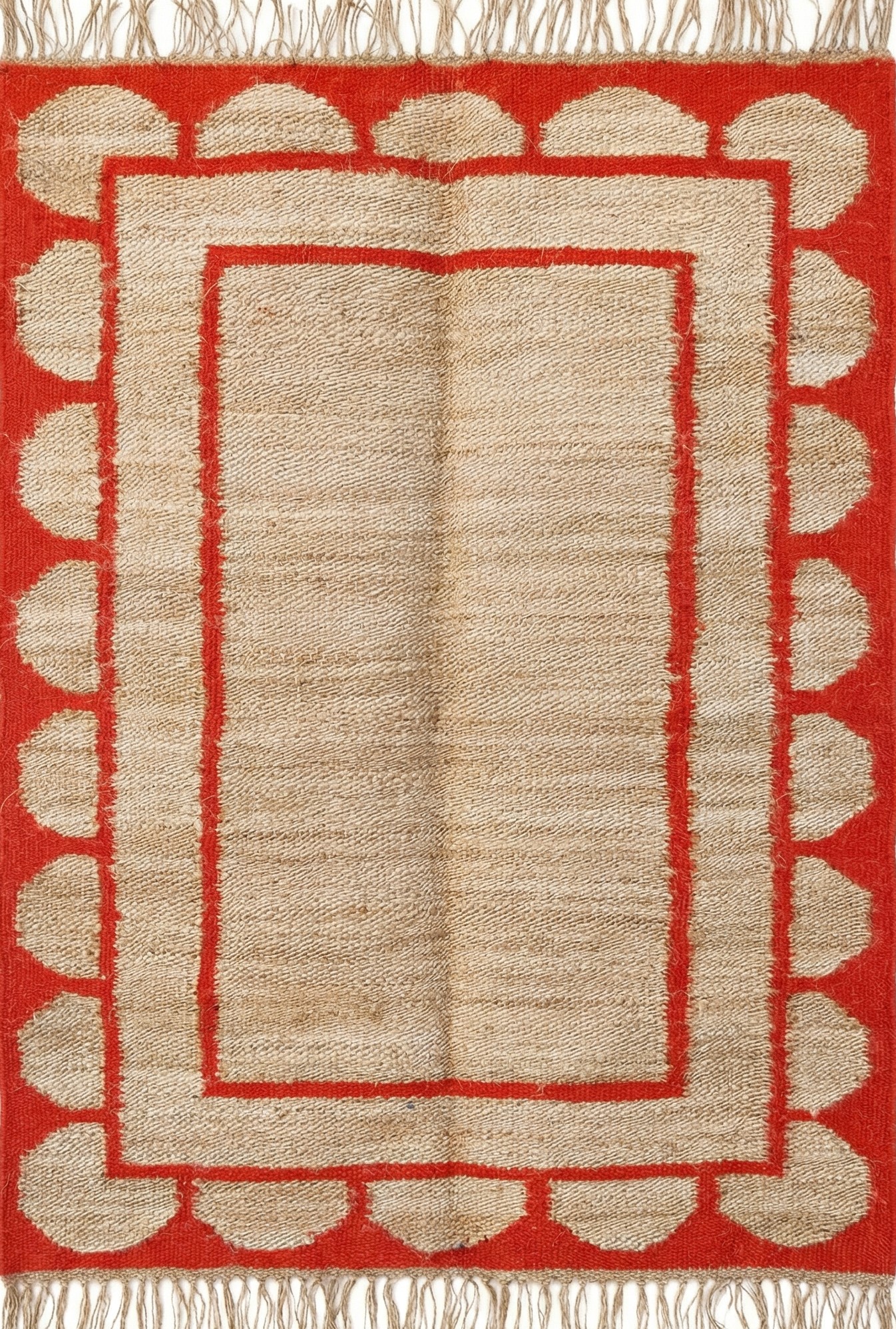 Red And Natural Jute Scollap Rug