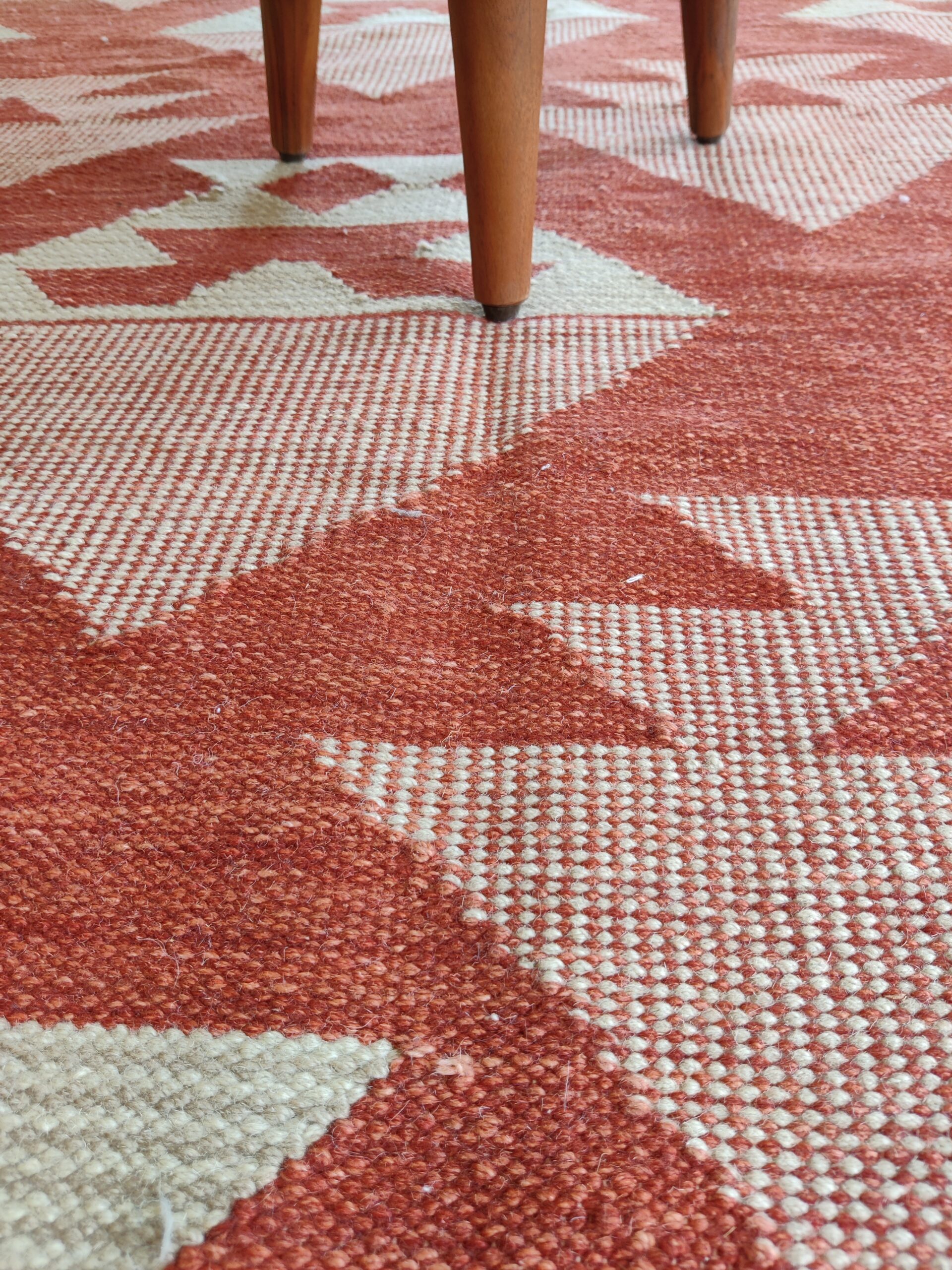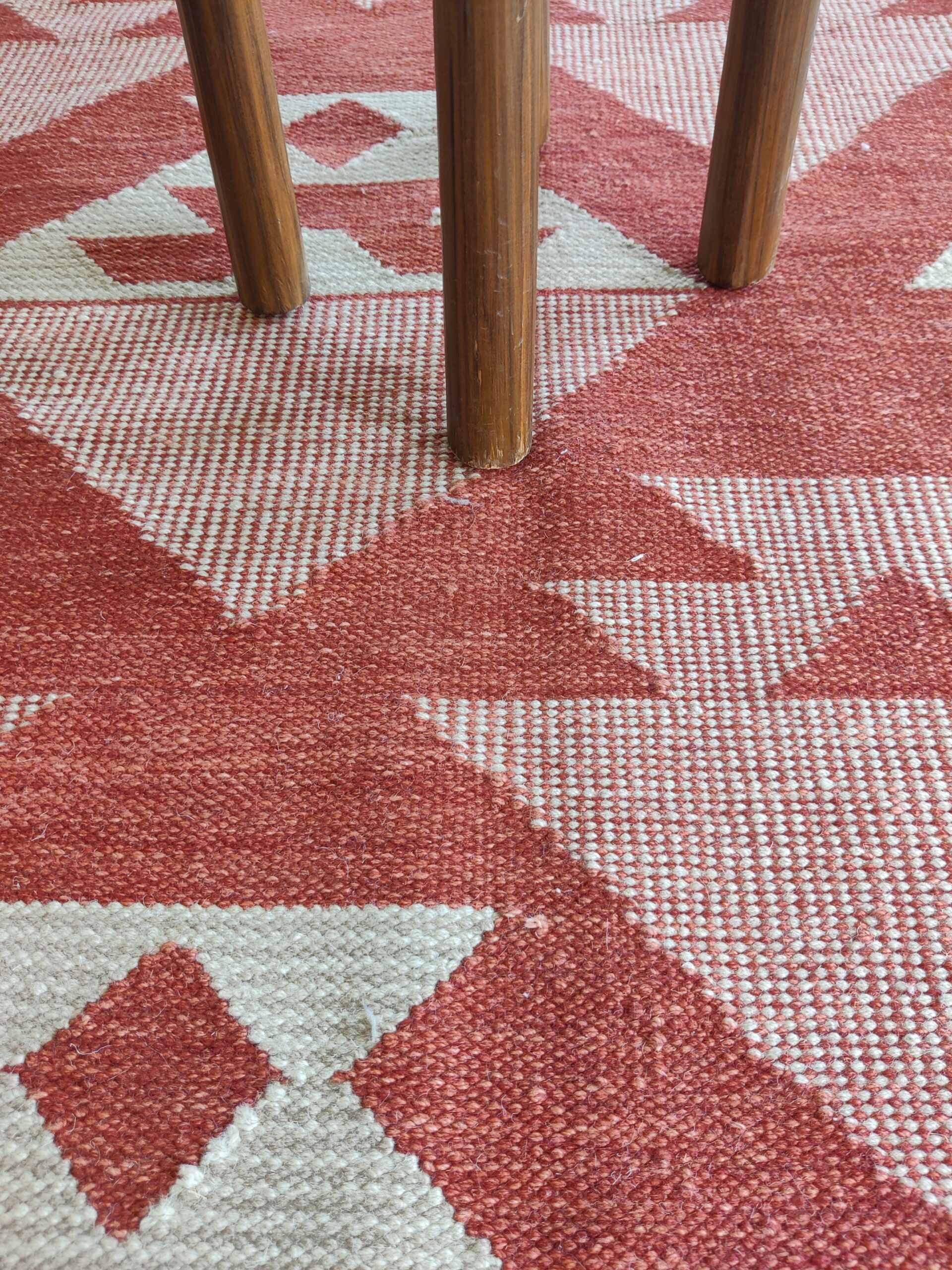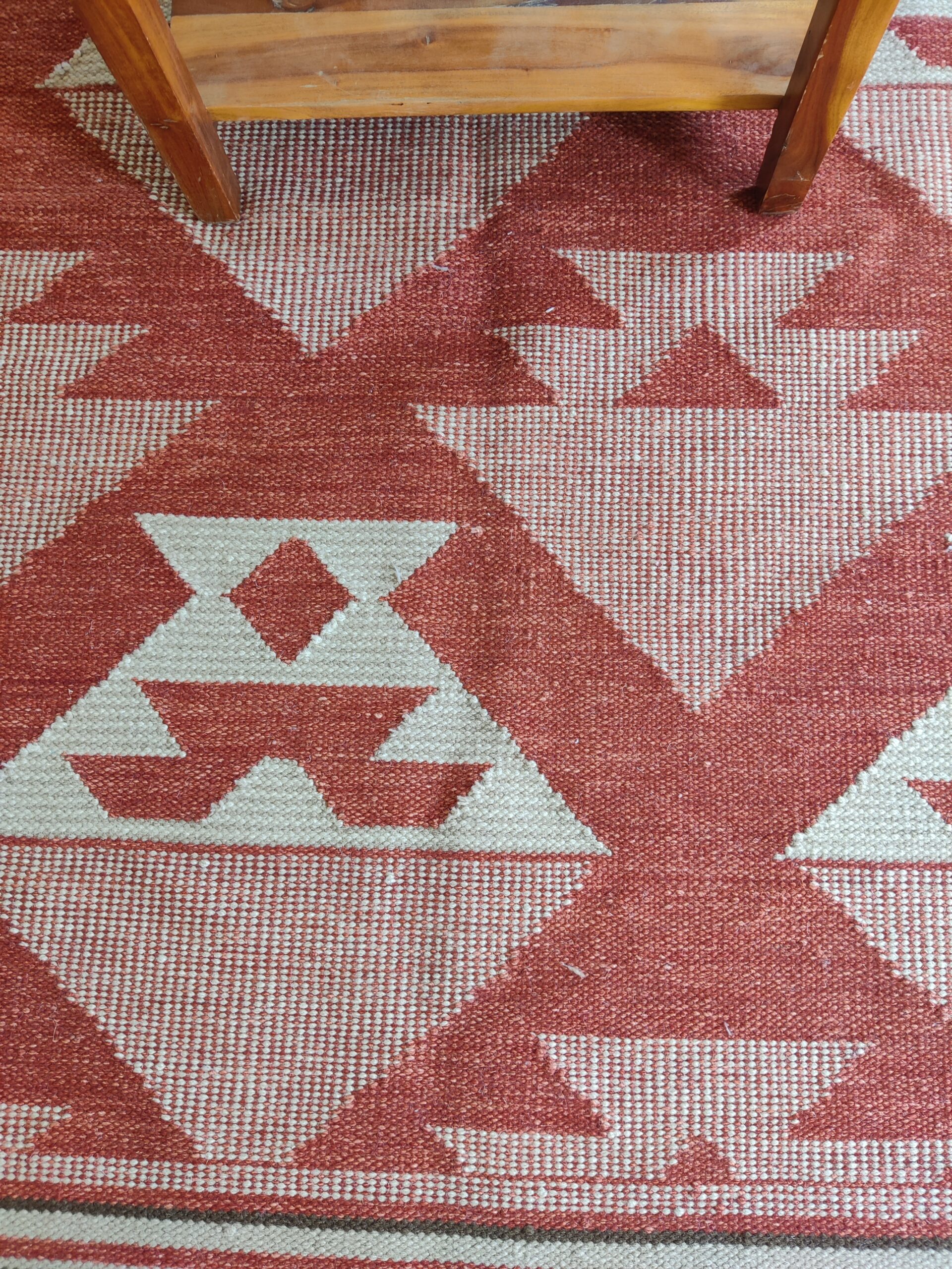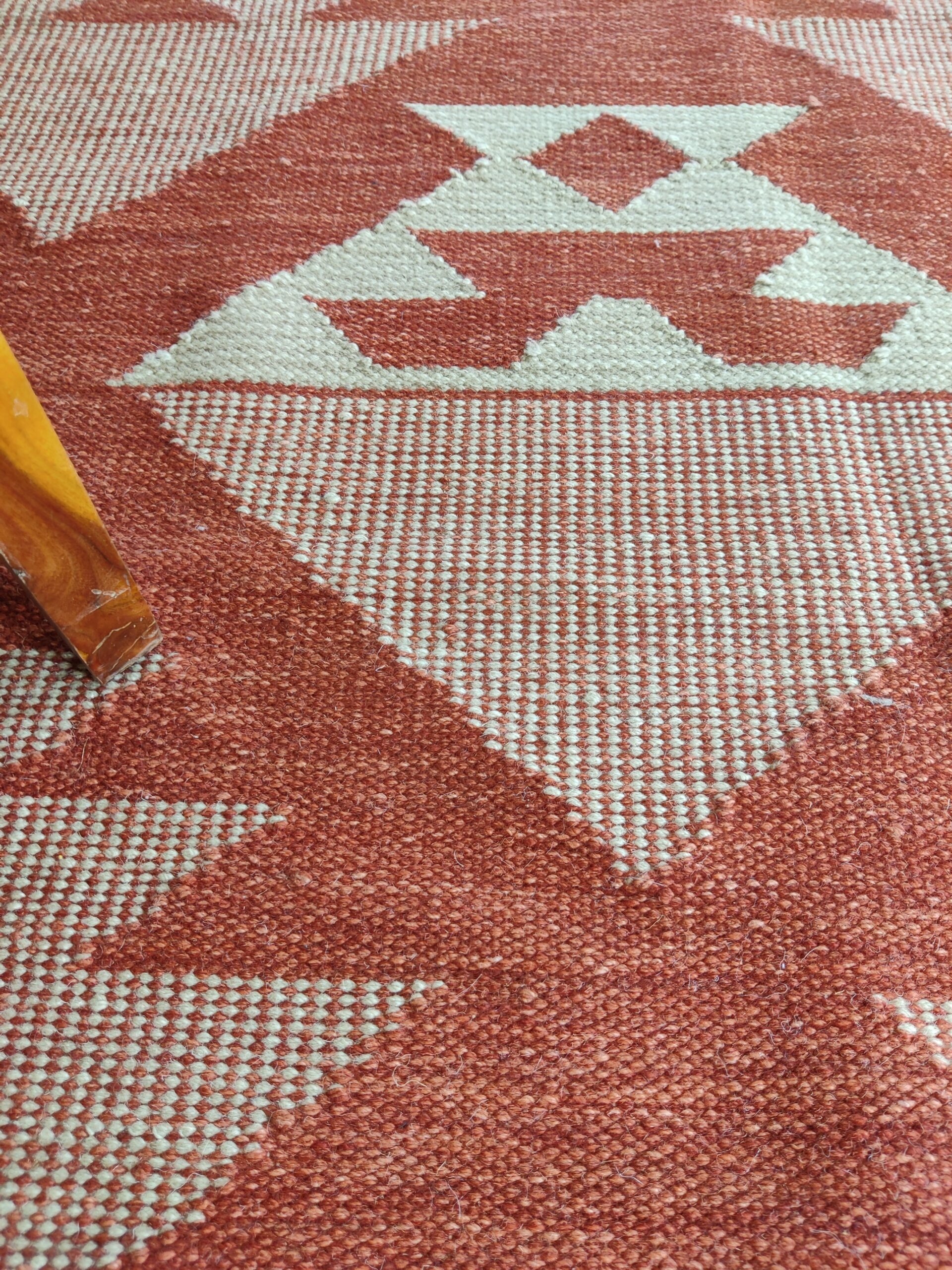 Transform your living space with our exquisite handmade wool cotton rug. This stunning piece is not just a functional addition to your home, but a statement of elegance and craftsmanship.
