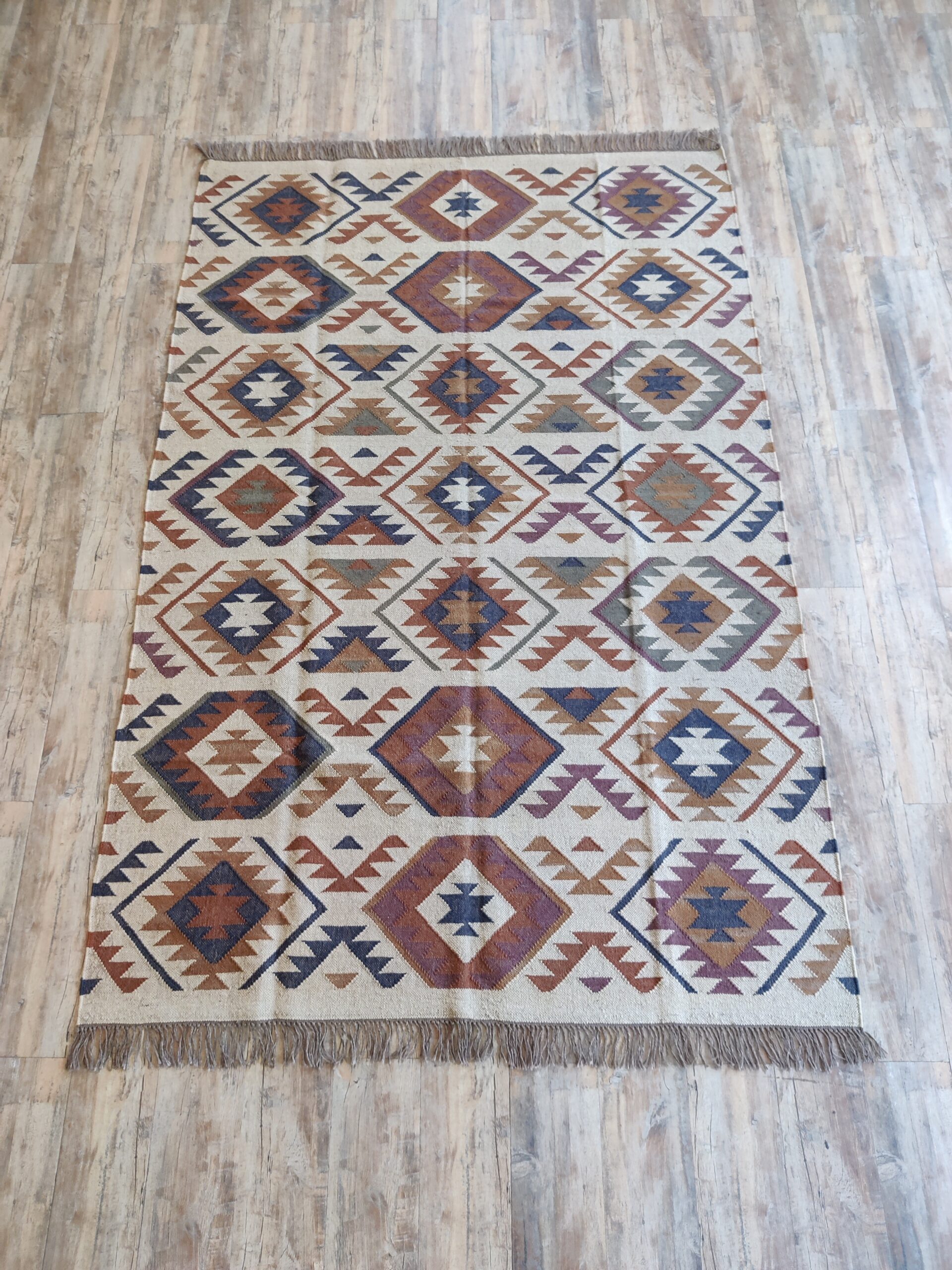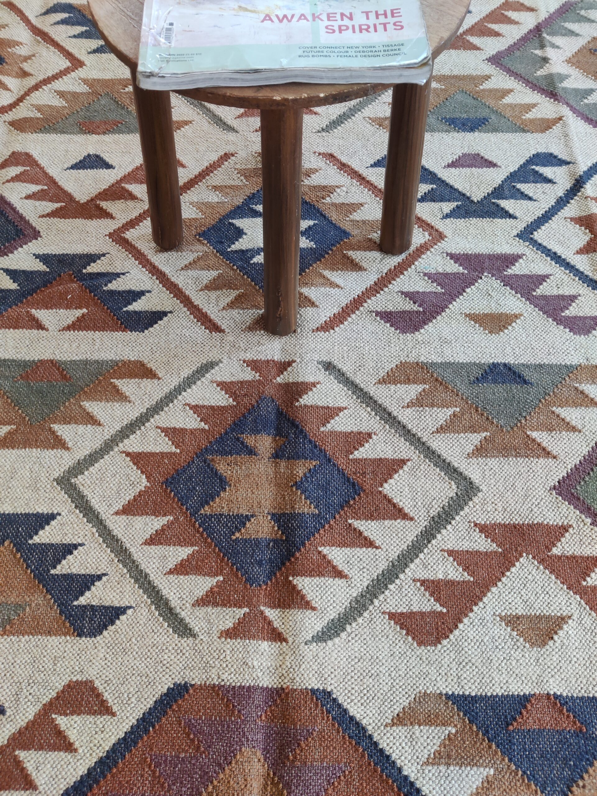 Vintage Colourful Designer Wool Jute Rug, Home Decor And Living Room, Bedroom Rug