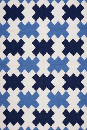 White And Blue Wool Jute Rug, Home Decor Diamond Jute Kilim Rug, Reversible Custom Size Rug