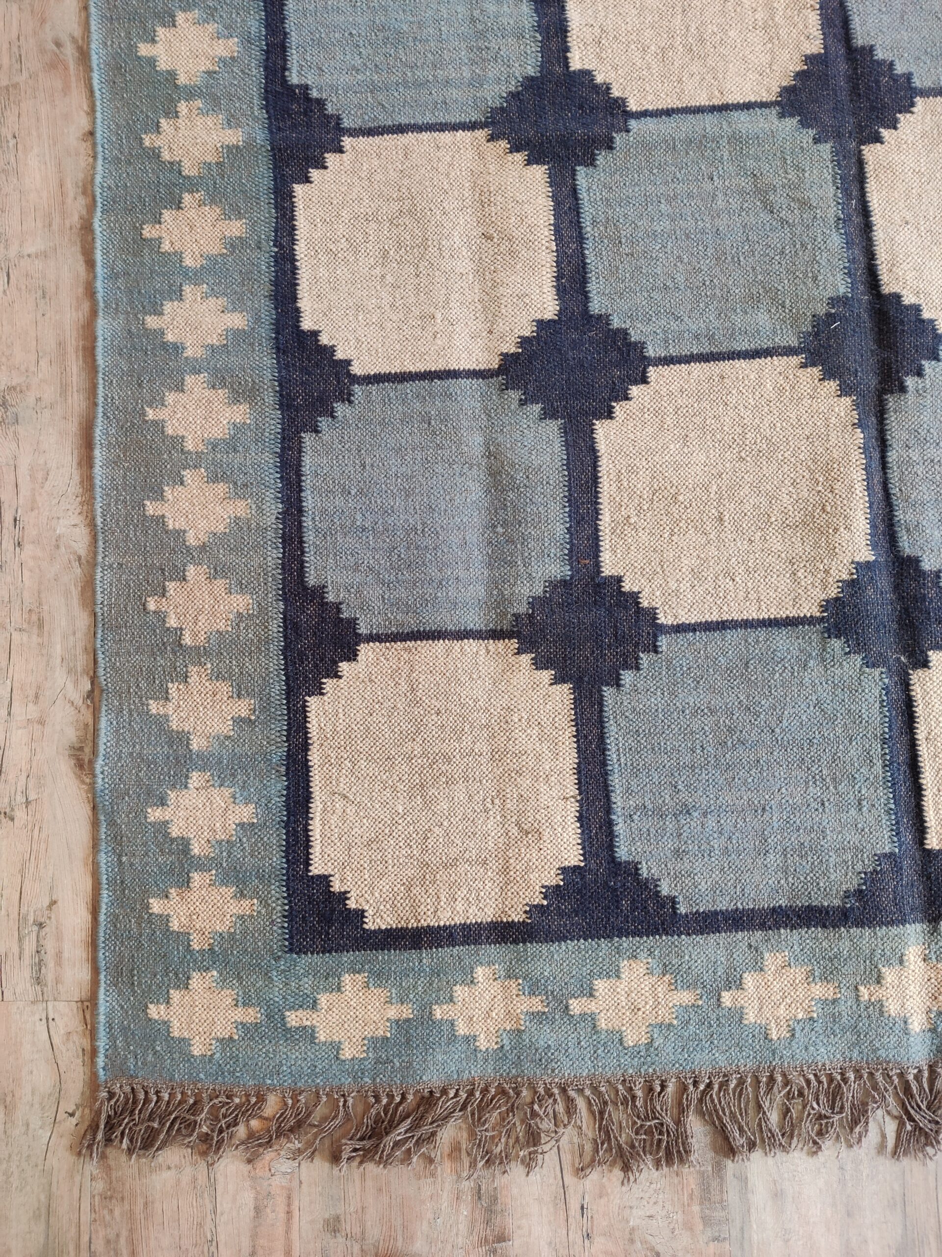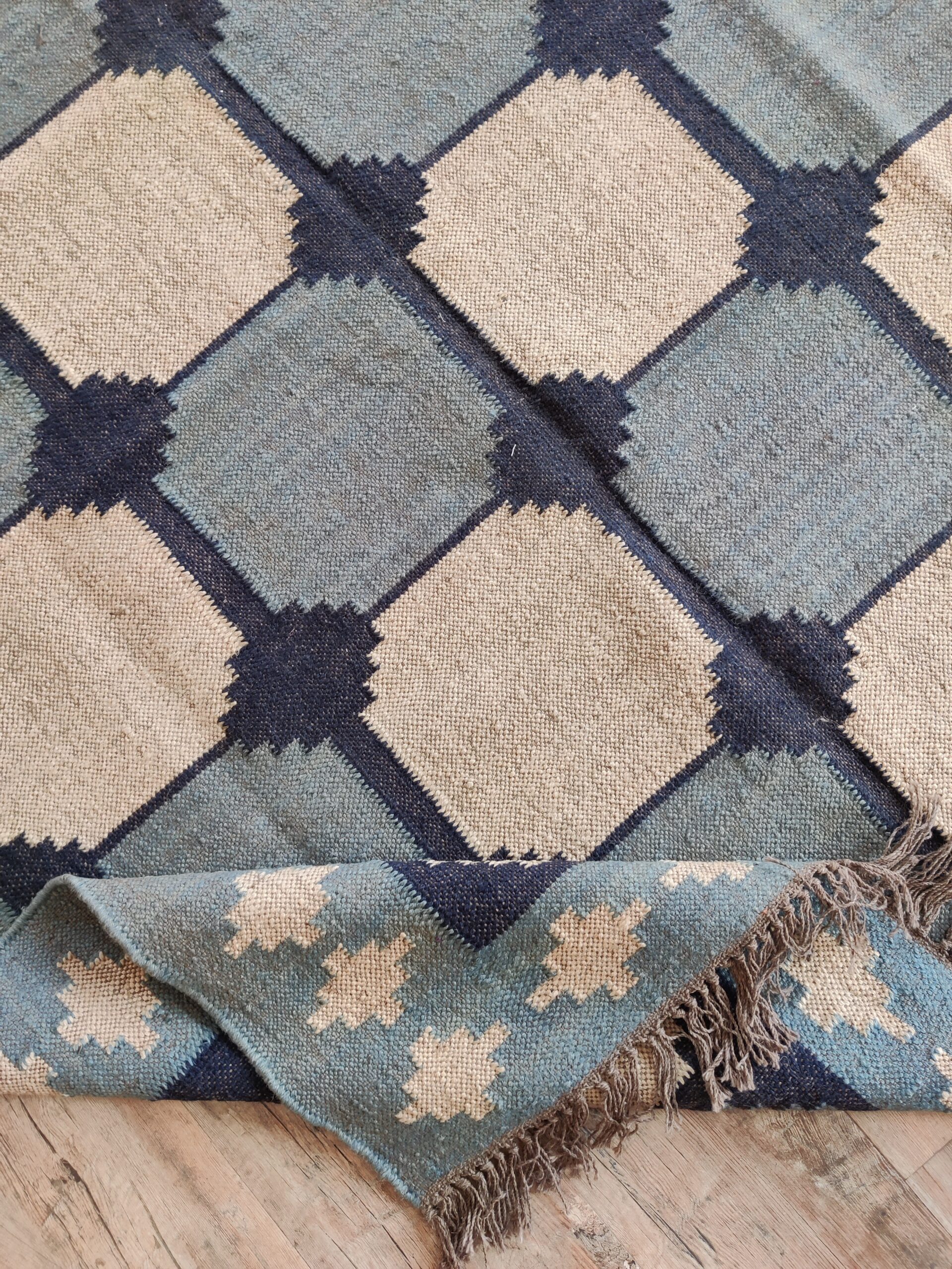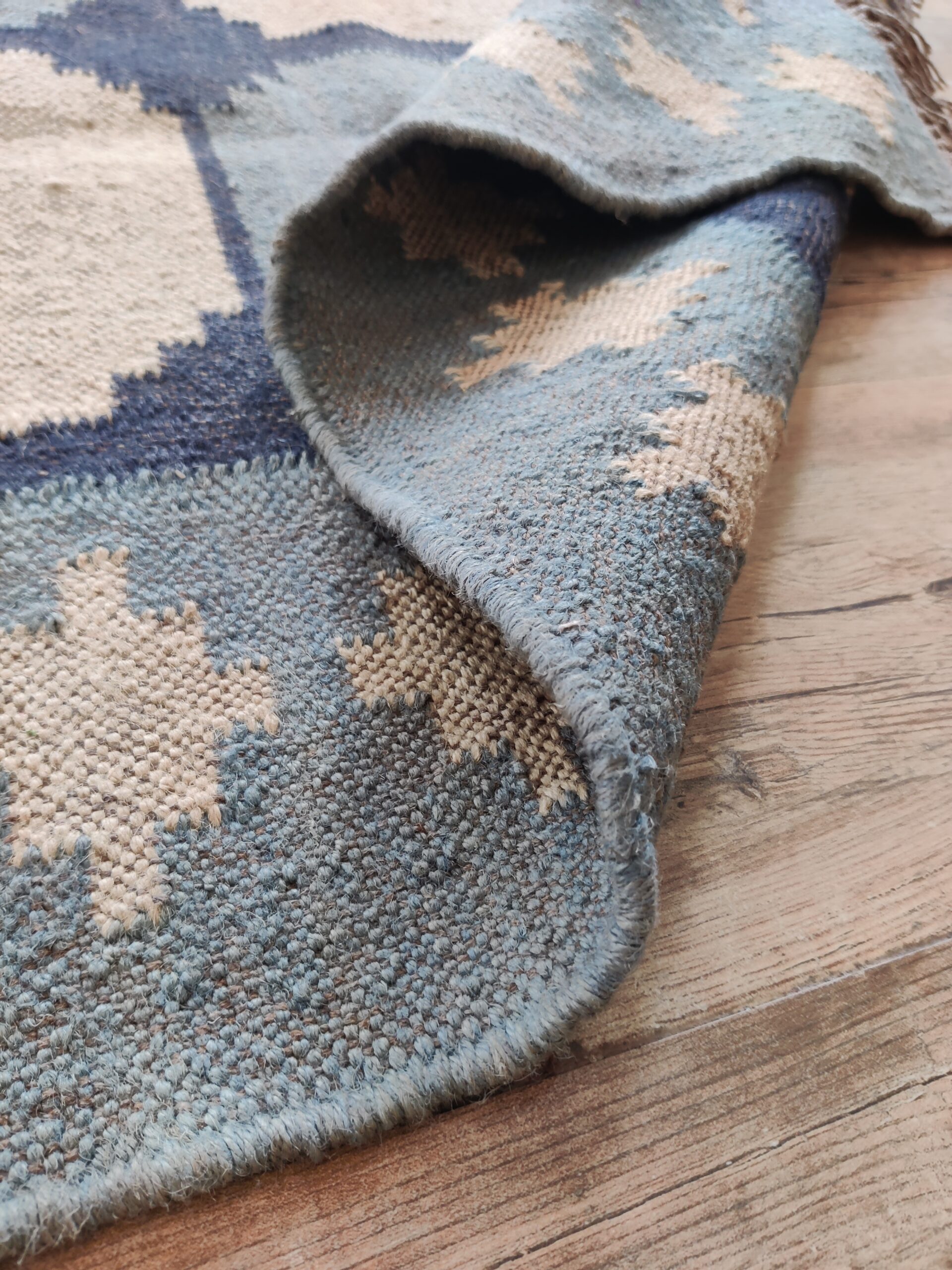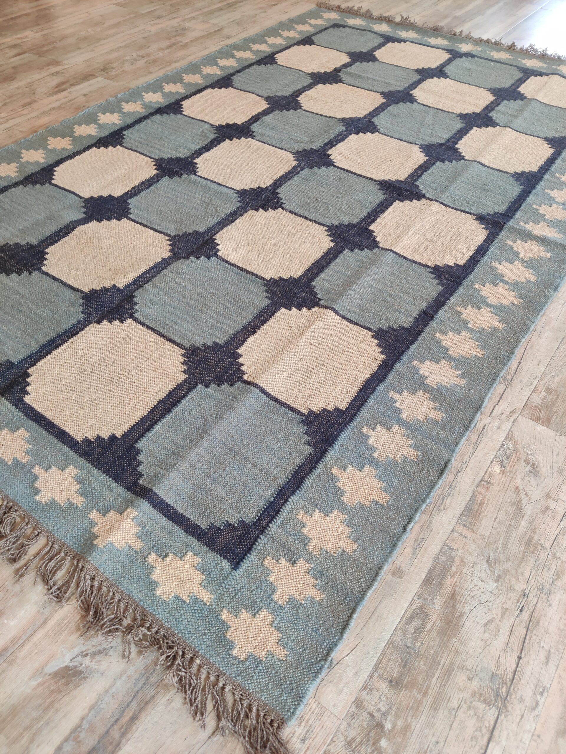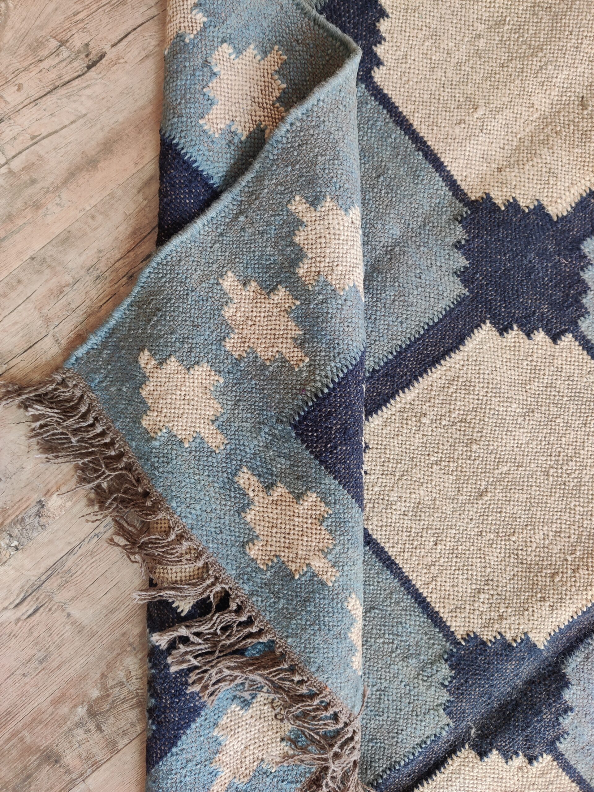 Crafted by experienced artisans, this natural handwoven jute rug is made with wool and jute. This rug is woven by hand on a traditional wooden loom. Made from hand-dyed, pure, sustainable jute and natural wool. This rug is reversible, with the same design on both sides. Wool: 30% Jute: 70%