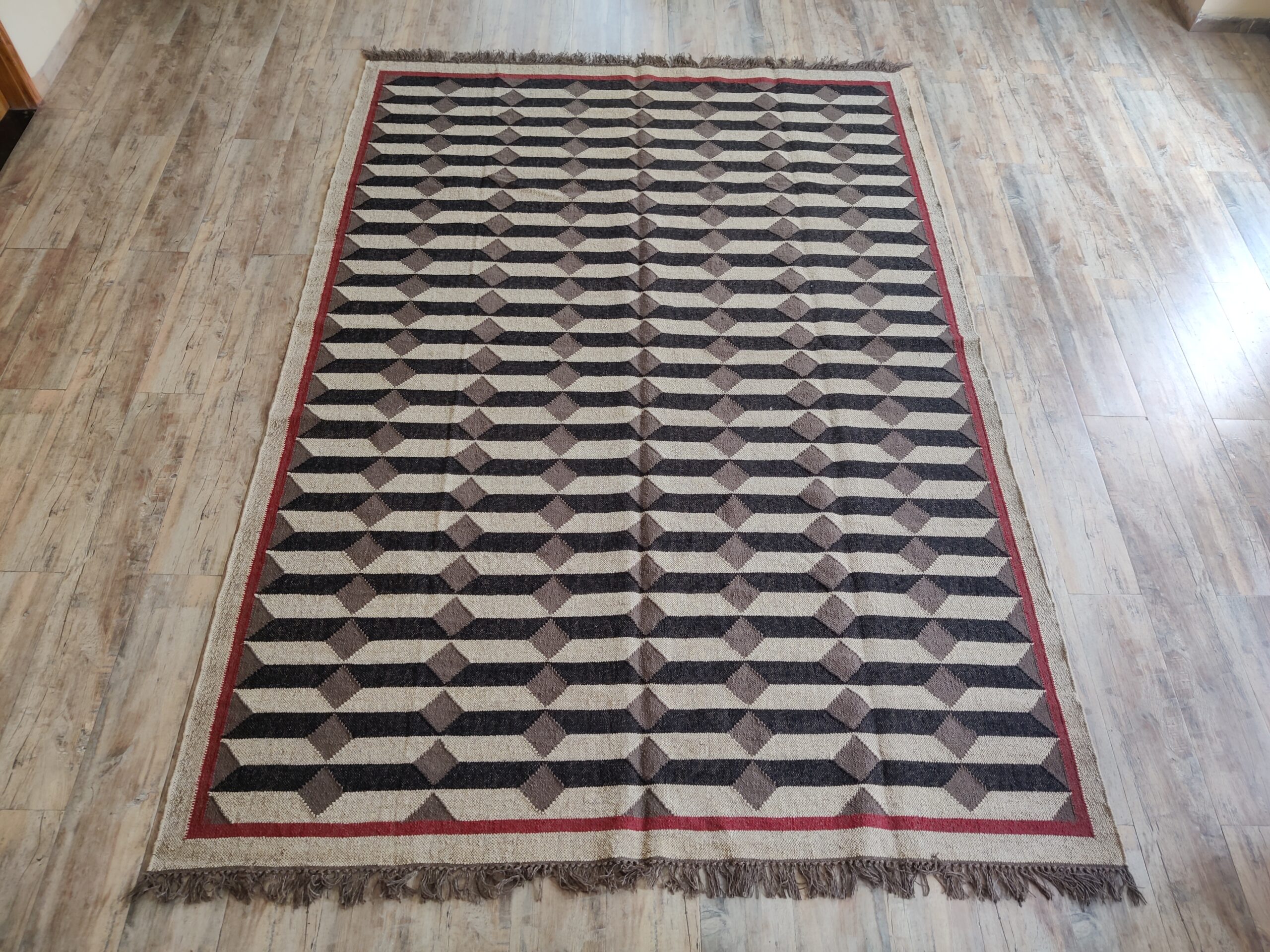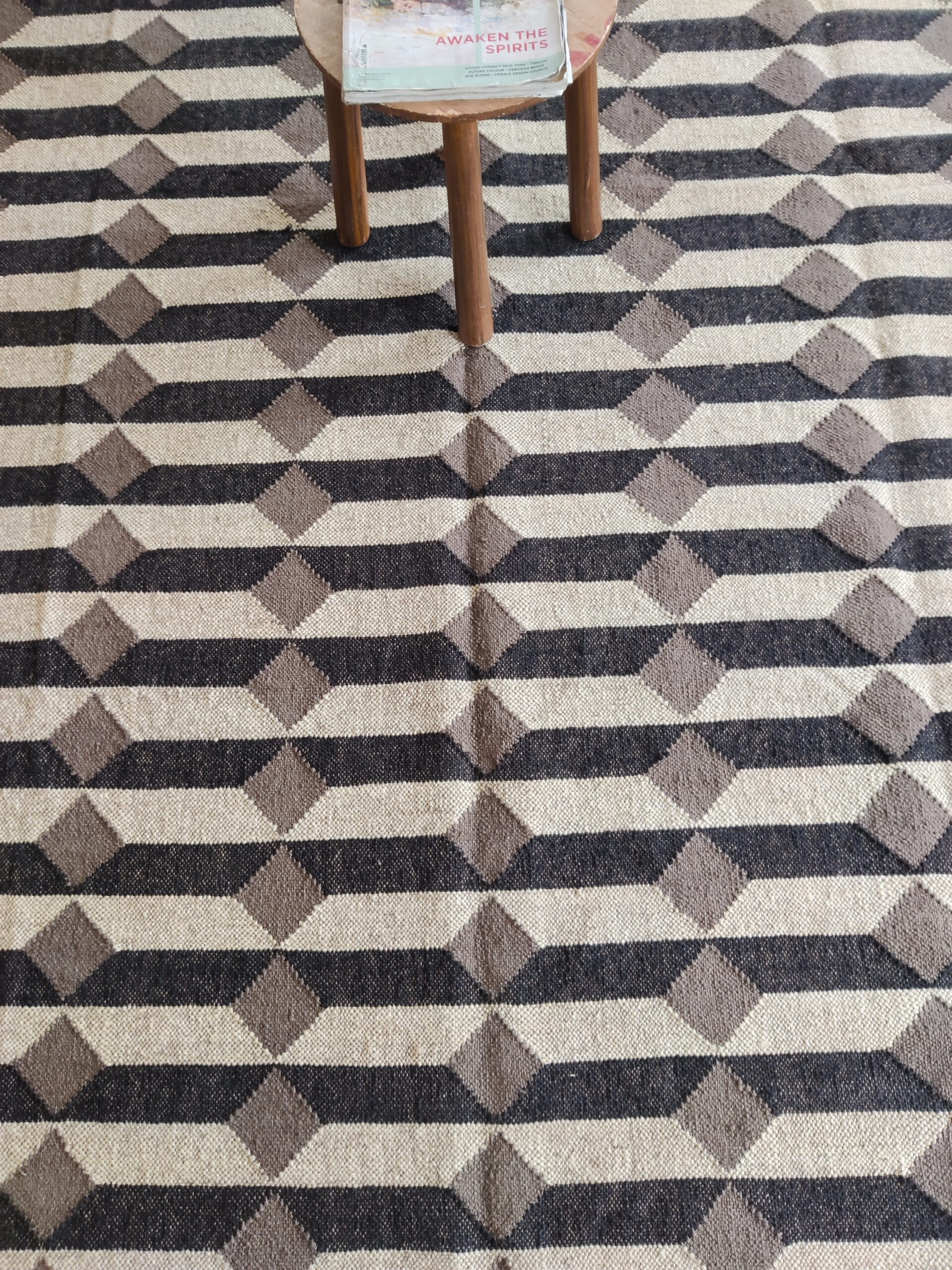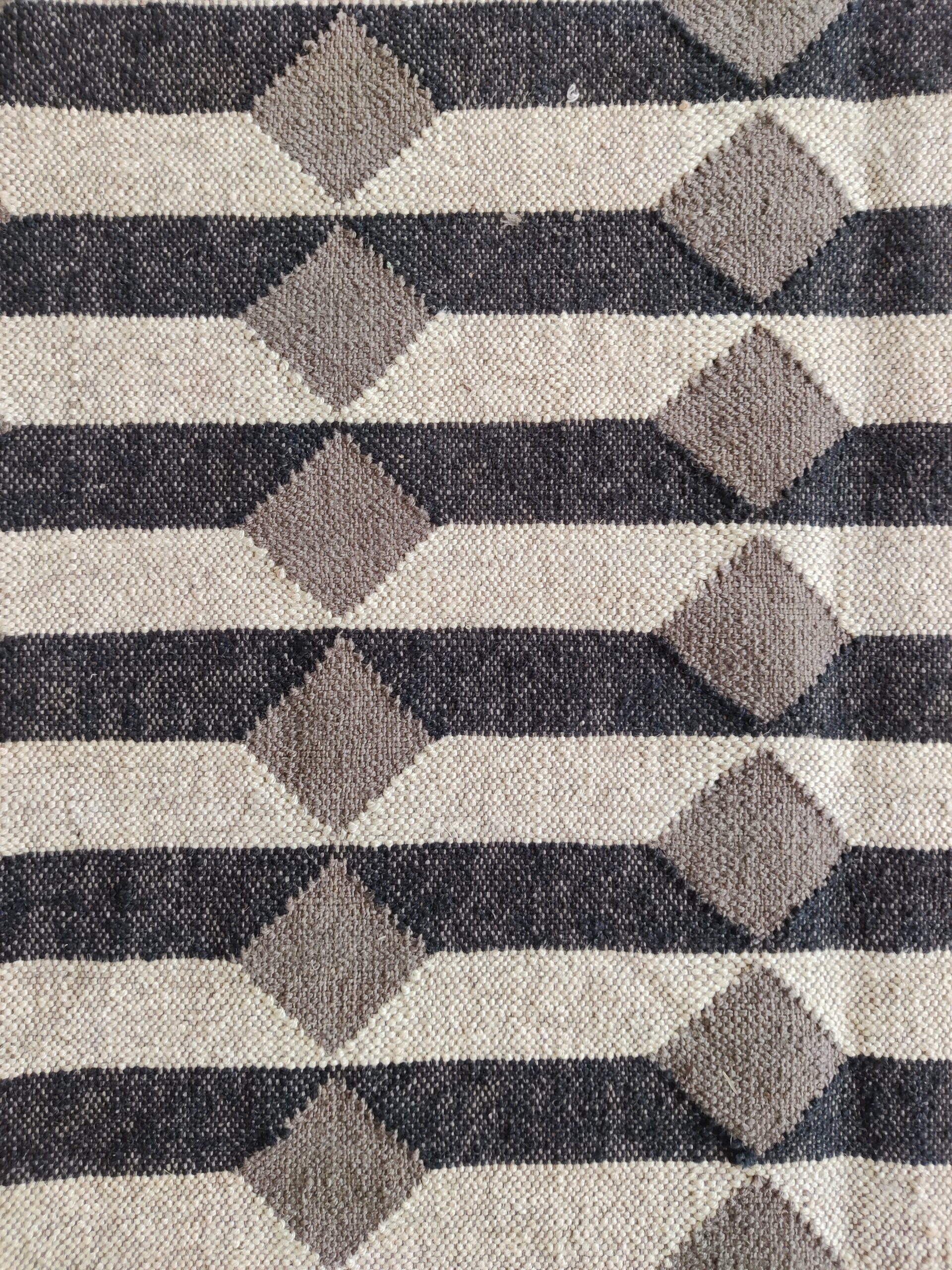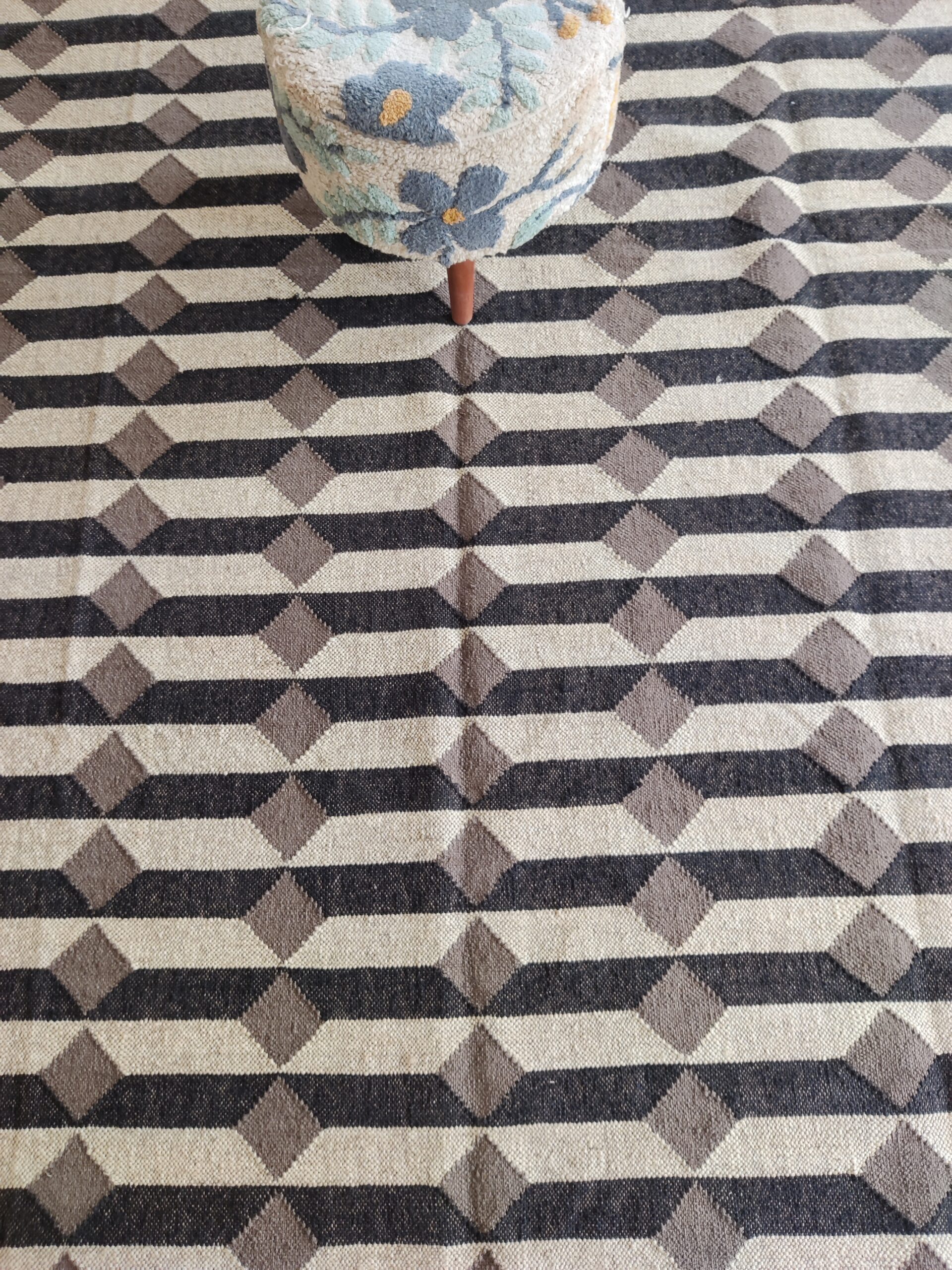 Wool Jute 3D Pattern Rug, Beige And Black Bedroom, Living Room Rug, Custom Size Rug