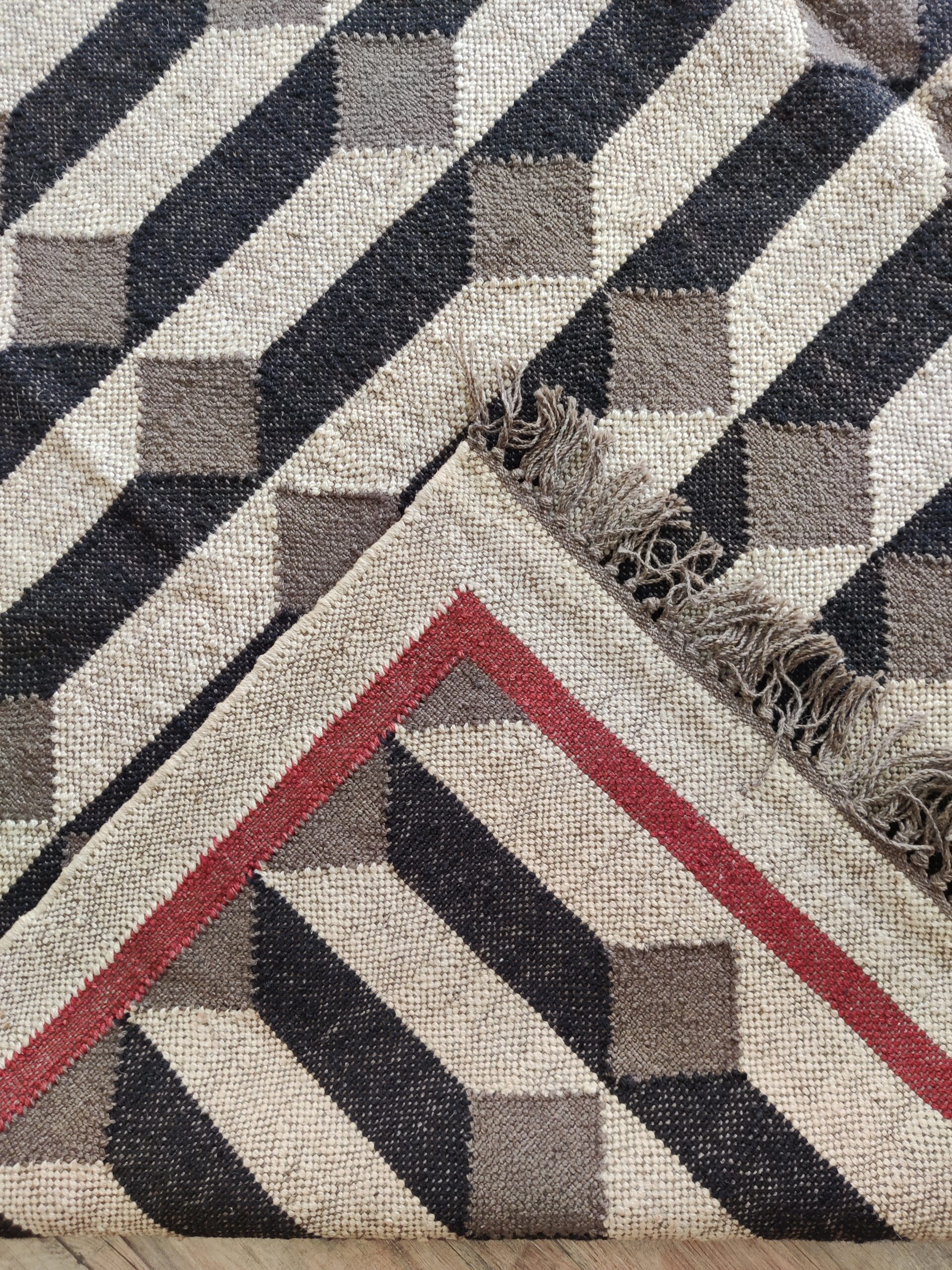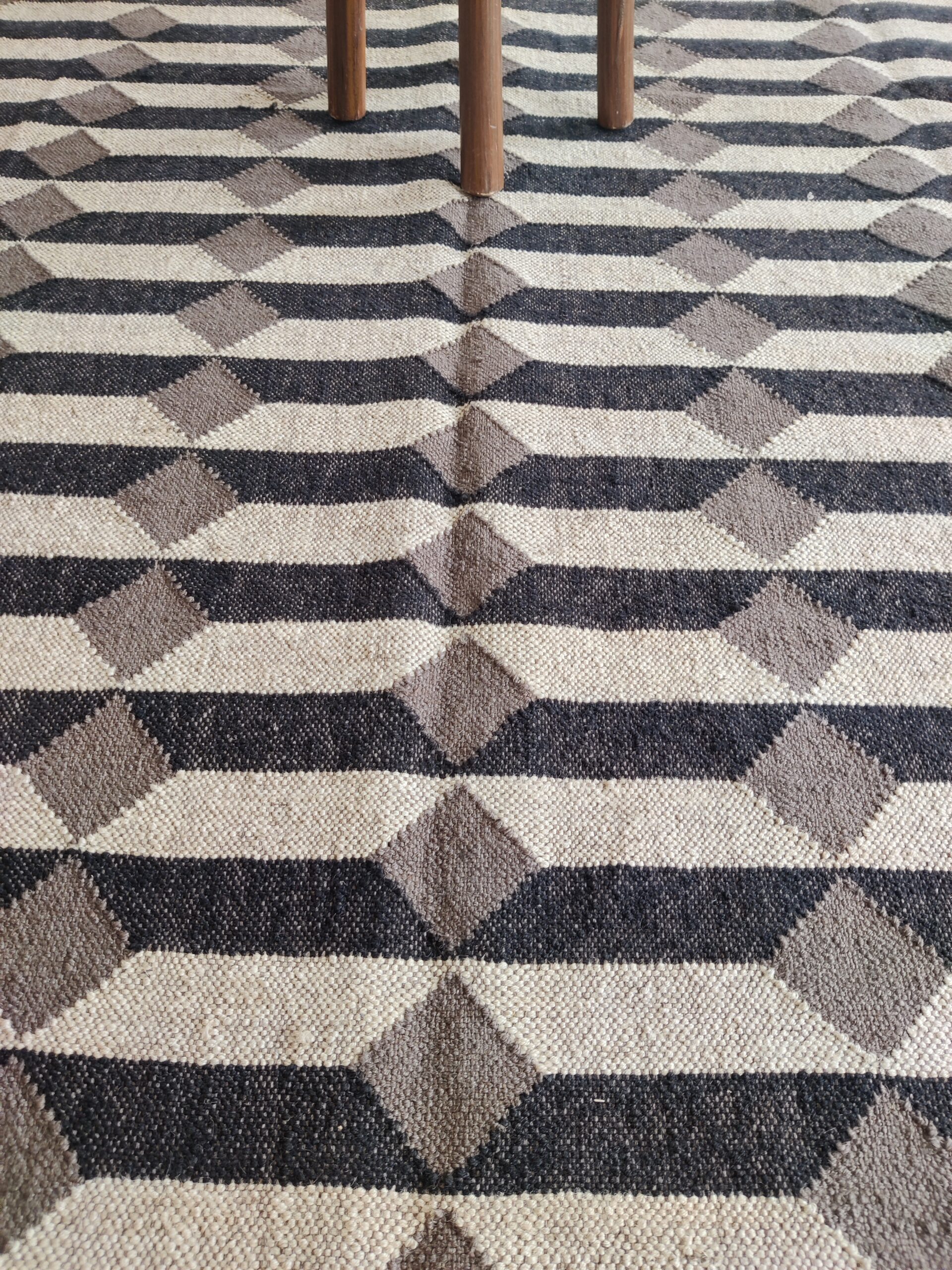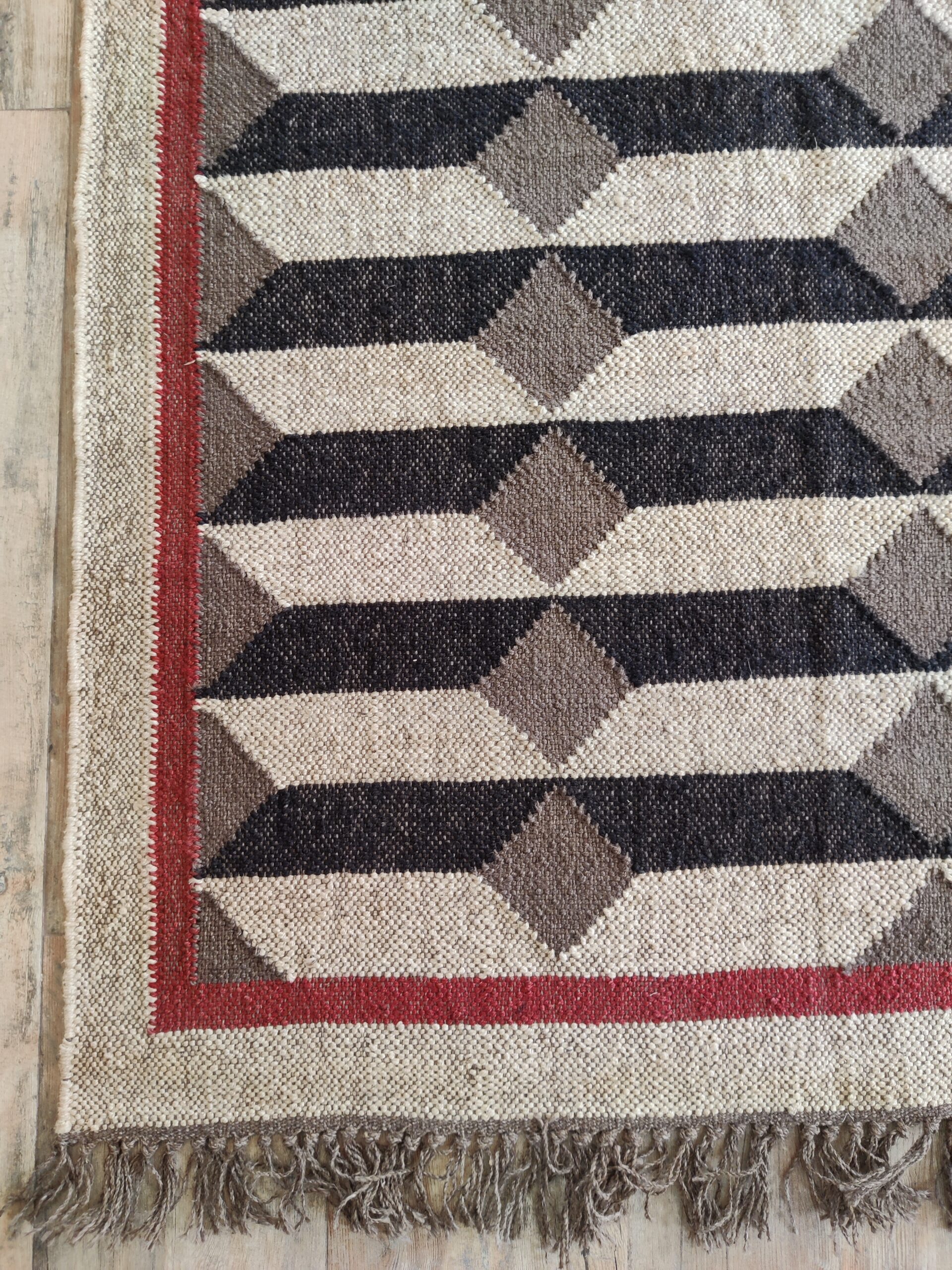 Wool Jute 3D Pattern Rug, Beige And Black Bedroom, Living Room Rug, Custom Size Rug