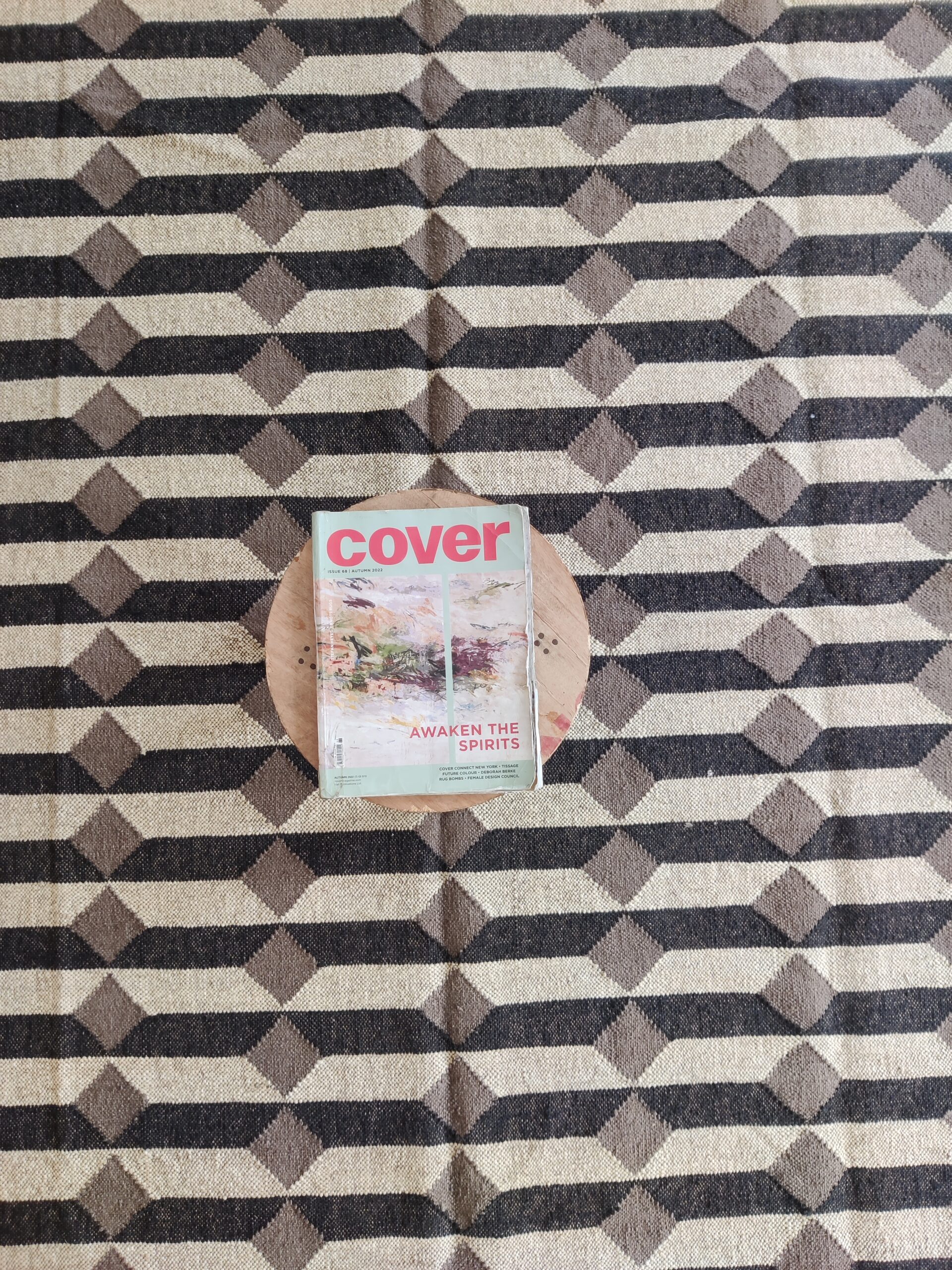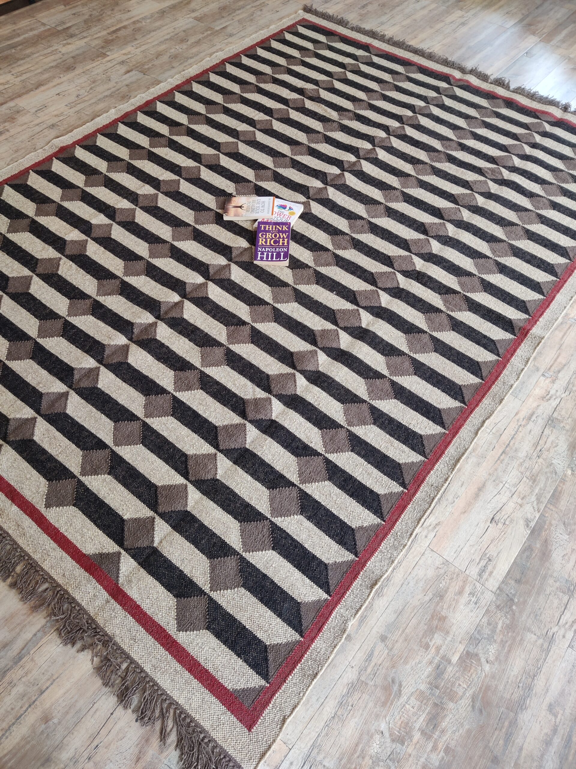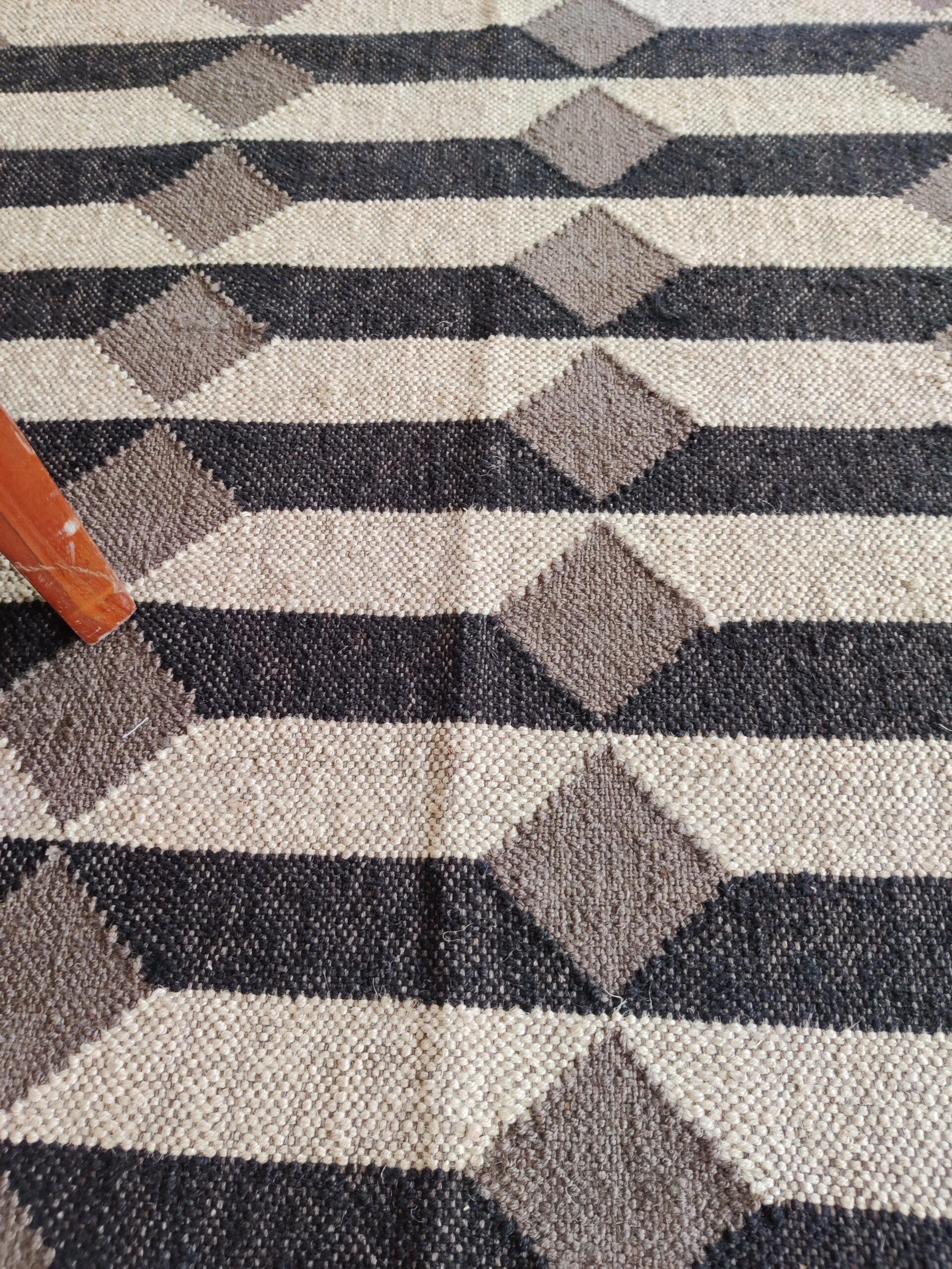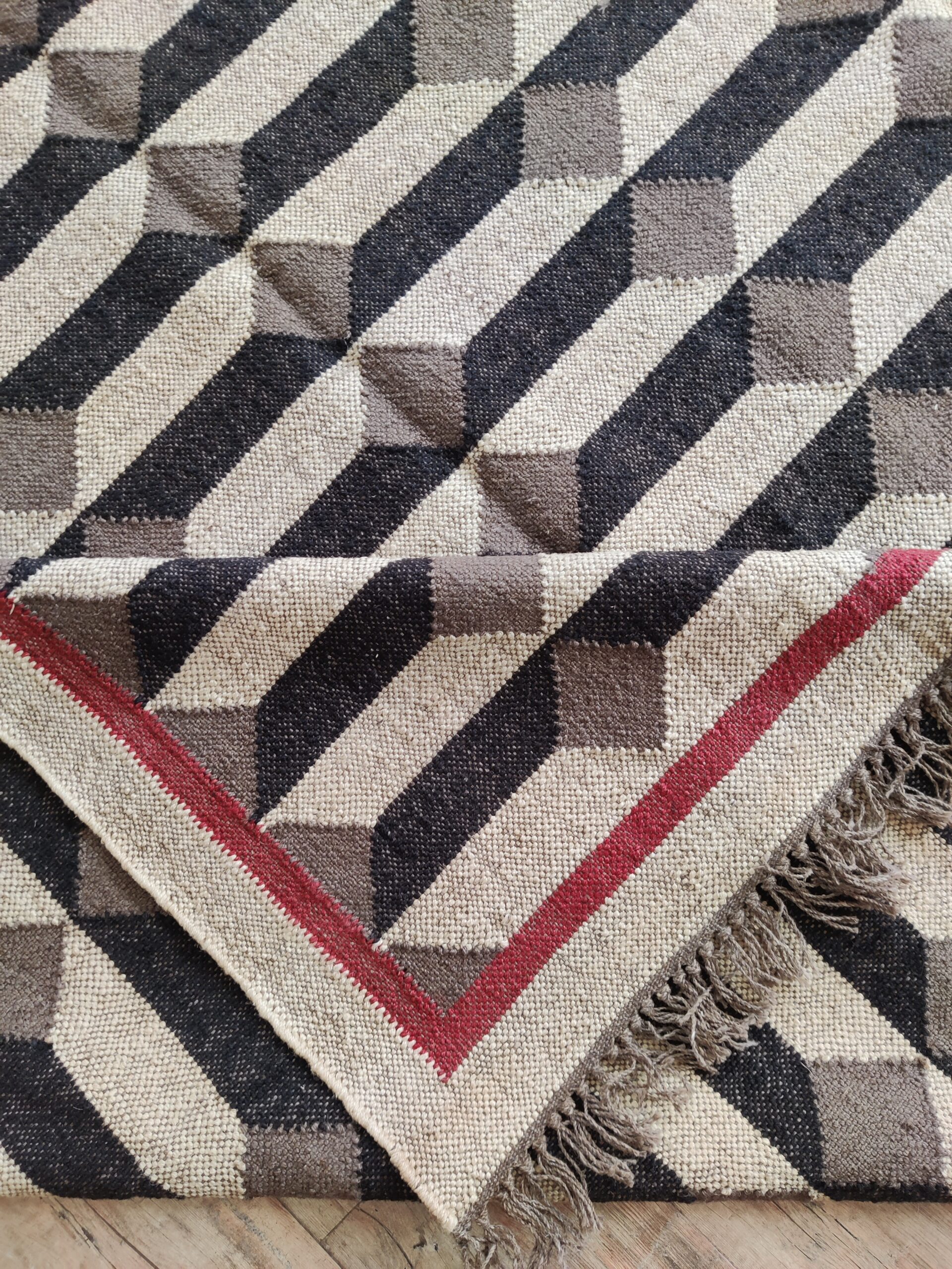 Wool Jute 3D Pattern Rug, Beige And Black Bedroom, Living Room Rug, Custom Size Rug