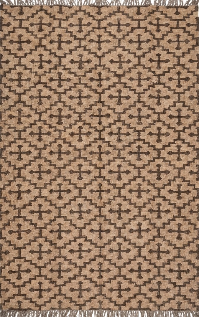The Geometric design of a rust-color weaves its way seamlessly into any space from coastal dining to urban sleeping. Jute kilim dhurrie construction.