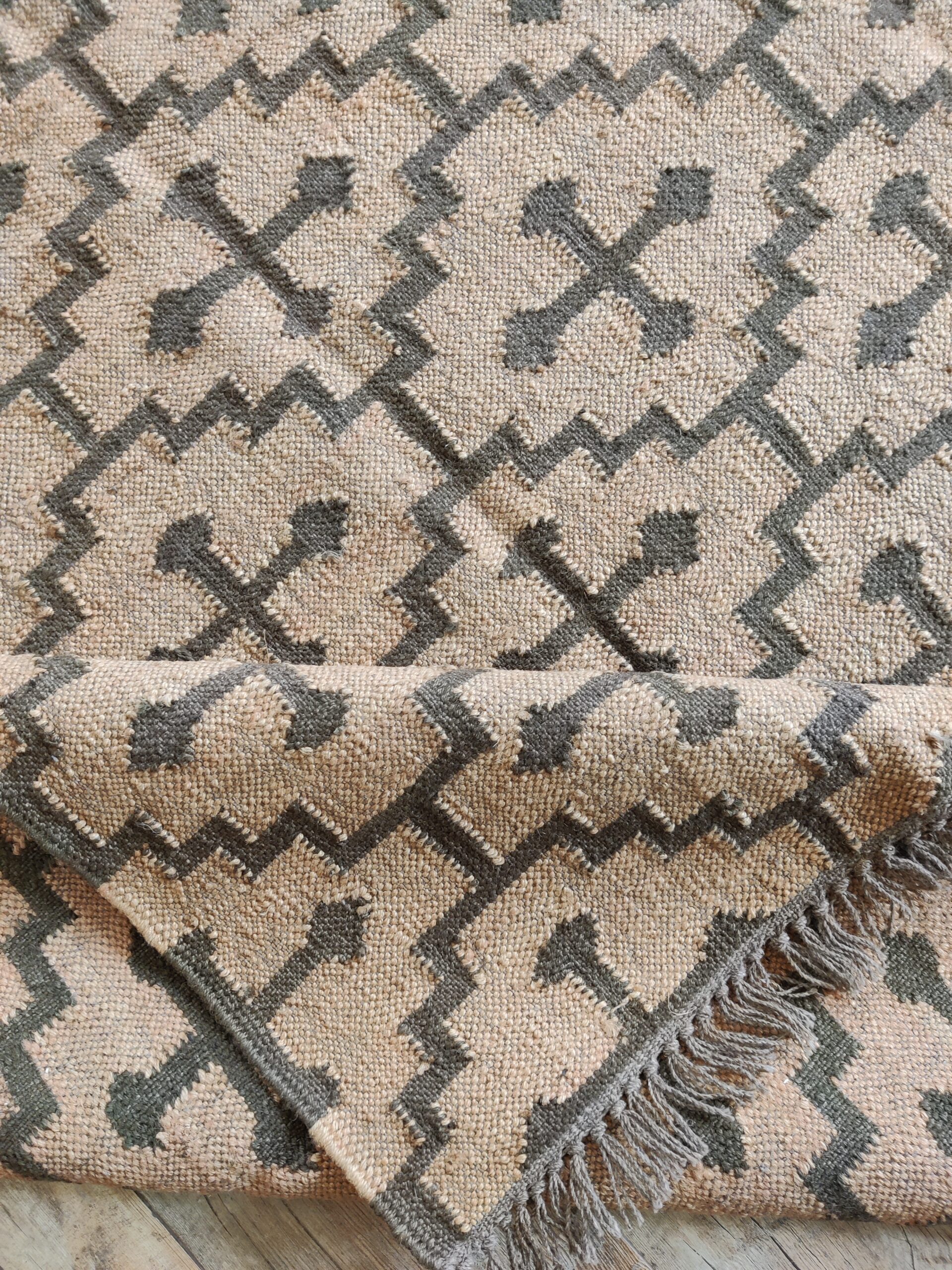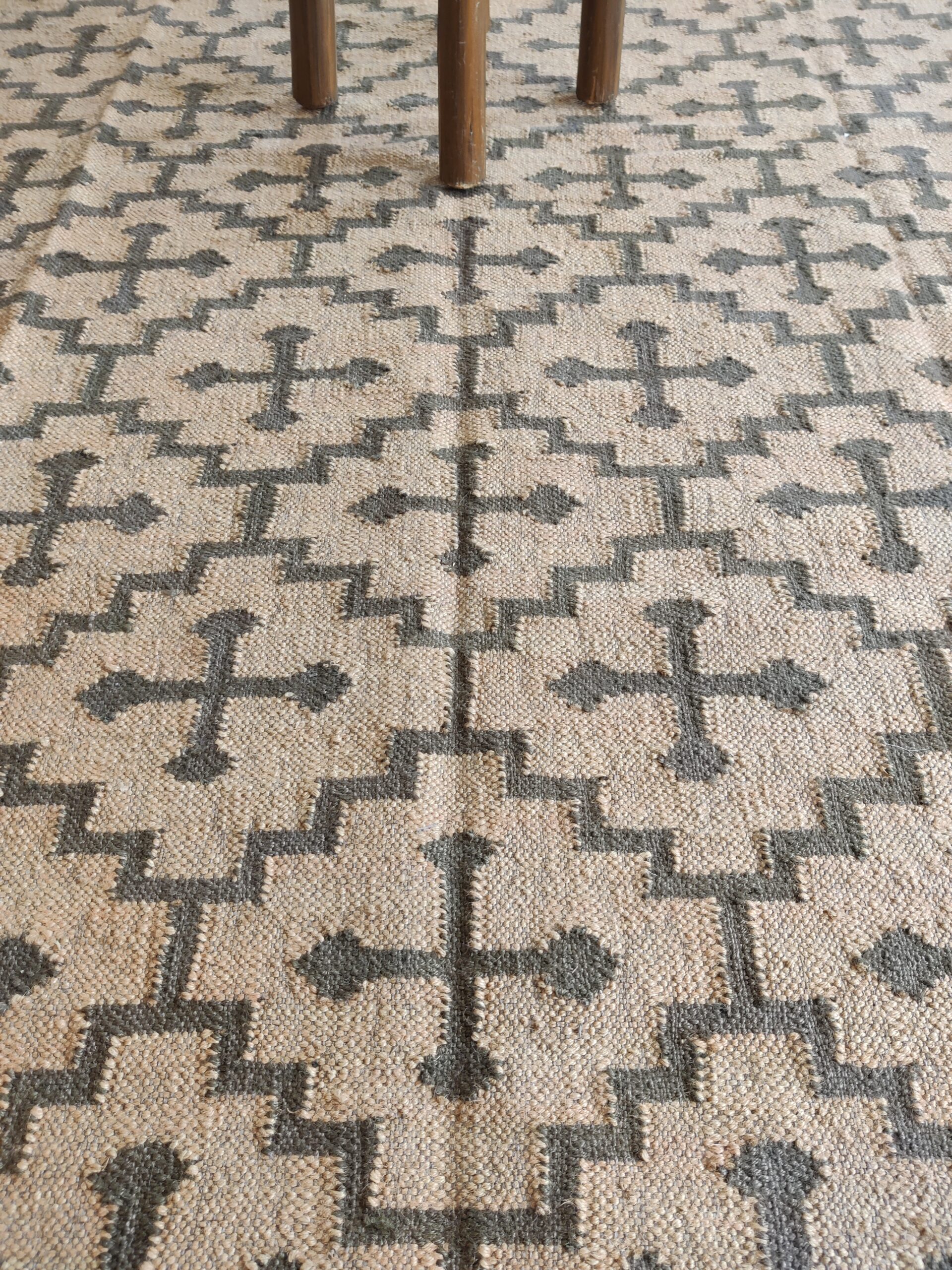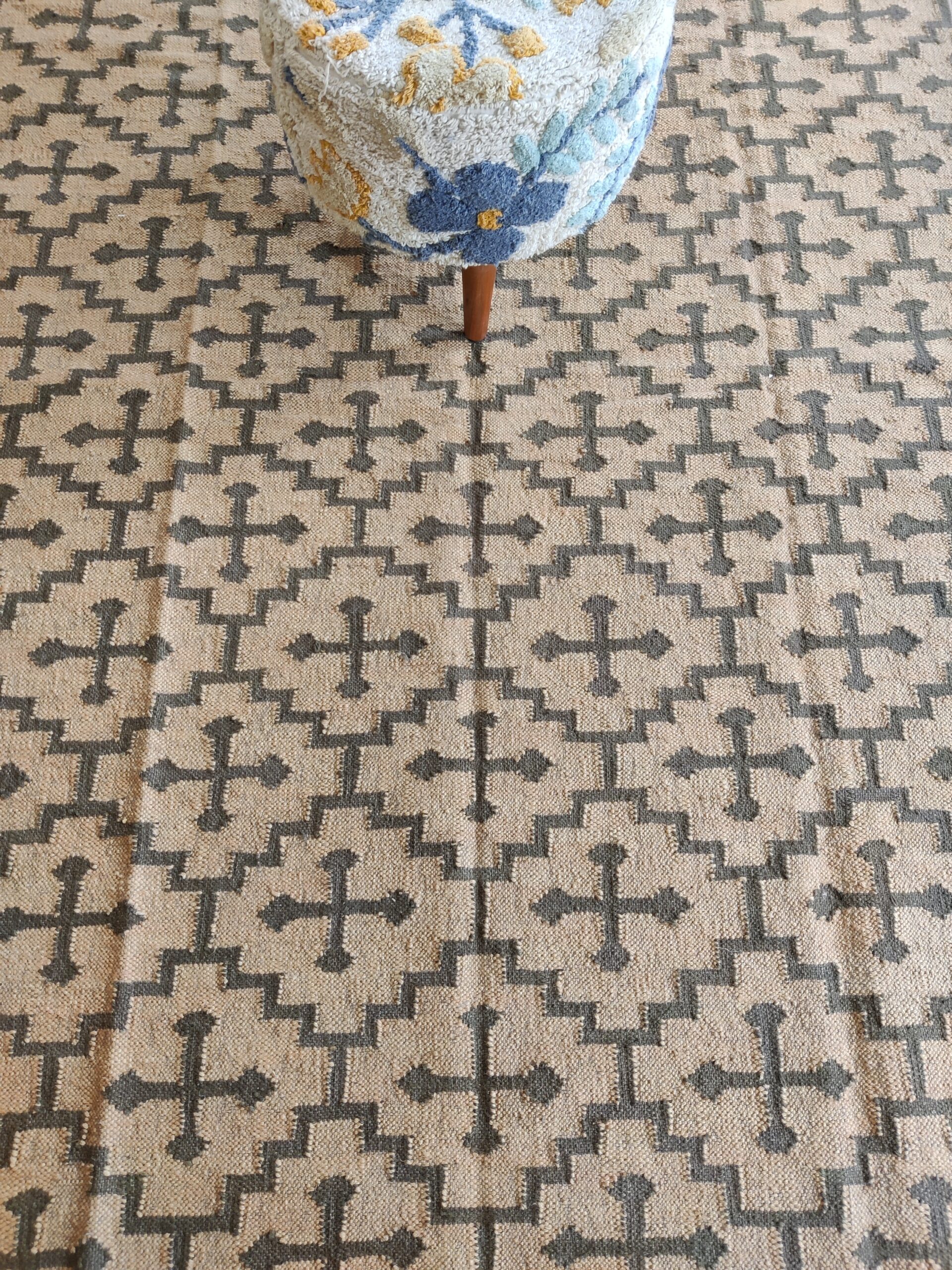 Crafted by experienced artisans, this natural handwoven jute rug is made with wool and jute. This rug is woven by hand on a traditional wooden loom. Made from hand-dyed, pure, sustainable jute and natural wool. This rug is reversible, with the same design on both sides. Wool: 30% Jute: 70%