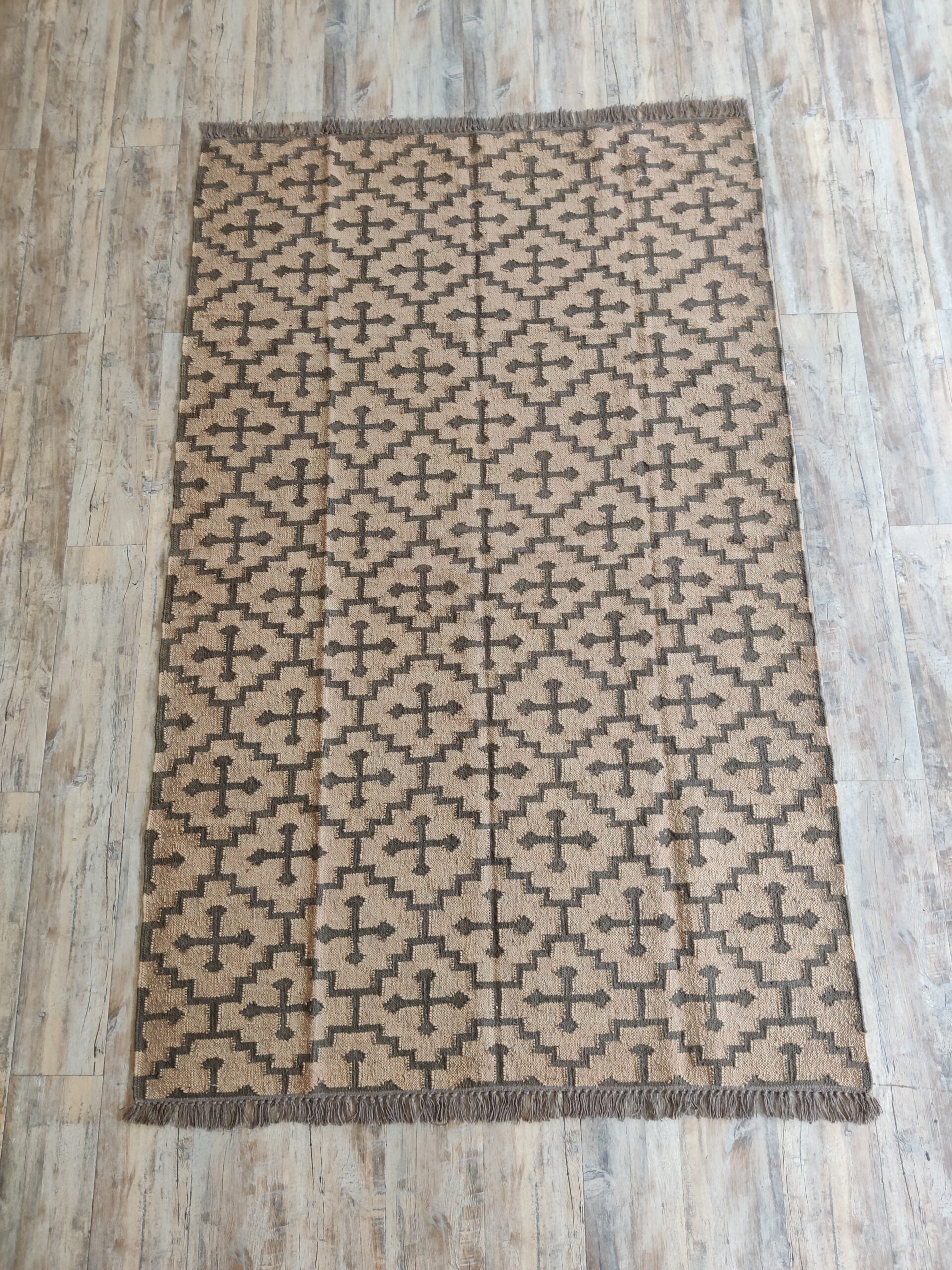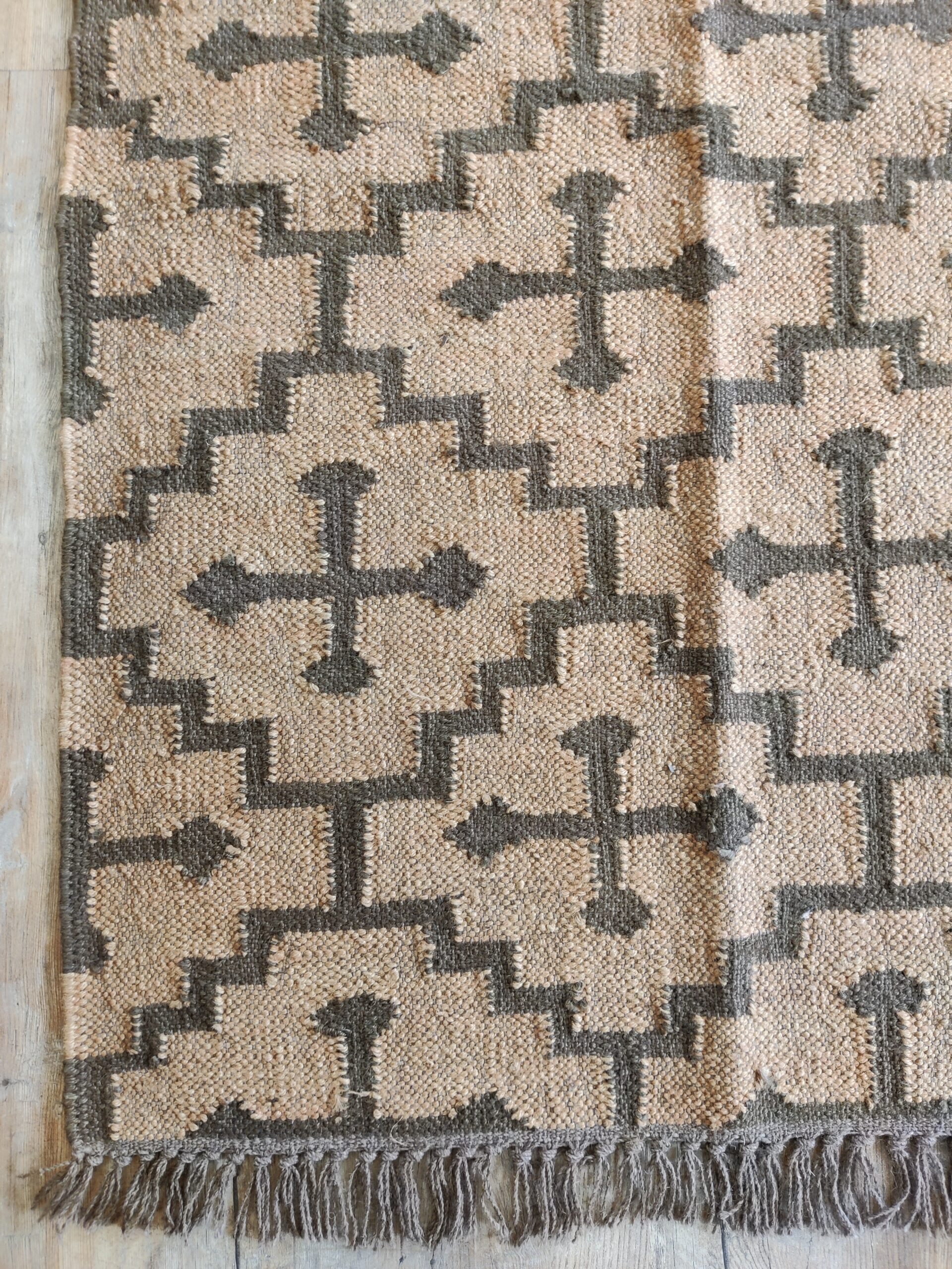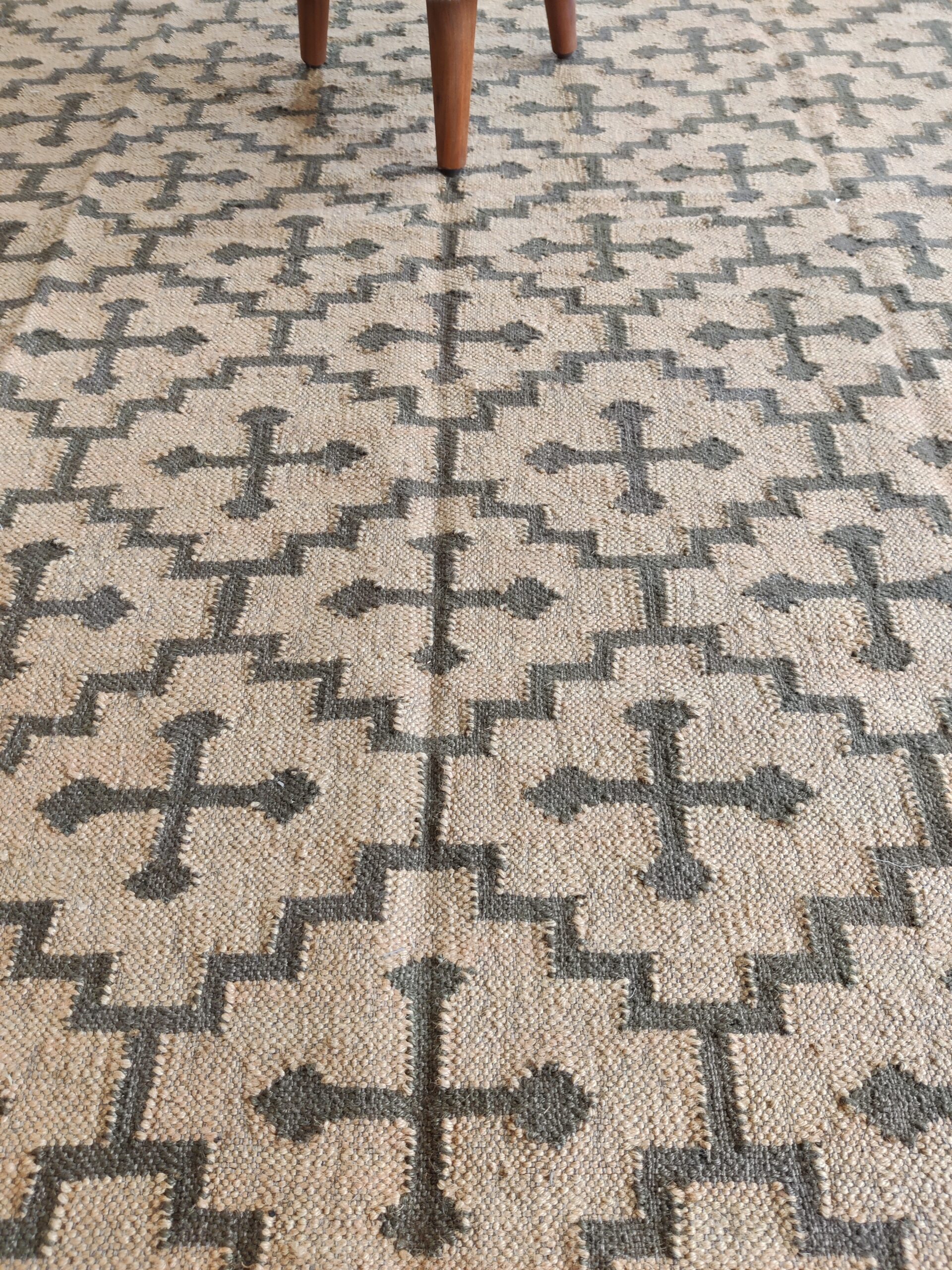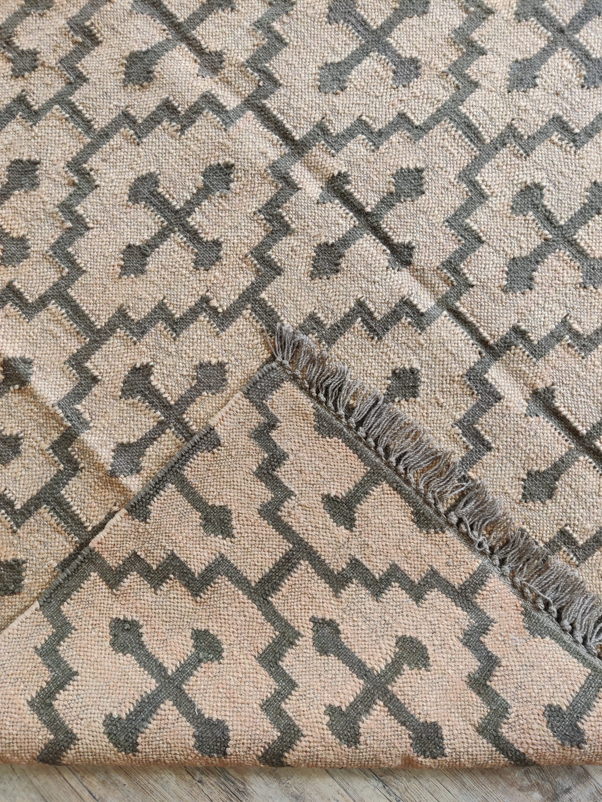 Crafted by experienced artisans, this natural handwoven jute rug is made with wool and jute. This rug is woven by hand on a traditional wooden loom. Made from hand-dyed, pure, sustainable jute and natural wool. This rug is reversible, with the same design on both sides. Wool: 30% Jute: 70%