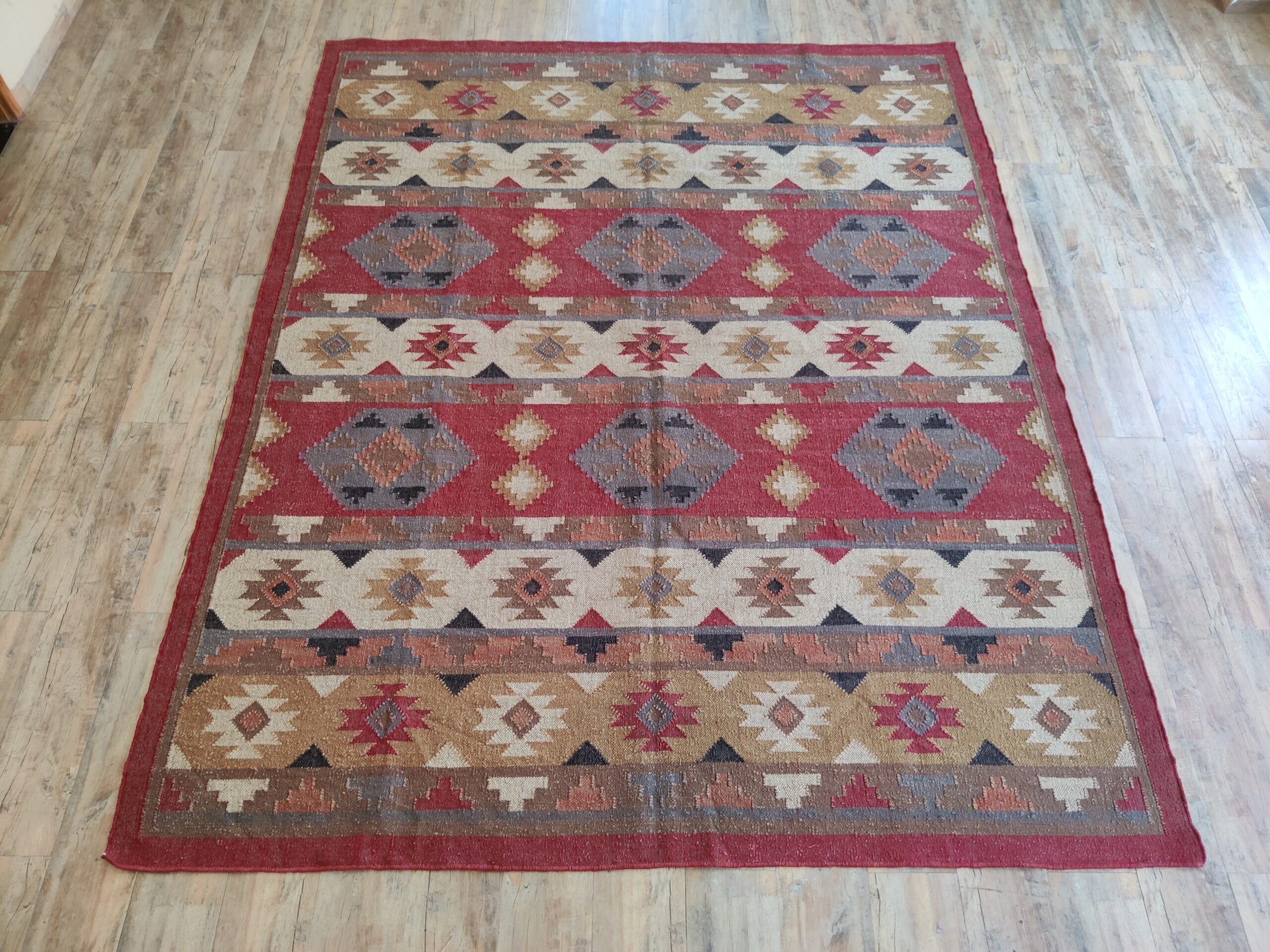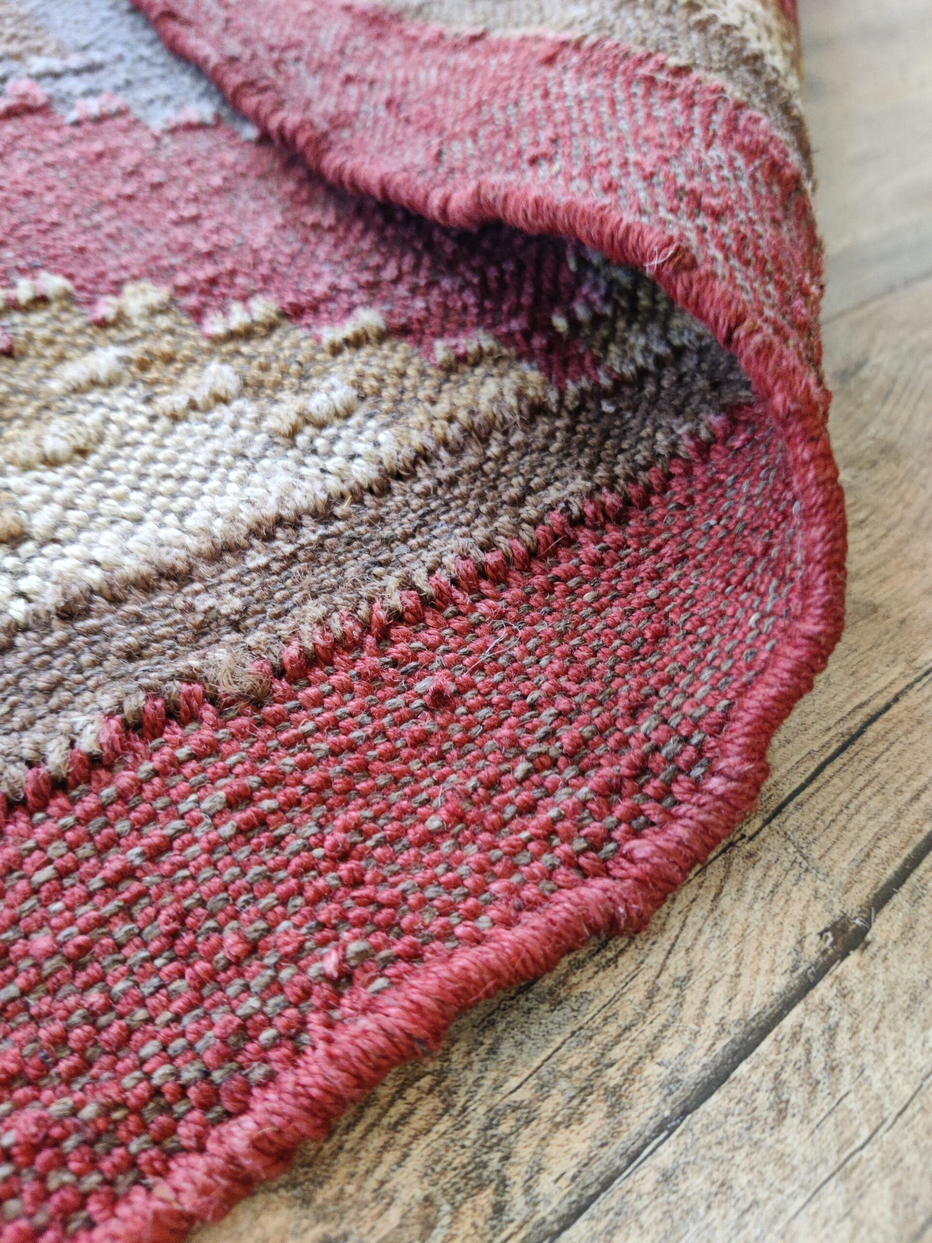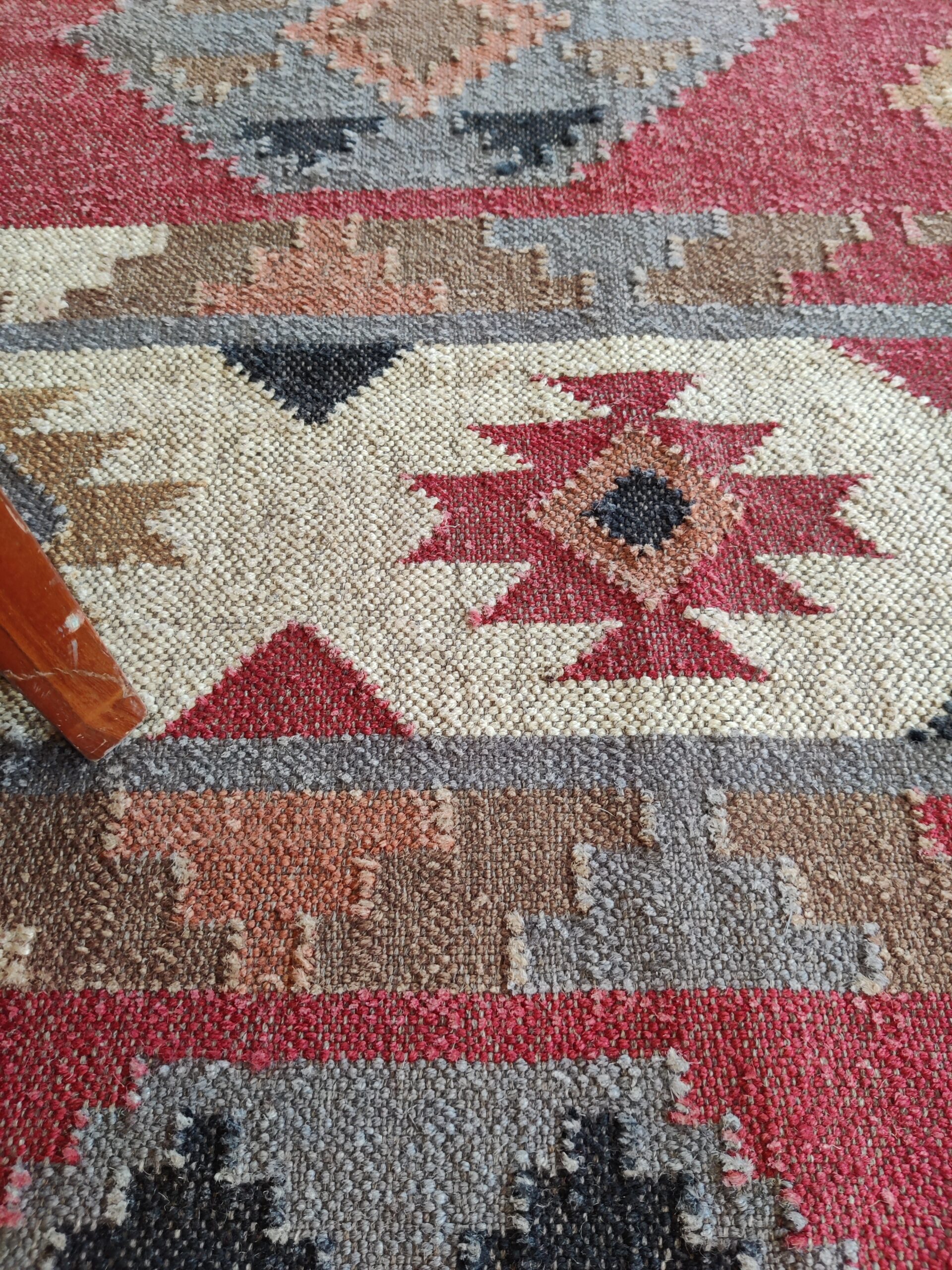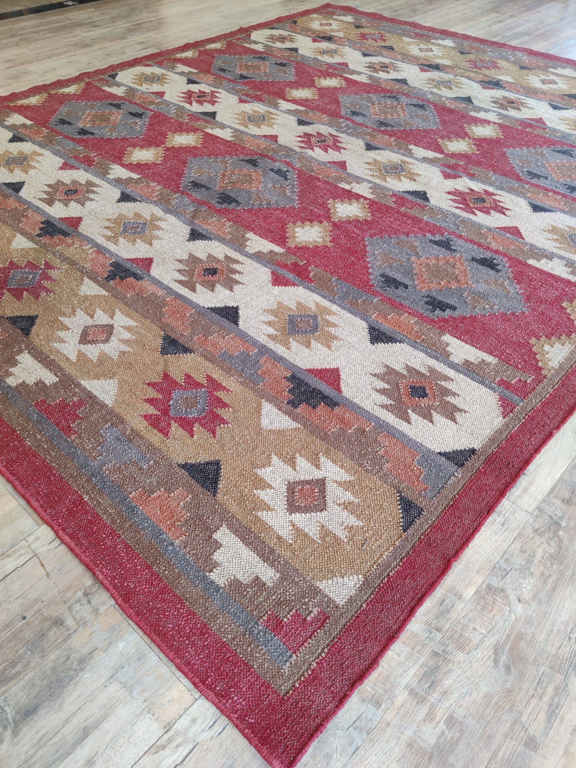 Wool Jute Geometric Pattern Rug, Red And Brown Bedroom, Living Room Rug, Custom Size Rug