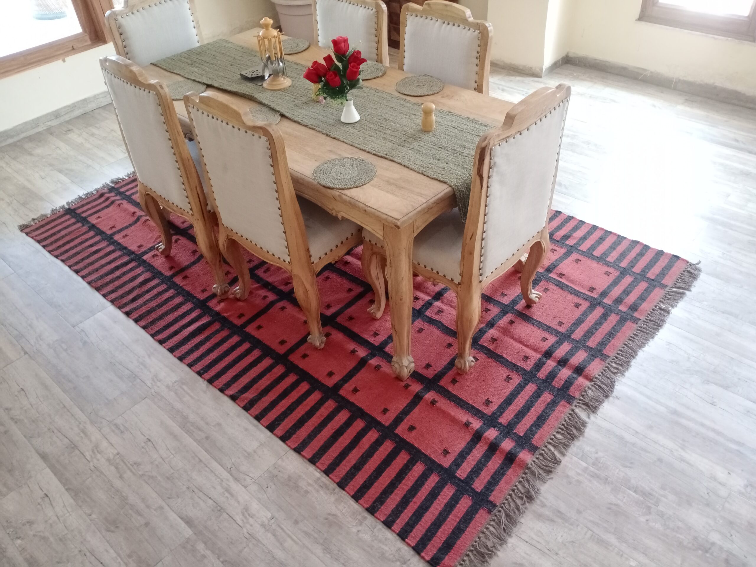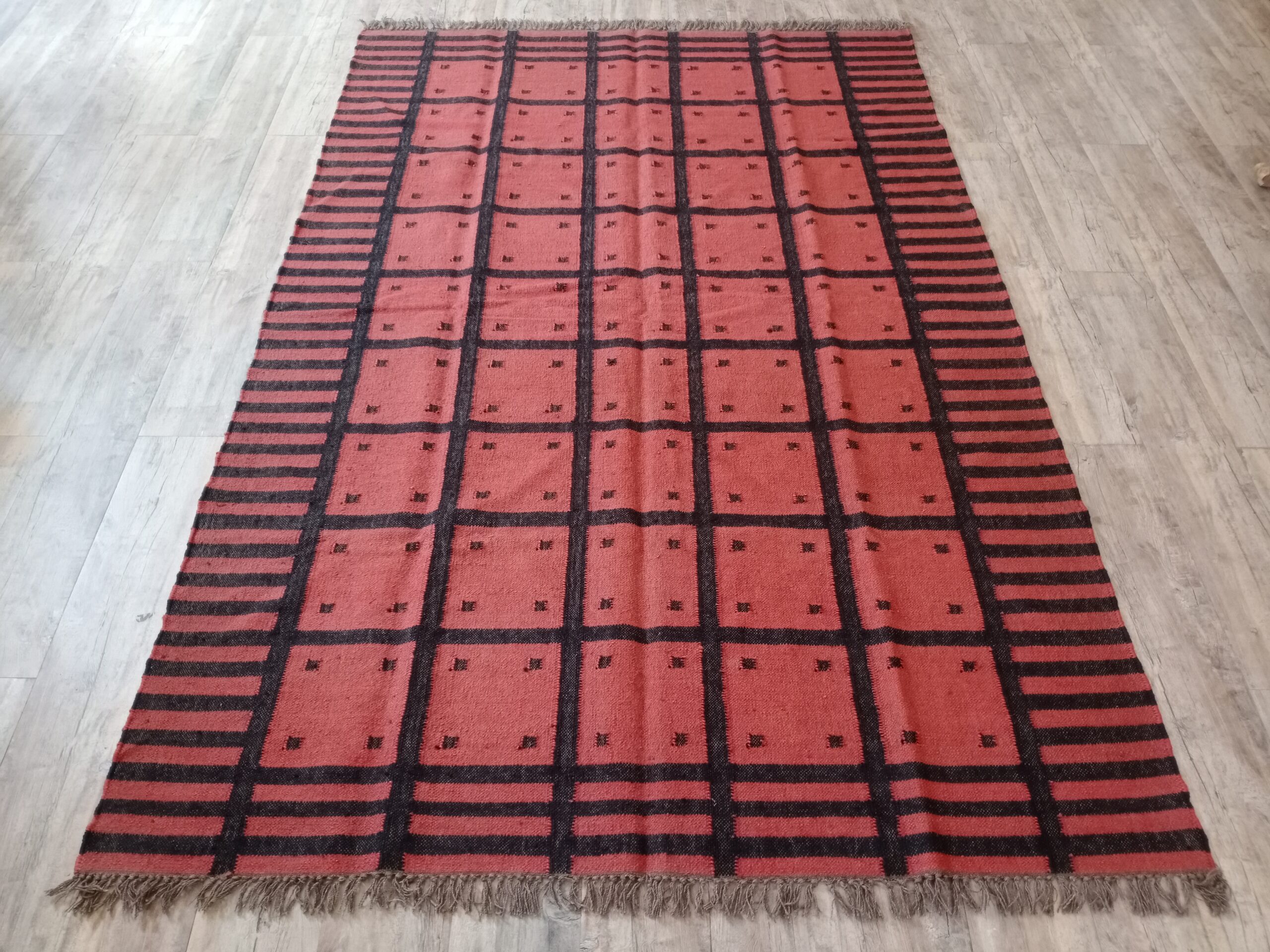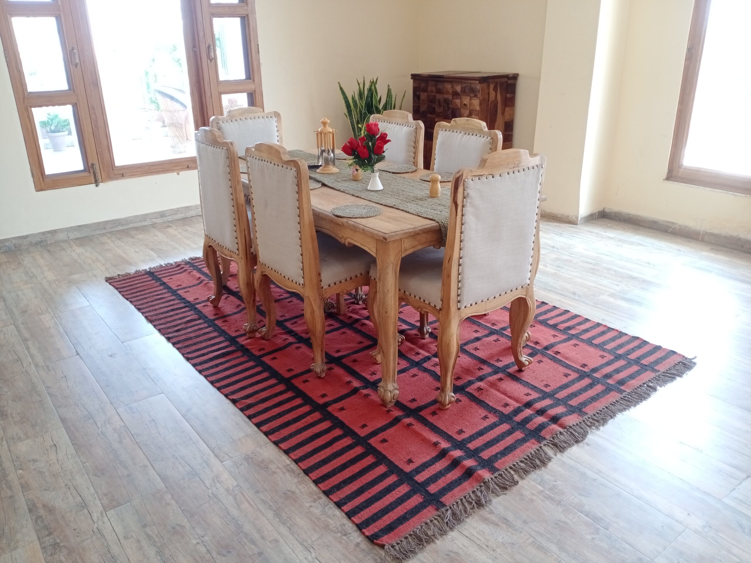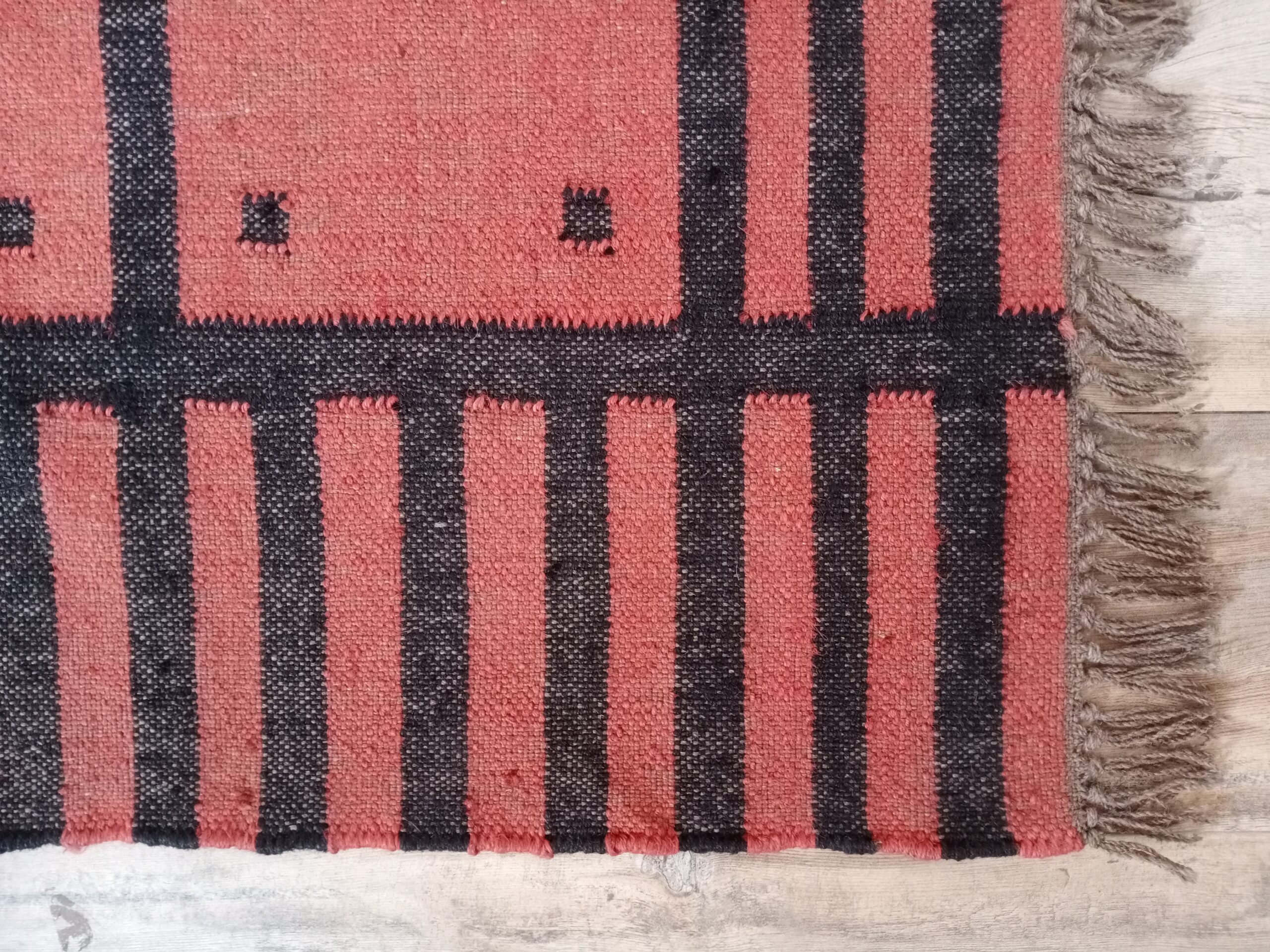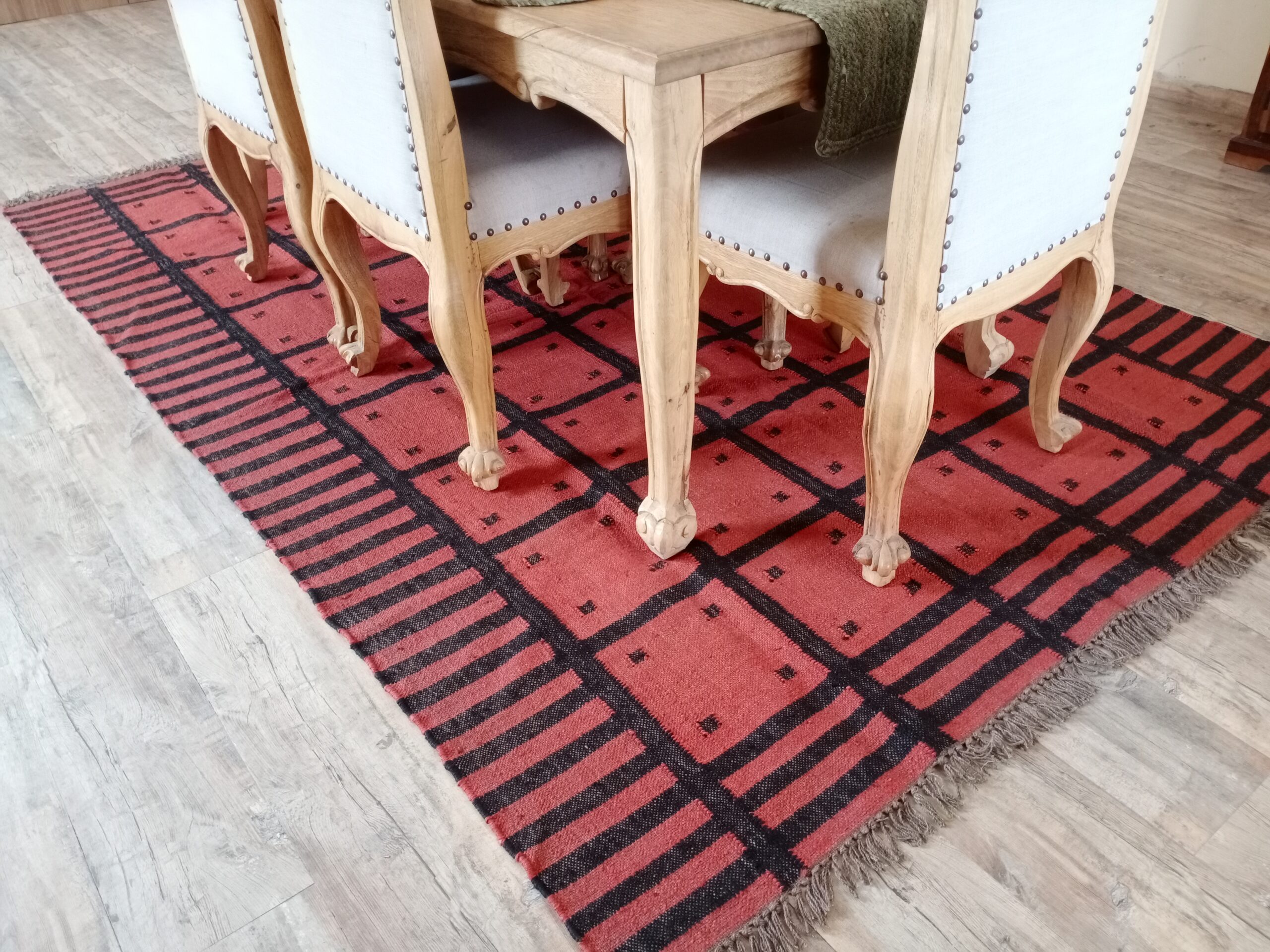 Crafted by experienced artisans, this natural handwoven jute rug is made with wool and jute. This rug is woven by hand on a traditional wooden loom. Made from hand-dyed, pure, sustainable jute and natural wool. This rug is reversible, with the same design on both sides. Wool: 30% Jute: 70%