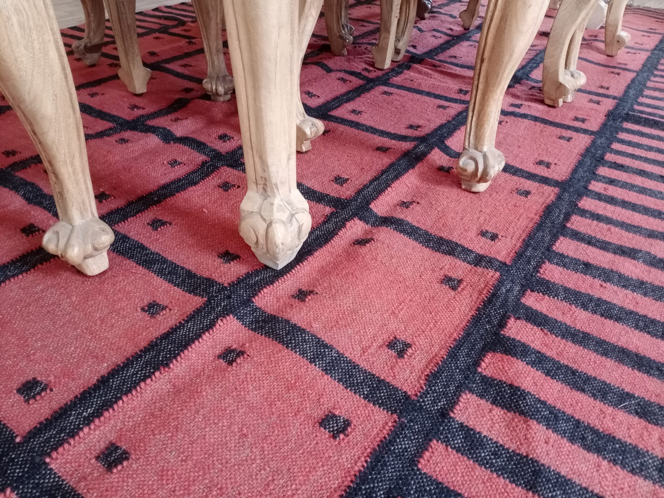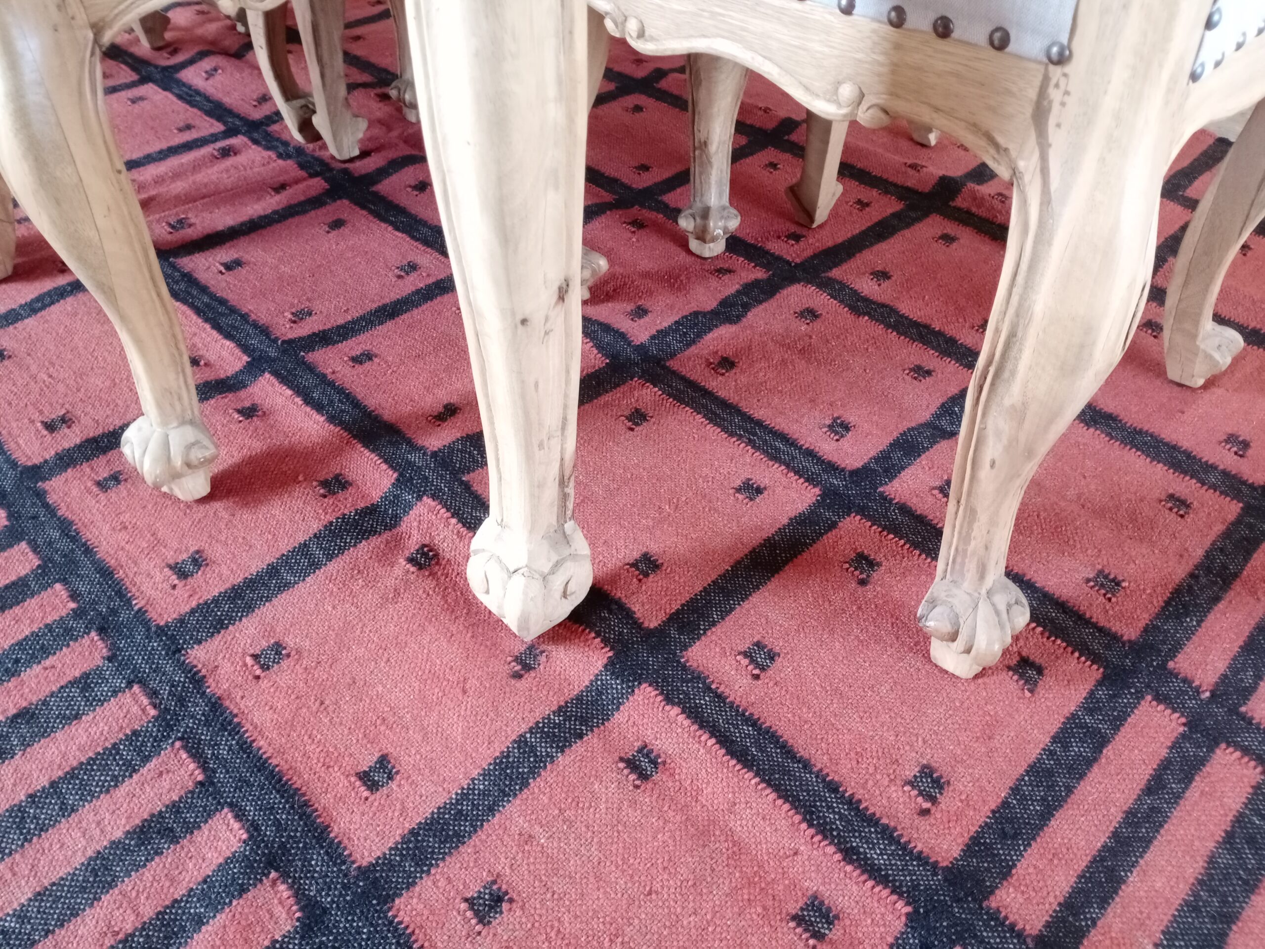 Regular vacuuming is the best way to care for your jute rug. Visible, loose dirt should be vacuumed with a strong suction vacuum. Protect the rug from strong sunlight