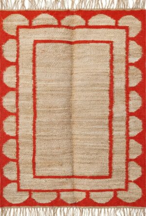 Red And Natural Jute Scollap Rug