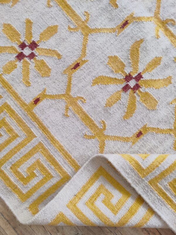 Yellow And White Checker Wool Moroccan Handmade Rug