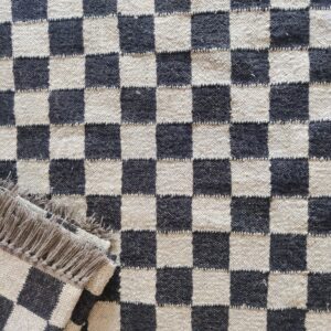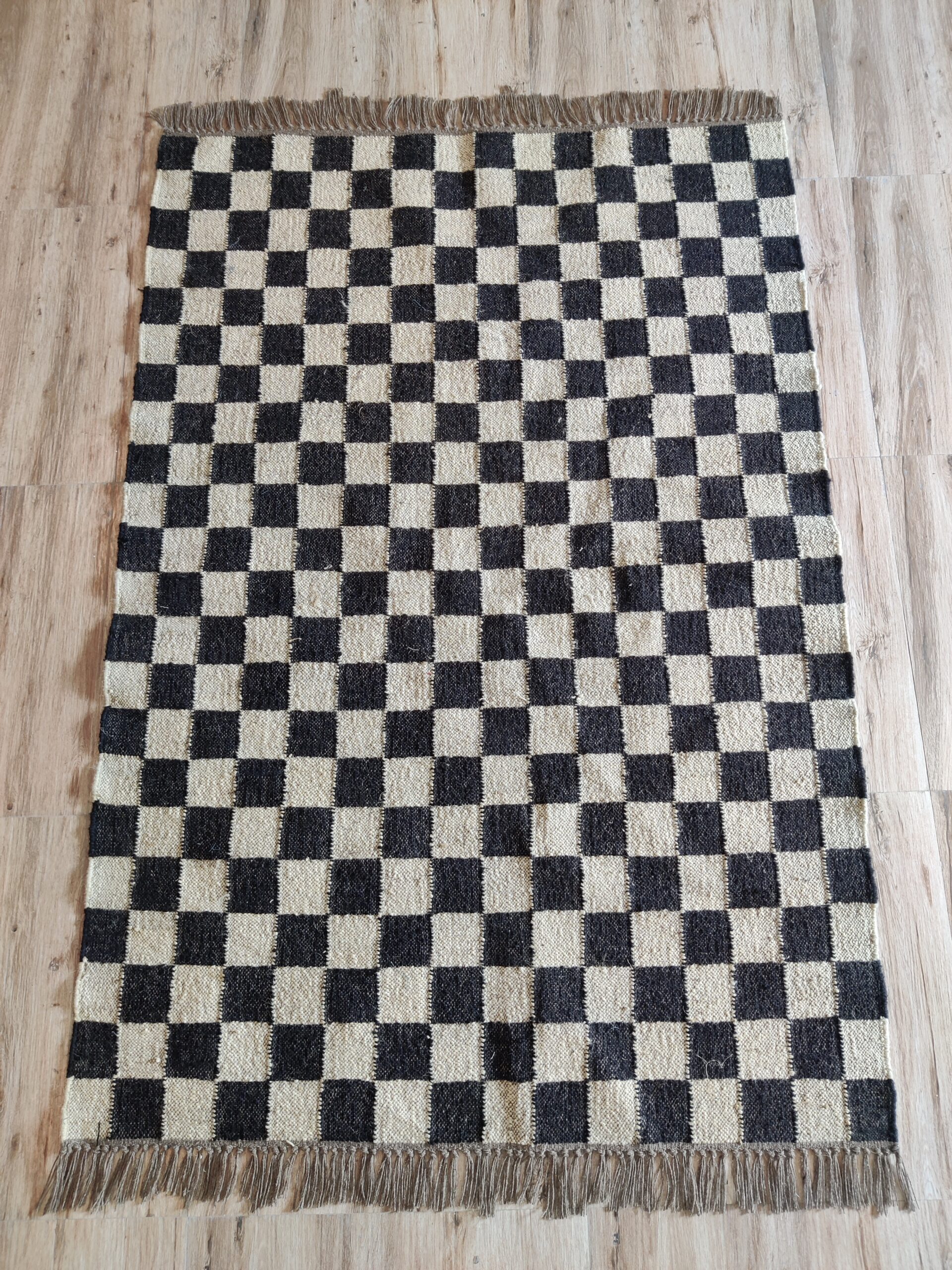 Handmade Beige And Black Checkered Rug, Home And Living Room Rug, Wool Kilim Check Rug, Bedroom Rug